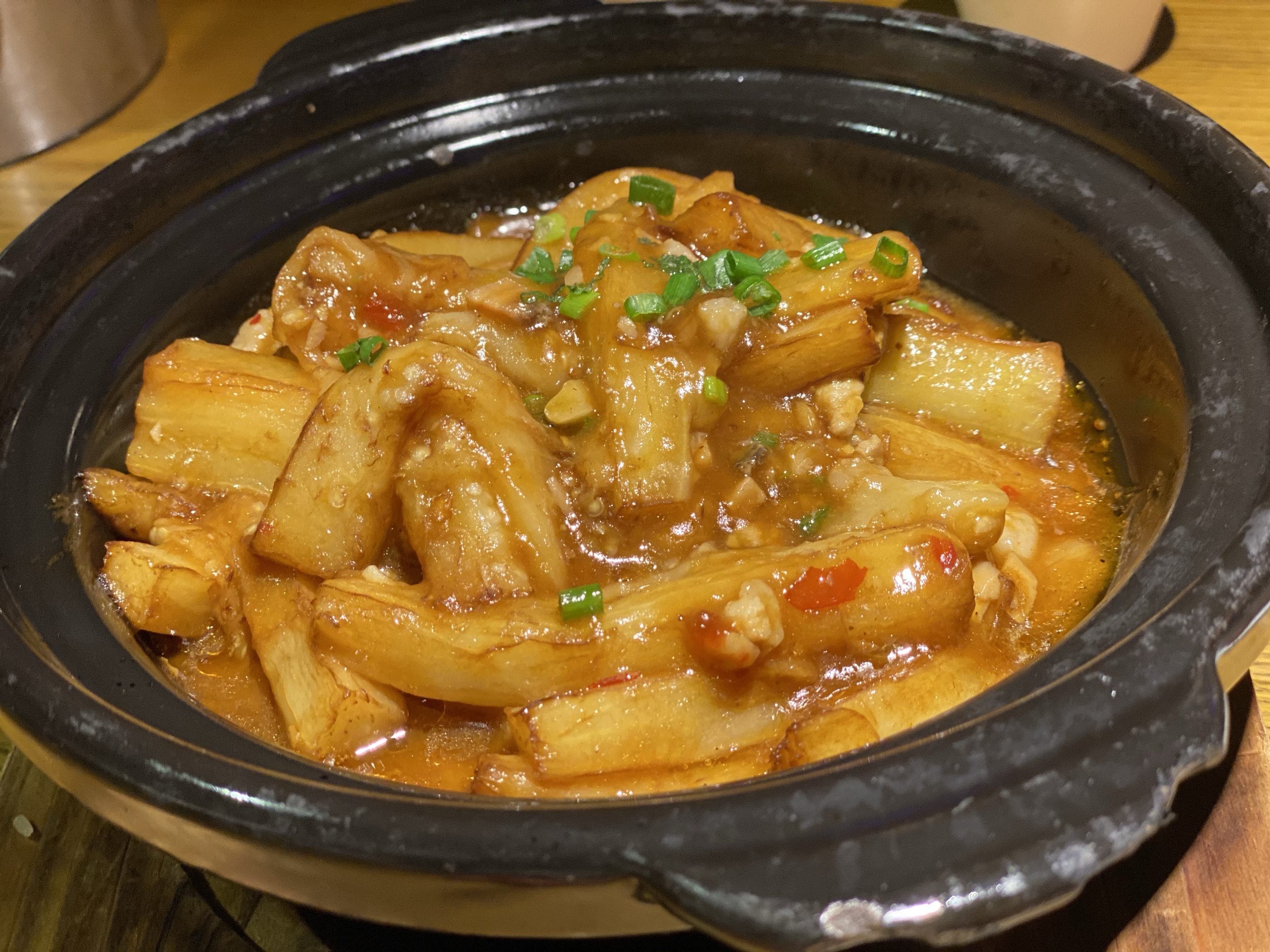 团购了一毛钱的乳鸽券来到这里,本来是想要到北京路店的,那边等位实在是厉害,想想还是过来这一家分店了。地铁五号线到动物园南门站,A出口出来向前走一点,基本上就可以见到了,某肠粉连锁店的楼上。这里的装修比较古色古香,环境还是蛮不错的,最好的我感觉是服务,从咨客开始,我们来到的时候还是需要等位,然后咨客就一直向我们端茶水过来,还有免费的零食提供。等位超过一定时间也是有送菜品的,一共有三档,大家可以留意一下。 {红烧乳鸽},原只上,这里的任何乳鸽都是原只上,然后马上就有服务员去到你的身边,问需要帮你剪开鸽子吗,可以一开二,一开四和一开六,也可以原只自己手撕。鸽子一剪开就马上流汁,香味扑鼻而来,香喷喷的乳鸽特别吸引人。我们一共吃了三只鸽子,两只红烧,一只盐焗。 {盐焗乳鸽},盐焗的鸽子同样推荐,个头和红烧的一样大,味道不一样,盐焗的味道很入味,鸽肉入味,就连骨头都很香。 {咸鱼茄子煲},非常好吃,这里的做法基本上和其他餐厅的一样,只是这里的颜色看起来没有那么深,我觉得这样好些,因为颜色太深也就是调味料太重,太咸了。茄子很嫩,没有吝啬咸鱼,我一个人就吃到不少,热乎乎的时候特别送饭。 喜欢这里送的小吃,三款小吃拼盘,分别有黄瓜、芥末海蜇和桂花莲藕,每一份乳鸽那里也配了两块桂花绿豆糕。