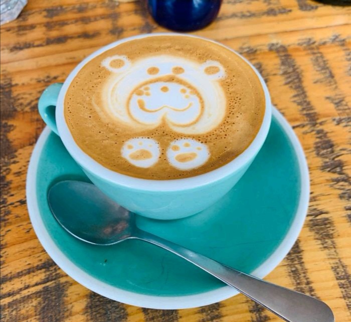 网友2020-06-20这家咖啡店最有名的就是咖啡的拉花了,里面的动物图案拉花都很漂亮哦,我要可以一个蜗牛的拉花,还有...这家咖啡店最有名的就是咖啡的拉花了,里面的动物图案拉花都很漂亮哦,我要可以一个蜗牛的拉花,还有可爱的小熊咖啡,简餐很简单,就是色拉和面包。
