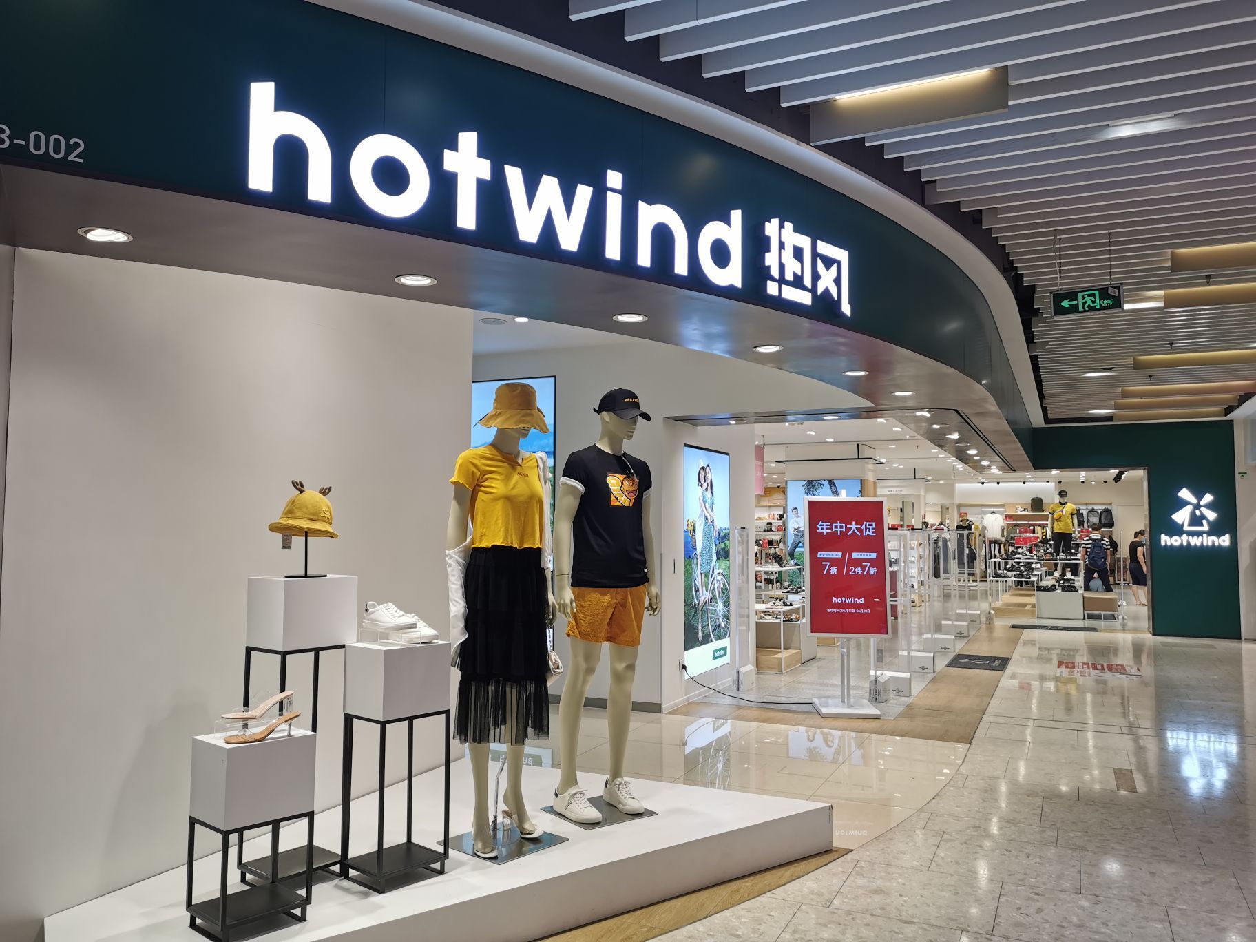 店铺挺大的,最近在做年中大促销,很多衣服都有折上折,基本都是7折;现在也是7折这家hotwind热风就在丽影广场的B区1楼;店铺挺大的,最近在做年中大促销,很多衣服都有折上折,基本都是7折; 款式还是很不错的,他家鞋子款式也很好~现在也是7折