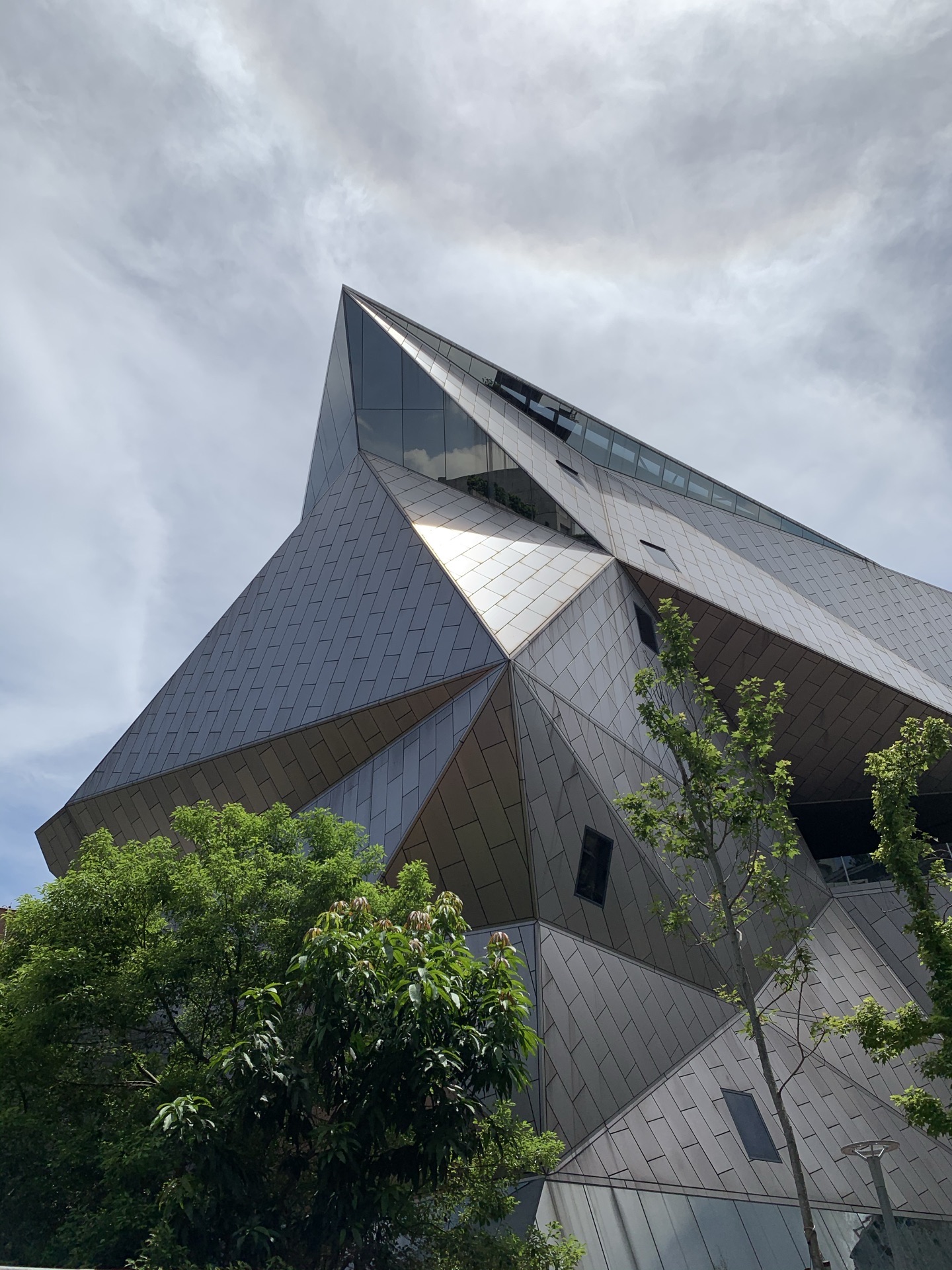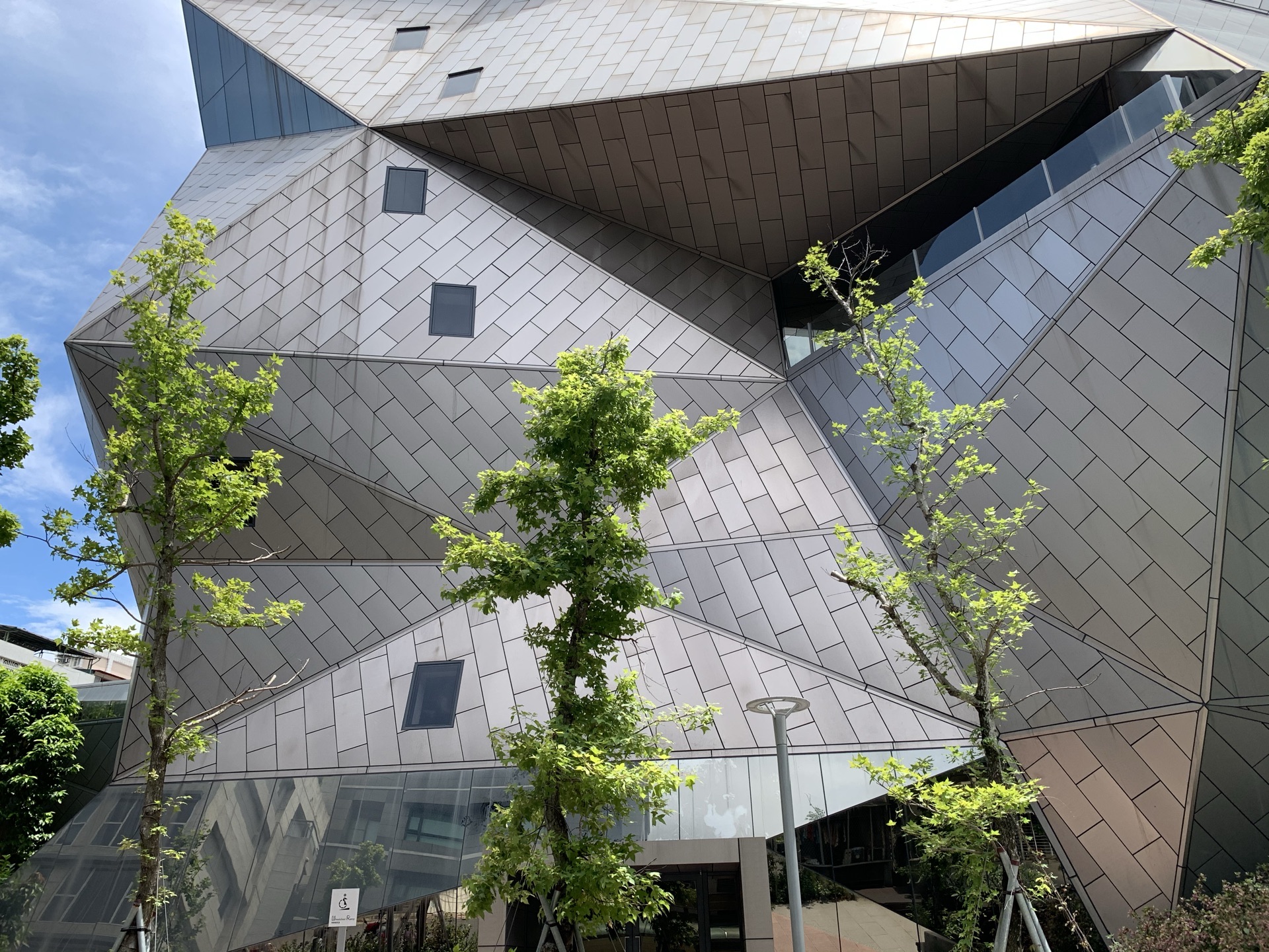 隱藏在歷史悠久的矮房老宅裡,矗立著一座看似張牙舞爪的不規則怪異建築,跟一旁形成強烈的視覺對比,這座建築物,就是耗時6年才完成的師大美術館,更是全球大學裡,第一座以一百多個不規則三角形塊面構成建築外觀的美術館。 漫步在青田街巷弄中,不抬頭可能就會錯過它,但只要看見了,那種「驚鴻一瞥」的莫名感就會油然而生,打破以往的建築框架,彷彿像是正要變身的變形金剛,讓人感受到建築的特殊藝術。
