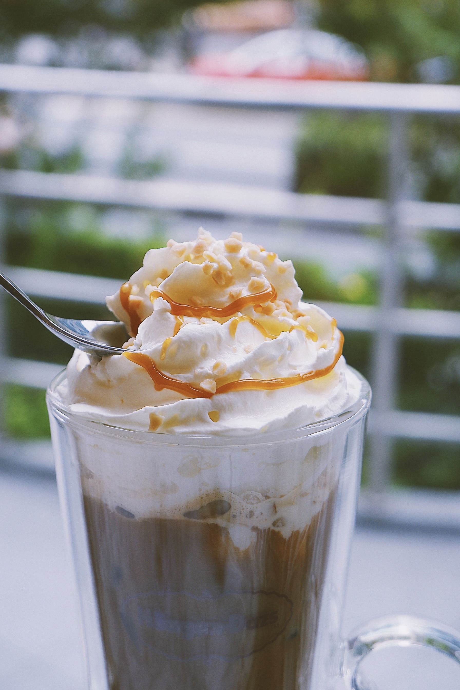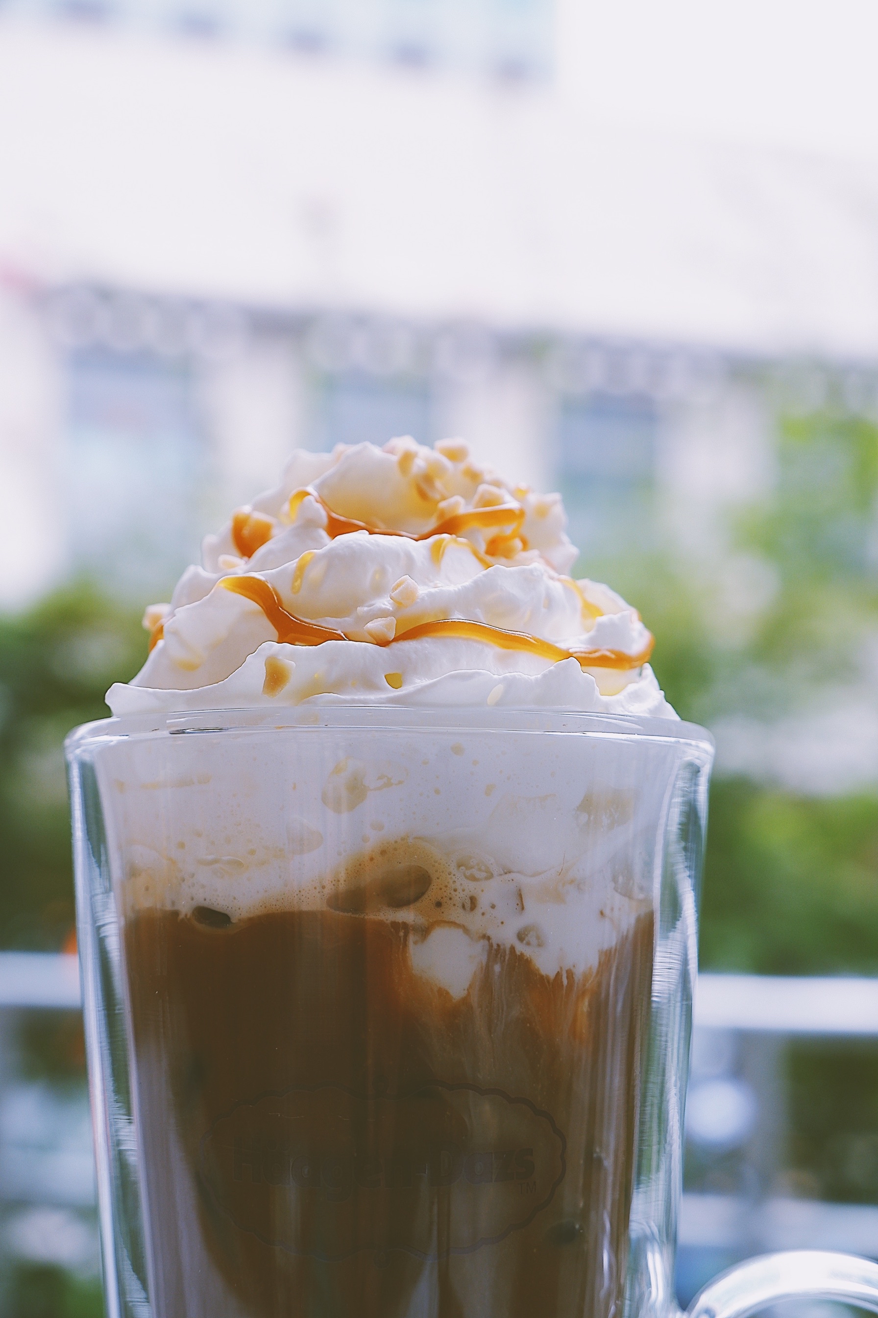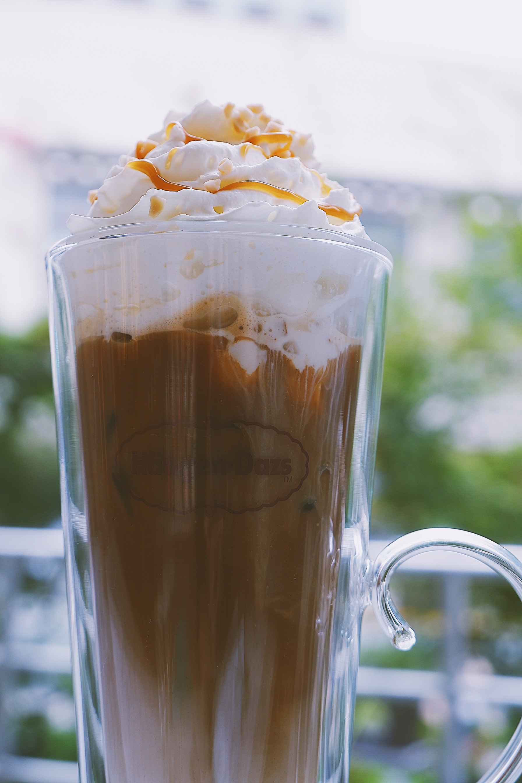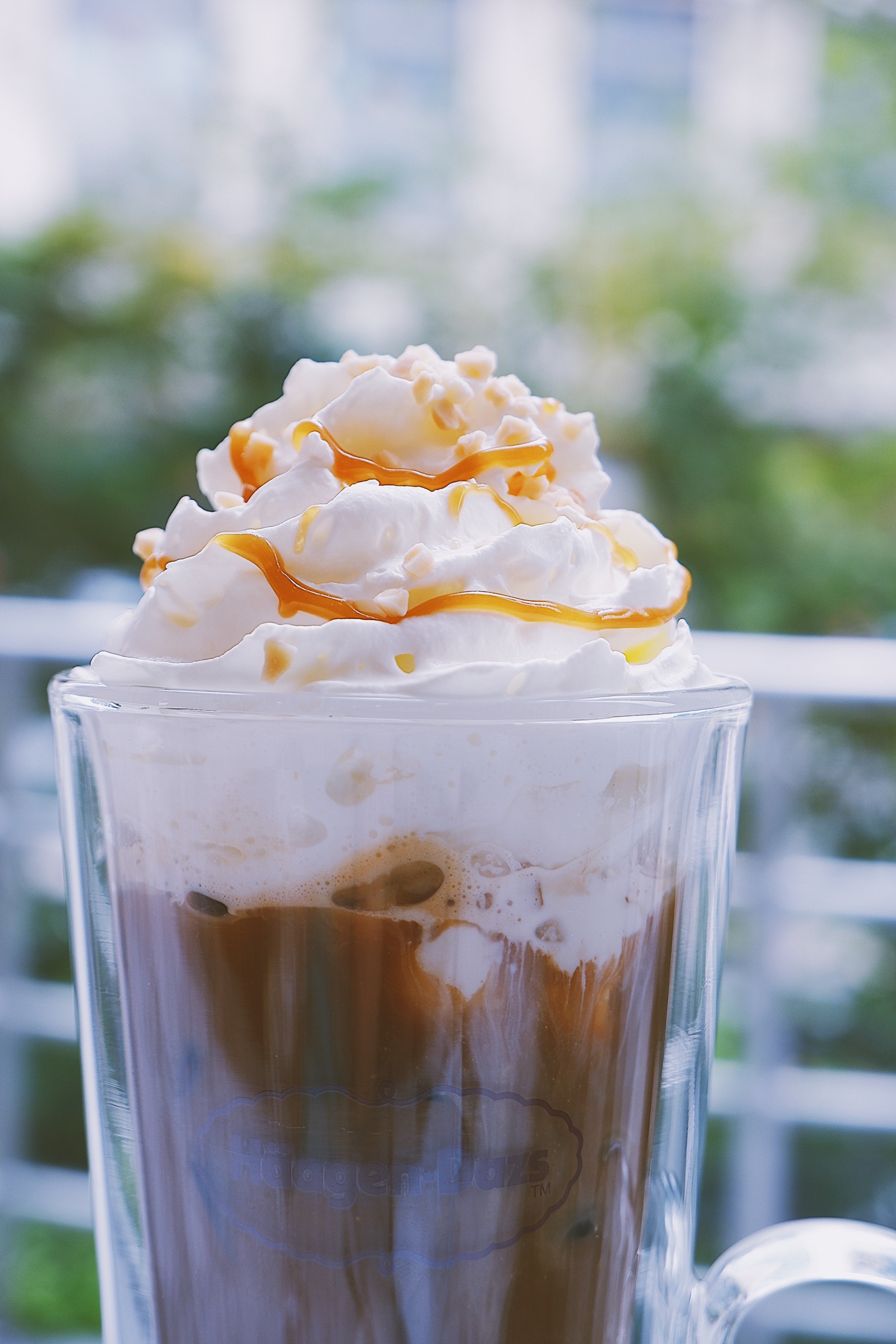 夏天的命真的都是饮料给的 这种天气又热又容易犯困 一杯冰咖啡简直就是我的救命神器 之前来哈根达斯基本吃的都是冰淇淋 今天换个口味 喝喝他们家的冰咖啡吧 「冰夏果仁拿铁咖啡」 颜值很喜欢了 高高瘦瘦的造型看着很满足 底下是榛果味的咖啡 顶层是淡奶油 这个组合是我最喜欢的 味道喝起来也不是很甜 奶味和咖啡味融合在一起的口感超nice 还能吃到实实在在的榛果颗粒 一杯下去 瞬间凉爽