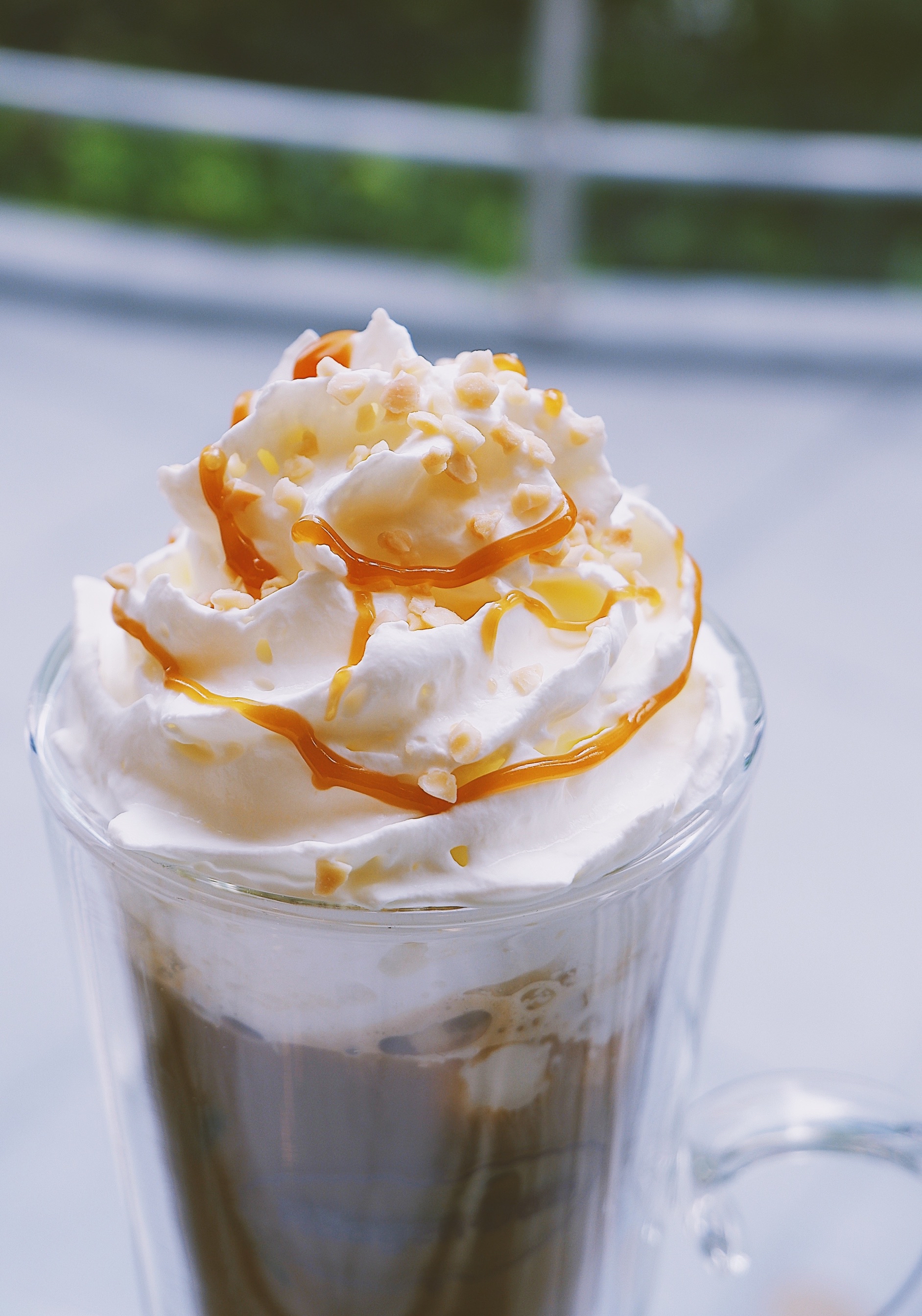 高高瘦瘦的造型看着很满足 底下是榛果味的咖啡 顶层是淡奶油 这个组合是我最喜欢的 味道喝起来也...