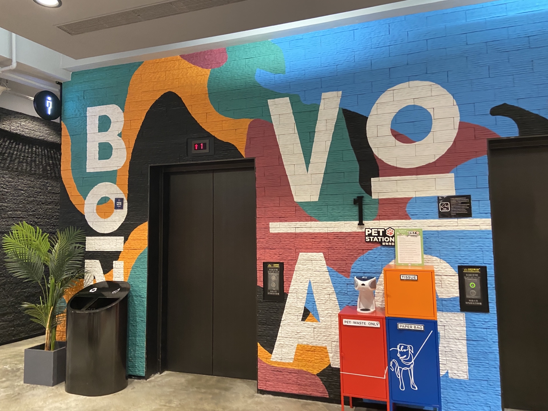 D2的意思是“Designers' Dreams”,设计师的梦想地。分为两期来发展,所以有D2 Place One和D2 Place Two,隔了几十米的距离。这是吸引年轻人来逛的商场,里面有很多配饰店,就是个体的文创作品,服装店也挺多的。电梯和手扶梯的旁边,都是很有创意的涂鸦画。
