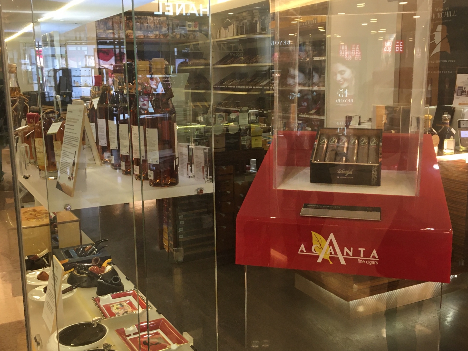 Acanta的招牌产品是Davidoff雪茄,所以门上有从前的英国首相、雪茄爱好者Winston Churchill的名字和剪影。Davidoff位于置地广场的旗舰店2019年全新升级,而Acanta卖烟也卖酒。