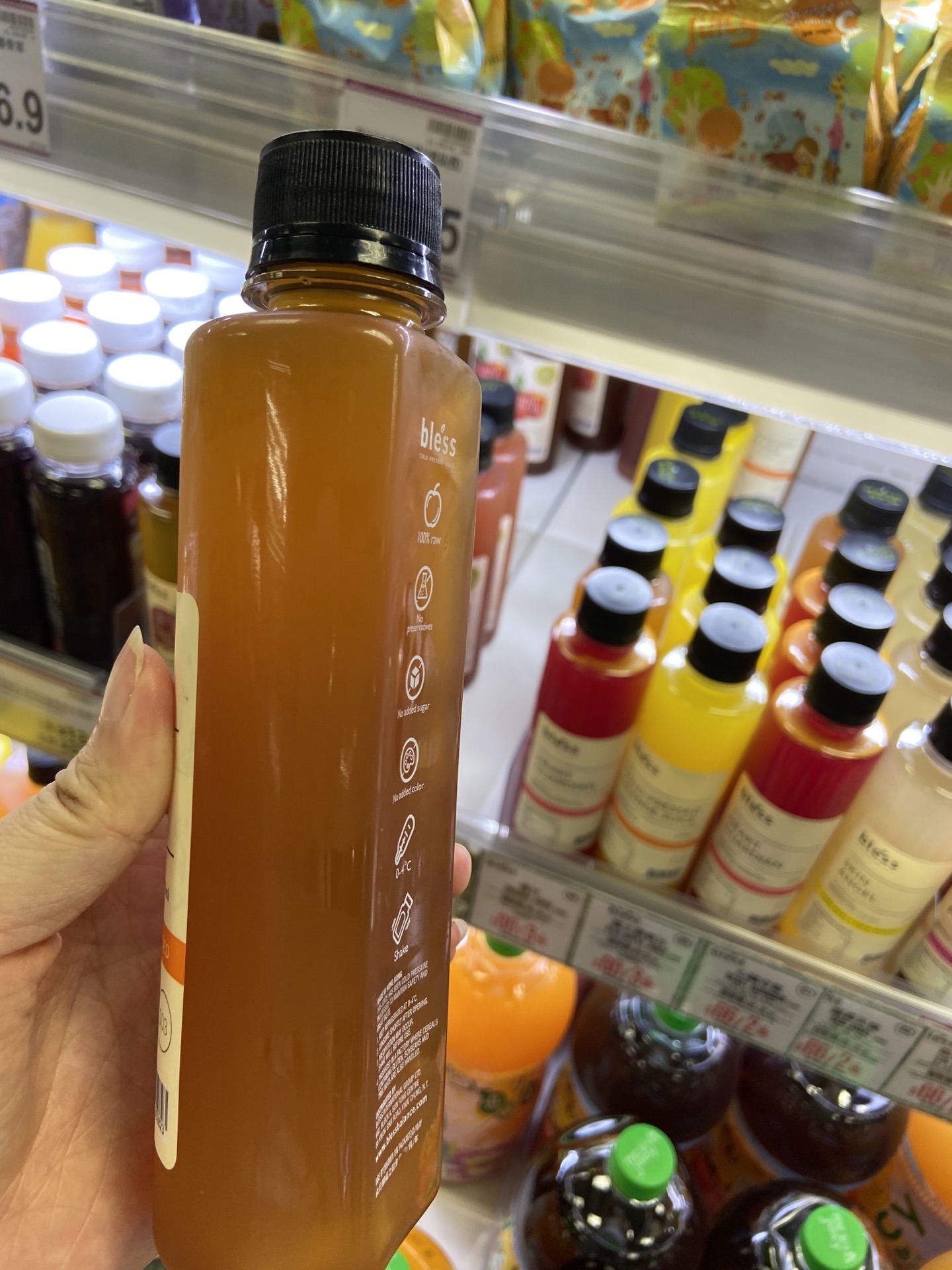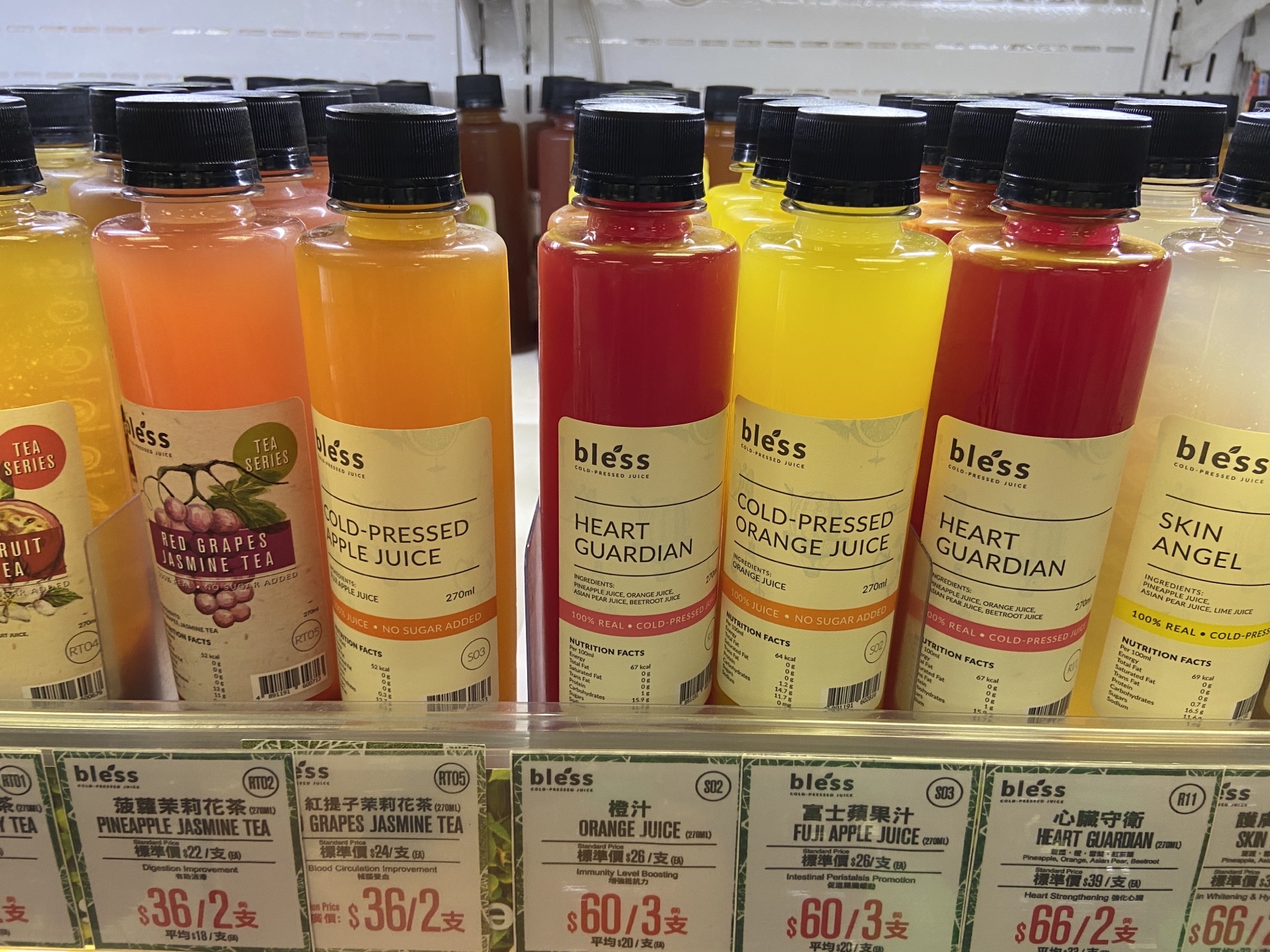 Bless的饮料,在橱柜里摆成一排的时候五彩缤纷的,看上去真的很好看