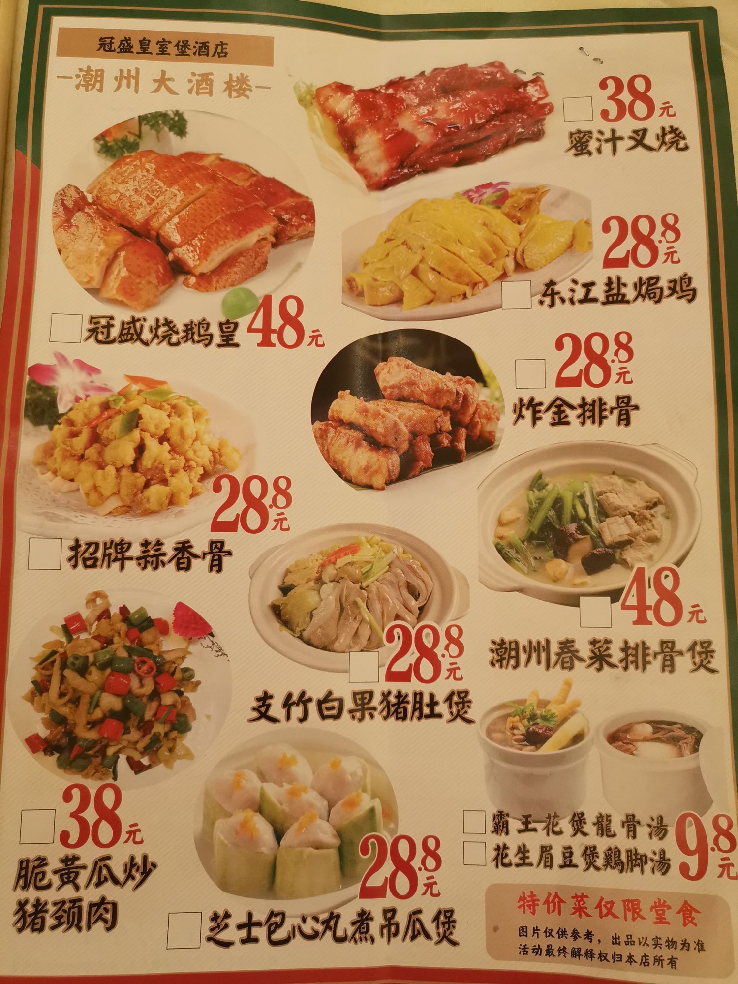 听说“冠盛潮州酒楼”的特价优惠延续下去,就和家人又去吃了一顿,那里是全天茶市开放的,晚餐也可以吃茶点