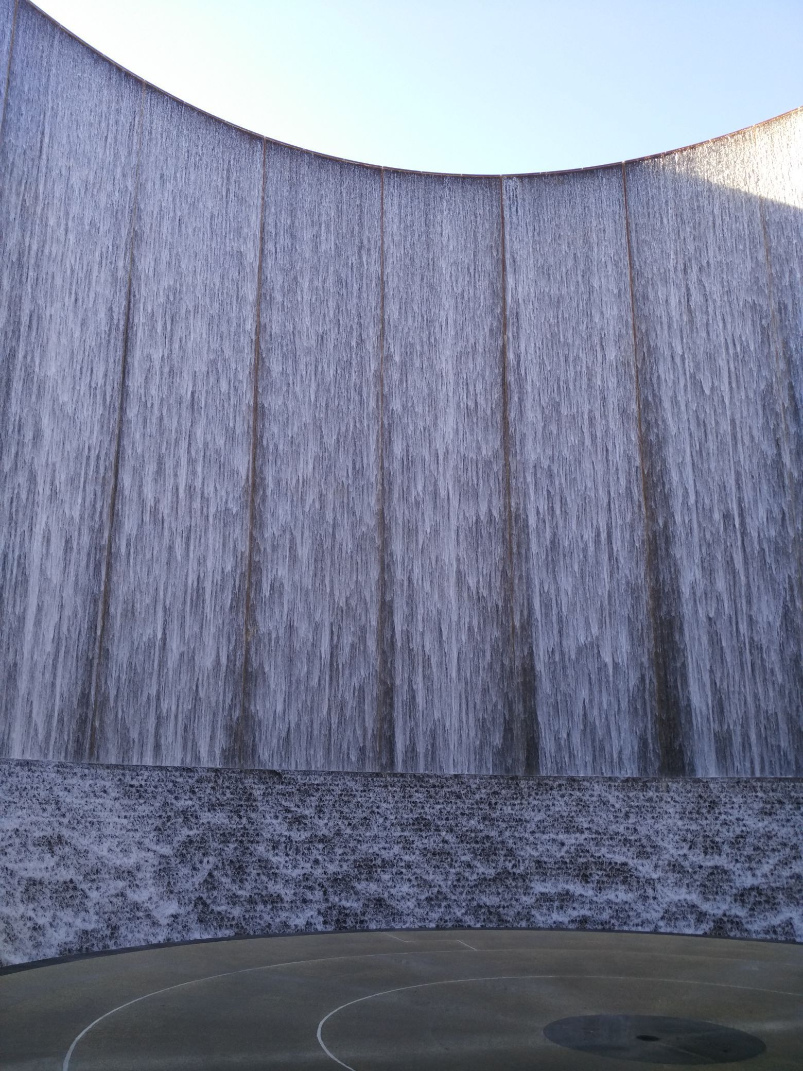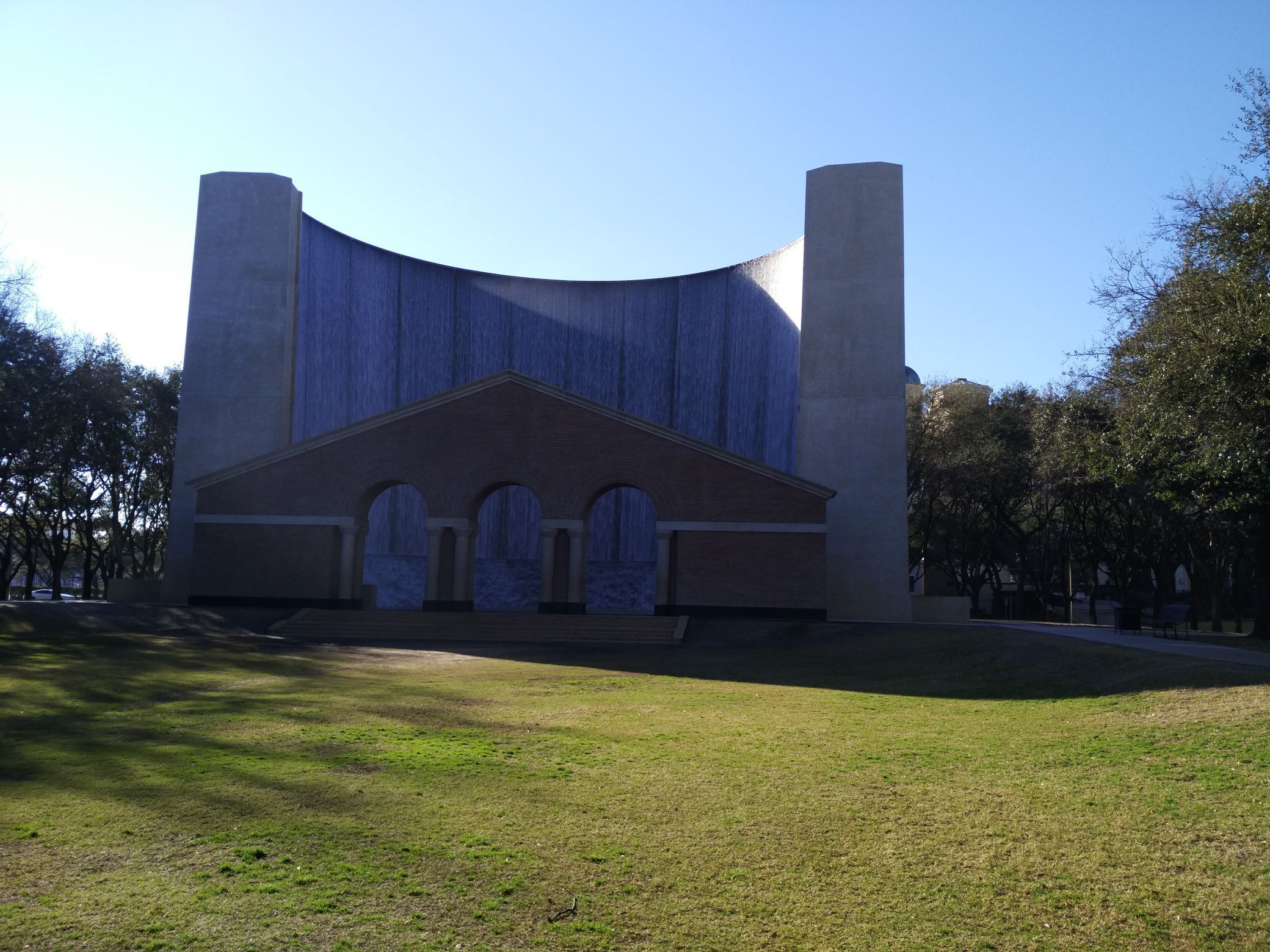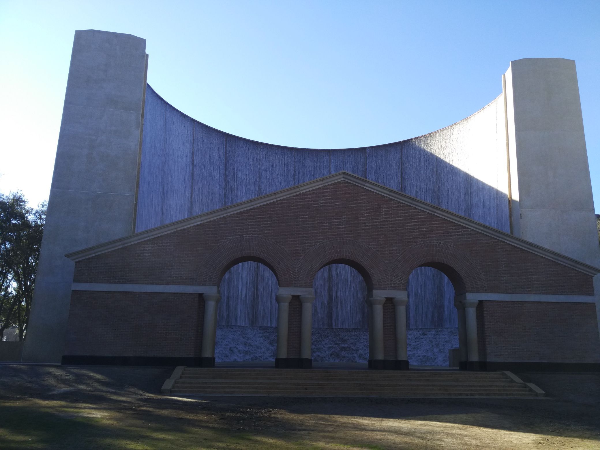 休斯敦水墙公园 休斯敦著名景点,只是一个很小的公园,周围都是商务大厦和住宅。水墙顾名思义就是高墙上有水流下来,看上去象一堵水墙,这个水墙很有特色、很壮观,水墙旁边站着挺凉快的。水墙前面是大片的草坪,也是休闲的好去处。