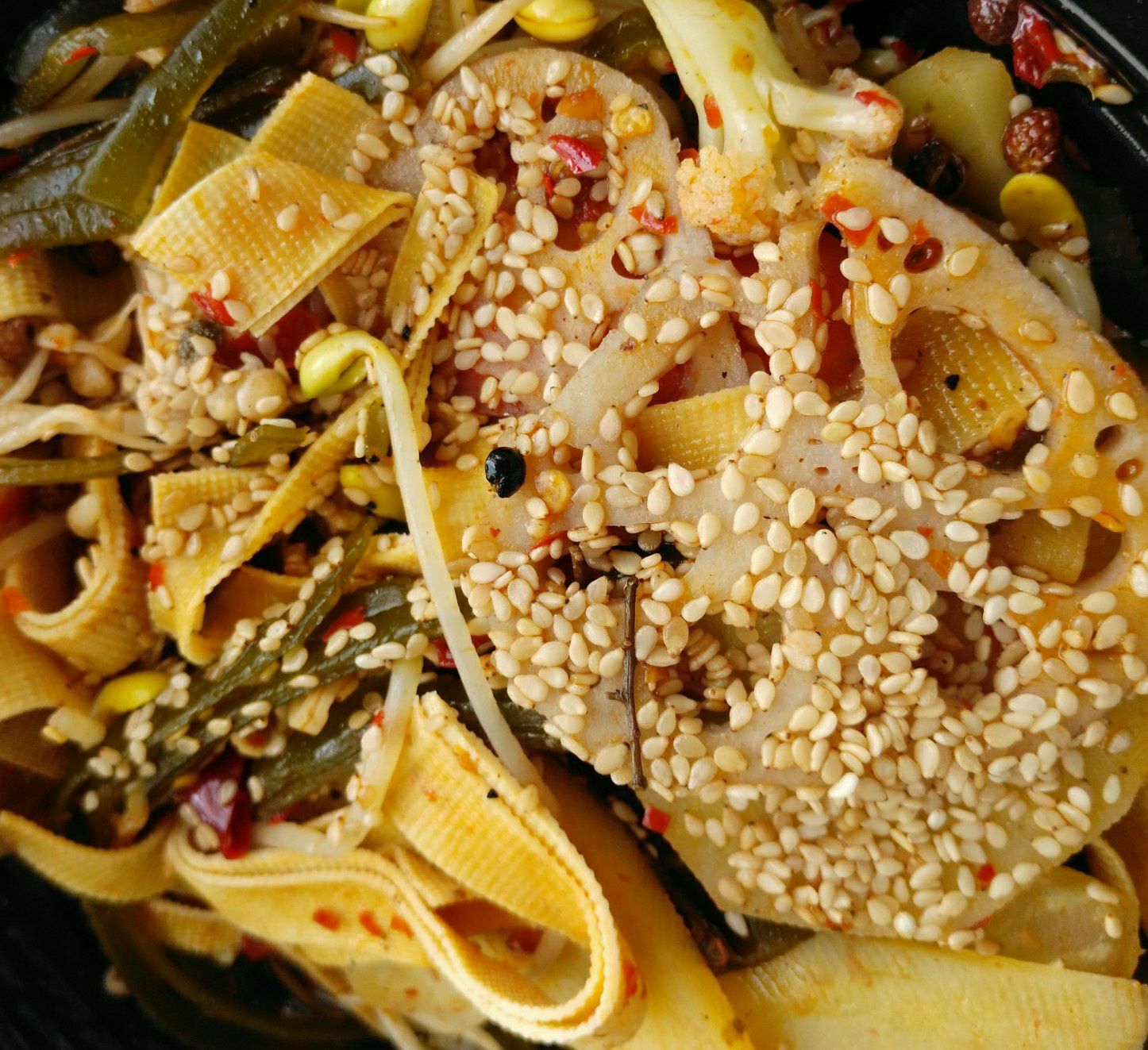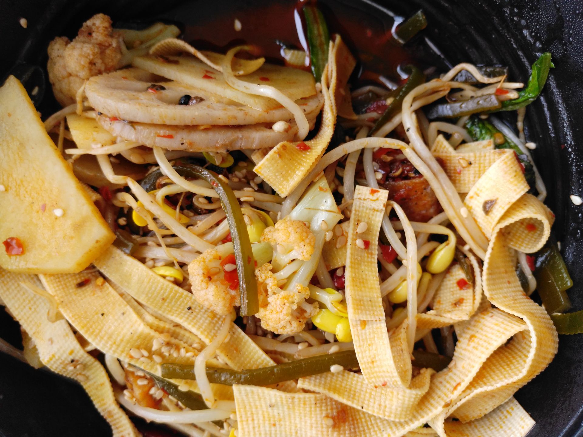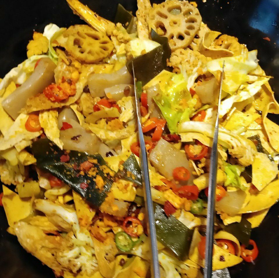 炝锅里面加上魔芋,加上腐竹,还有菜花,豆皮儿,土豆片等等也都很好吃。【口味】炝锅的量还是比较大的【口味】炝锅的量还是比较大的。其实炝锅不一定吃肉菜。炝锅里面加上魔芋,加上腐竹,还有菜花,豆皮儿,土豆片等等也都很好吃。而且还可以配麻酱凉皮吃。
