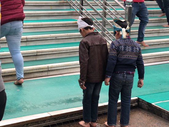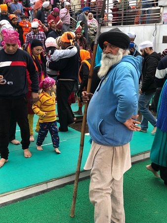 进入锡克寺前,需脱鞋并寄存到寺里的鞋柜,有许多志工协助保管寄放,且提供号码牌,作为领取鞋子的凭证。主厅外有免费借用的头巾,进入前必需要踩入门前的水池,并且佩戴头巾,表示对寺庙尊重。进出主殿前发现当地人用手触碰门槛,我们也依样画葫芦,锡克寺里人员吟唱着经文,给人一种神圣、安宁的感觉。离开主厅后,志工提供给免费的甜点,内心充满感谢及满足。