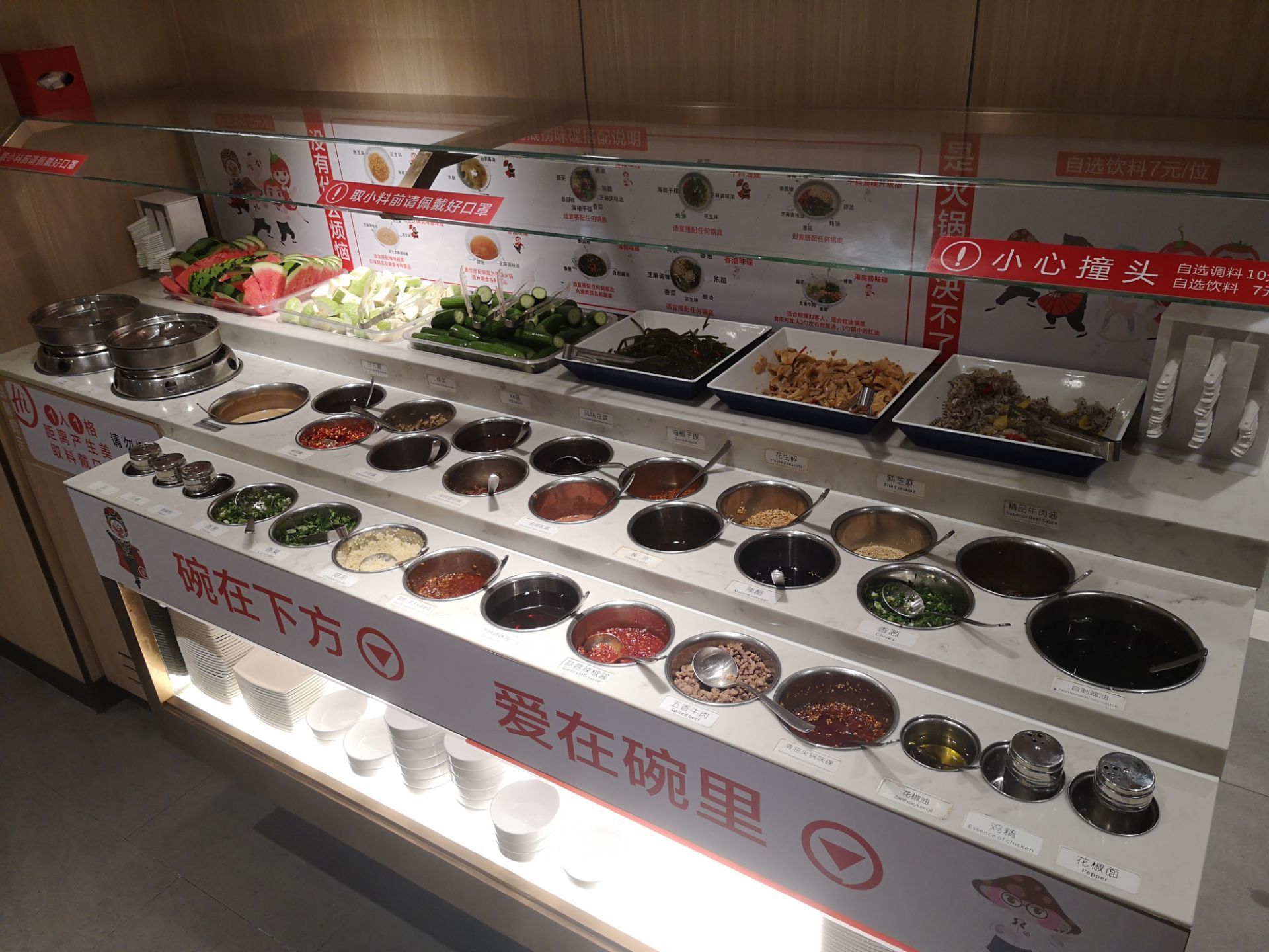 小吃区这边还真的是挺多东西,选择的有酱料,还有一些牛肉粒啊,都是可以拿的,最喜欢的当然是香菇,有点辣小吃区这边还真的是挺多东西,选择的有酱料,还有一些牛肉粒啊,都是可以拿的,最喜欢的当然是香菇,有点辣,但是味道挺好,火锅底选择了双色锅底。