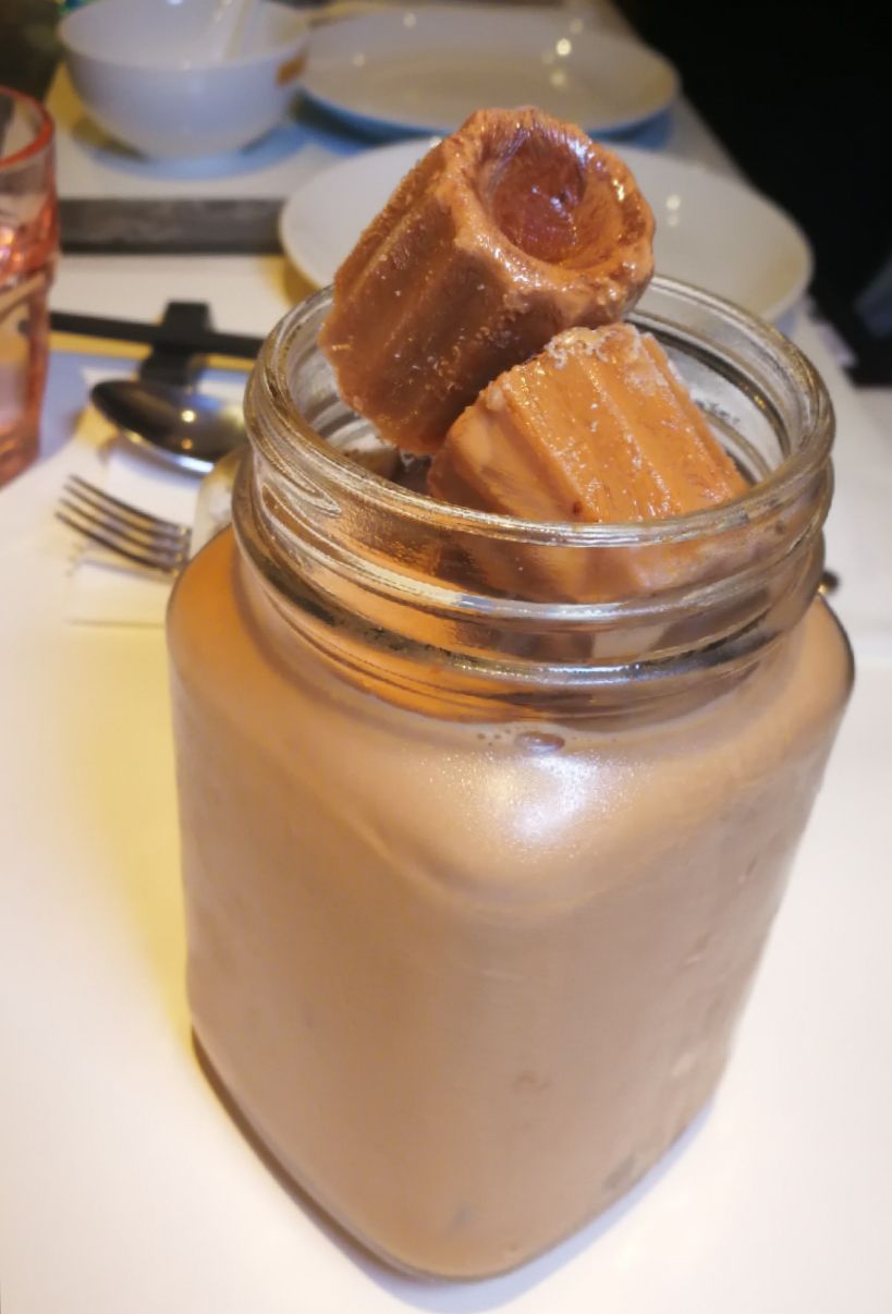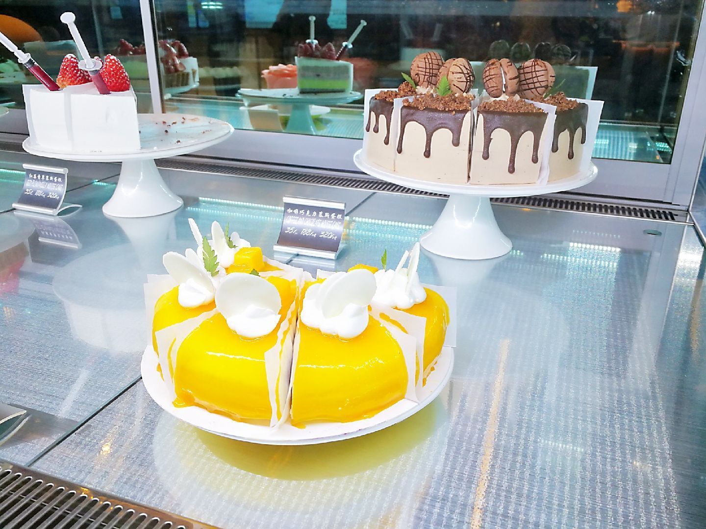 这家港丽餐厅也是经营了多年,位于天河城六楼,也算是老字号了。 餐厅不很大,港式茶餐厅的风格。除了有茶餐厅的出品外,还有不少有特色的菜品。 这里的蛋糕与西餐厅、蛋糕店相比,毫不逊色,品种多样,可以堂食或外卖。 咖啡奶茶,卖相好看,用个玻璃瓶作为杯子,奶茶冻成一块块的,非常有特色。 香辣小龙虾 放了白贝等,辣度降低了,菜品更加鲜美。 服务员态度很好,服务周到。
