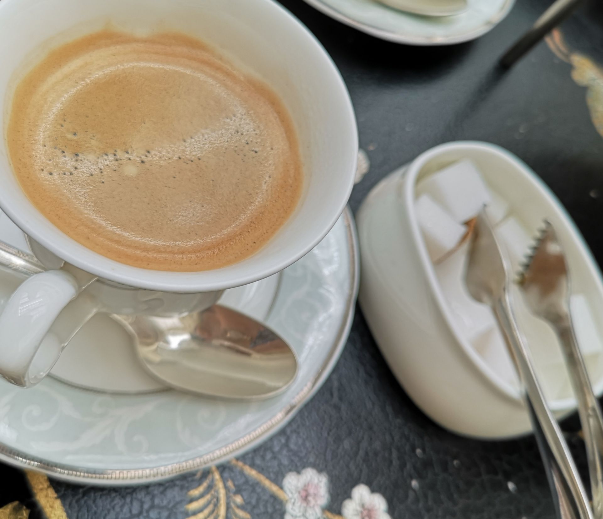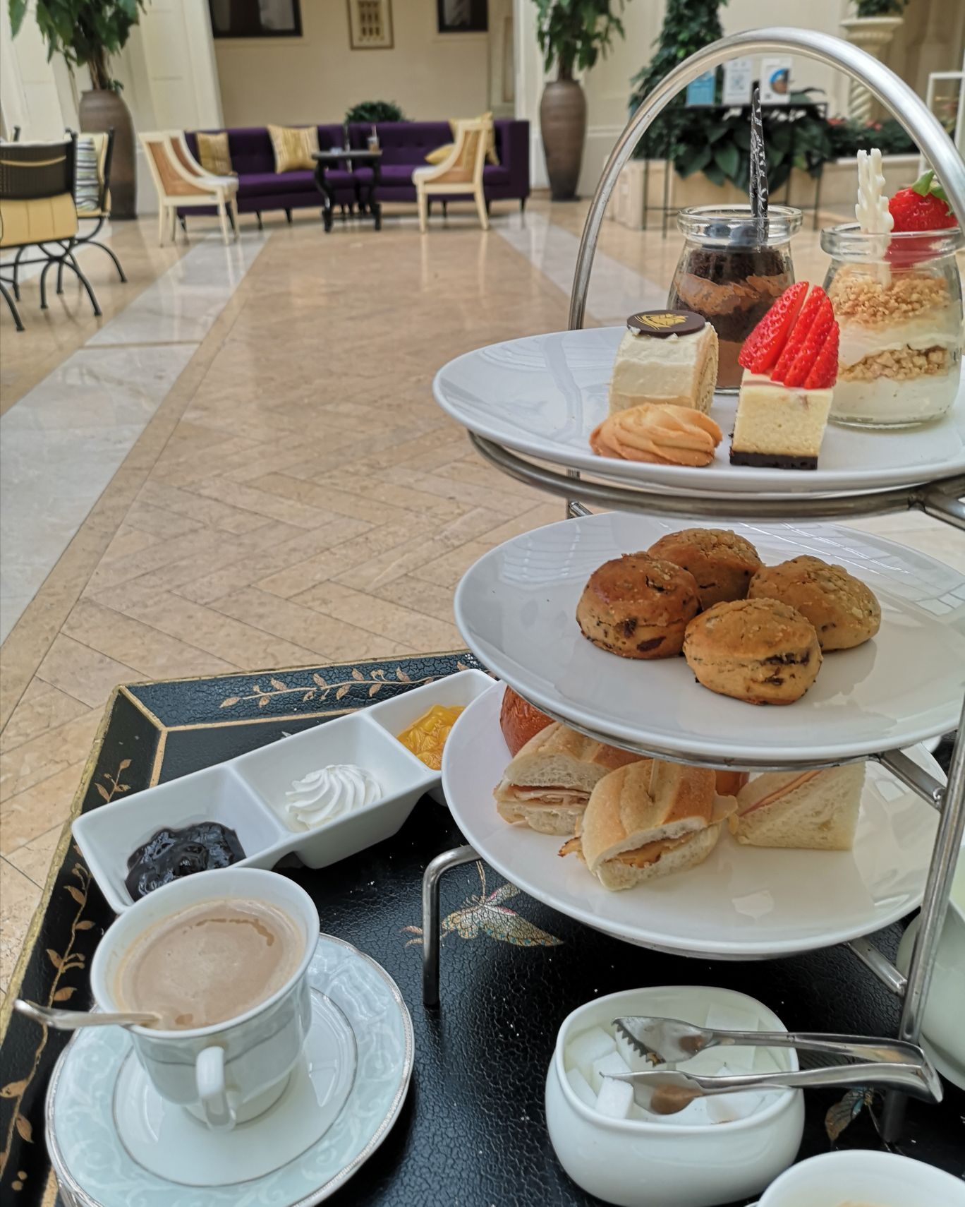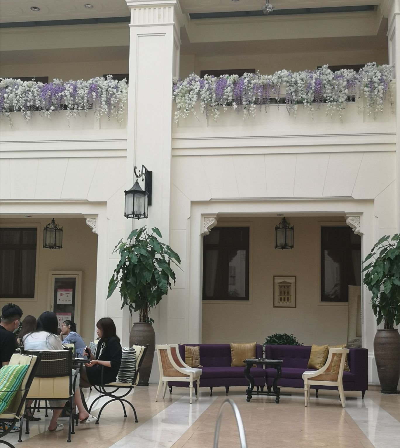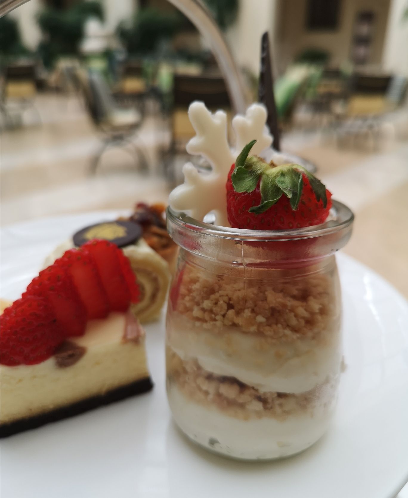 利顺德大饭店,维多利亚花园的下午茶。首先环境很赞。玻璃顶采光好,不像那些光线昏暗的咖啡馆,里面绿植丰富,有阳光的味道。座位间距很大,不必担心私密性。坐在这里能迅速放松下来。 另外味道也不错。双人套餐量足,饮品可以选咖啡、果汁或茶。甜点做的挺好。 因疫情期间对人员密度的要求,需要提前预约的。