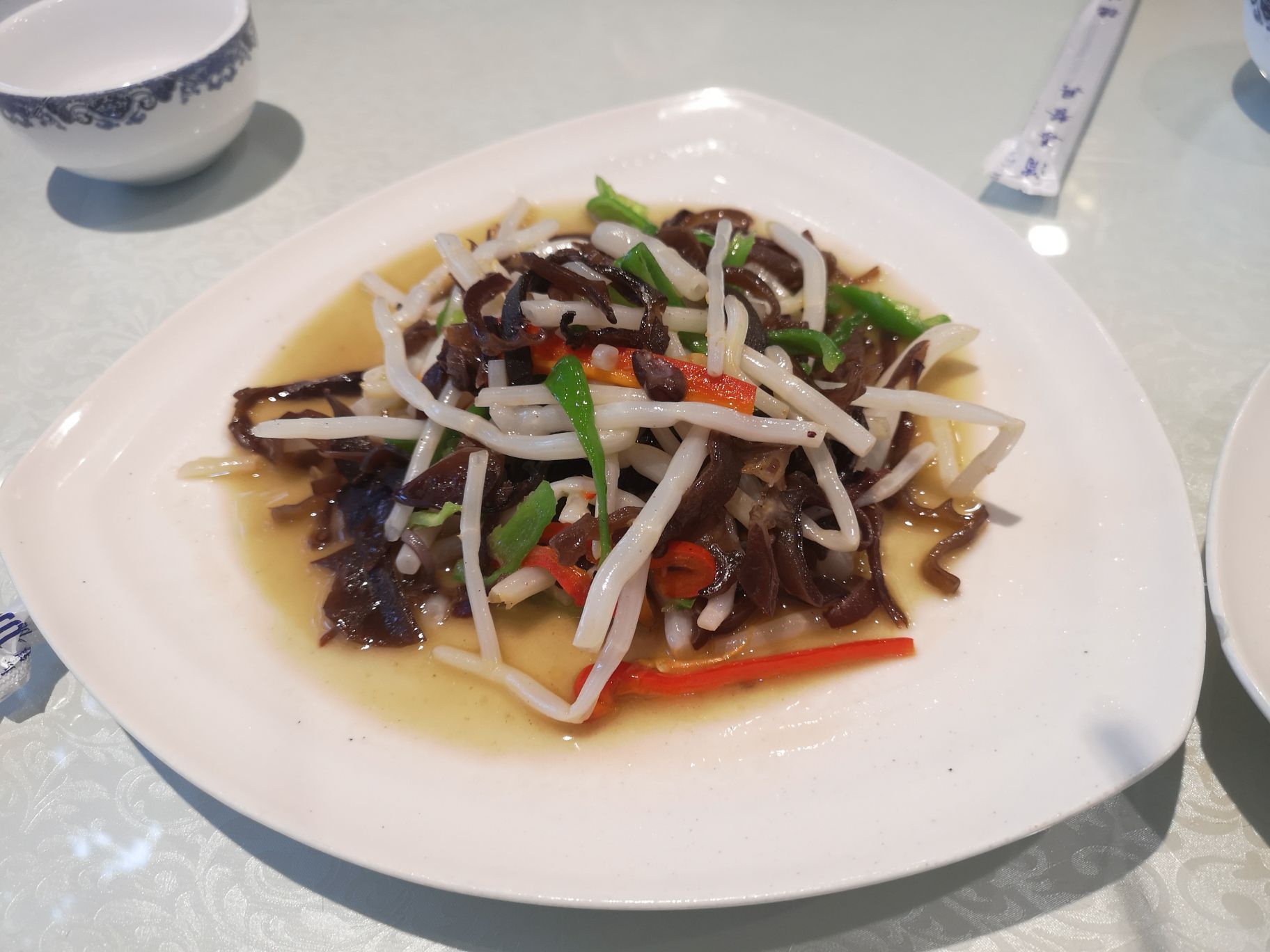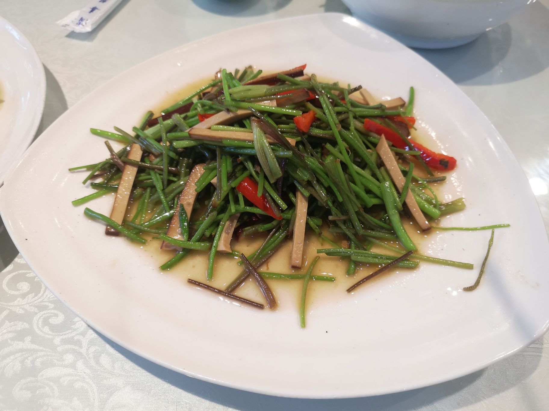 晚上点的菜比较清淡,推荐茅草根(莫干山的特色菜 是酸酸的,爽脆的口感)野芹菜炒豆干和油焖茄子