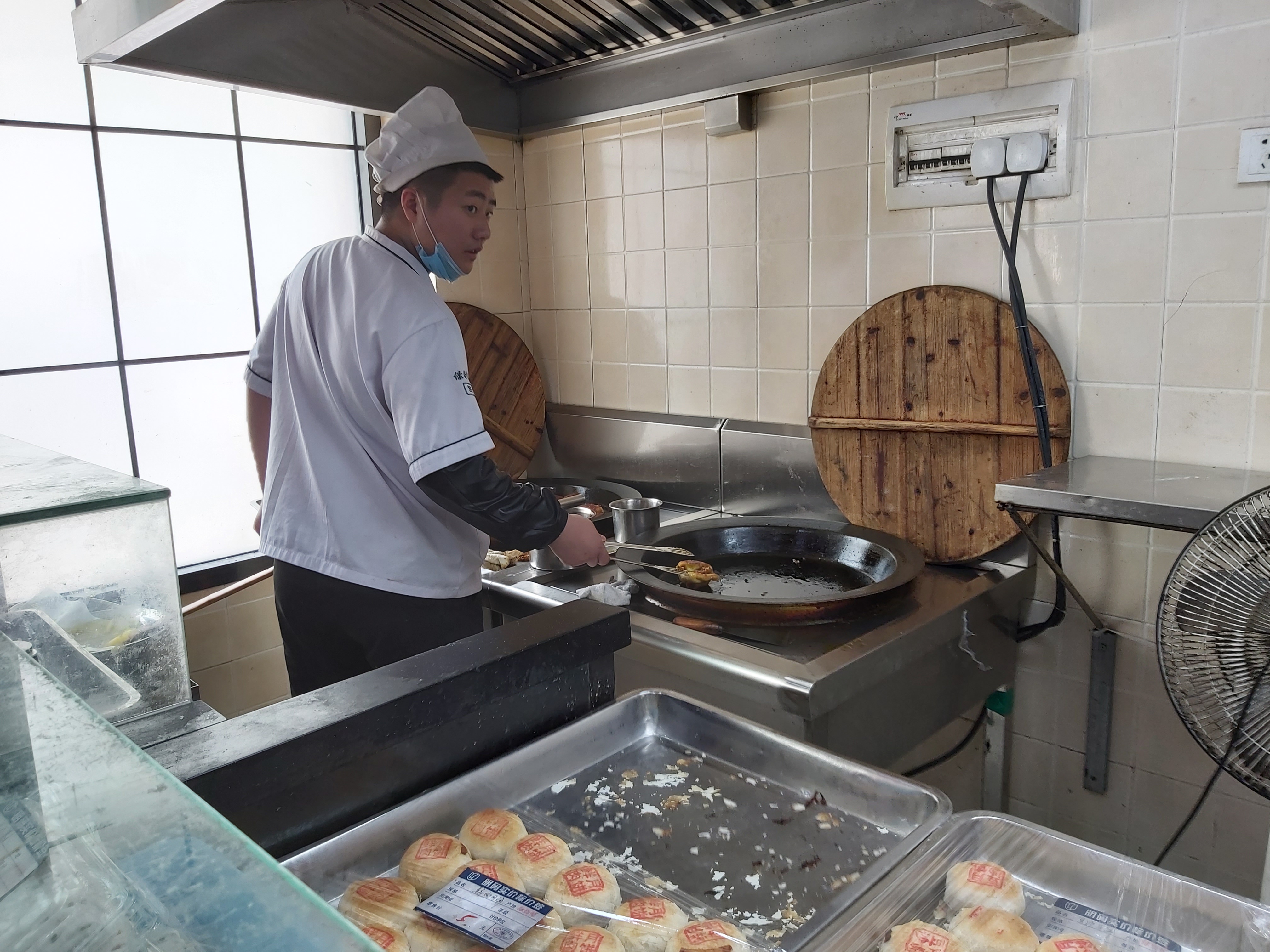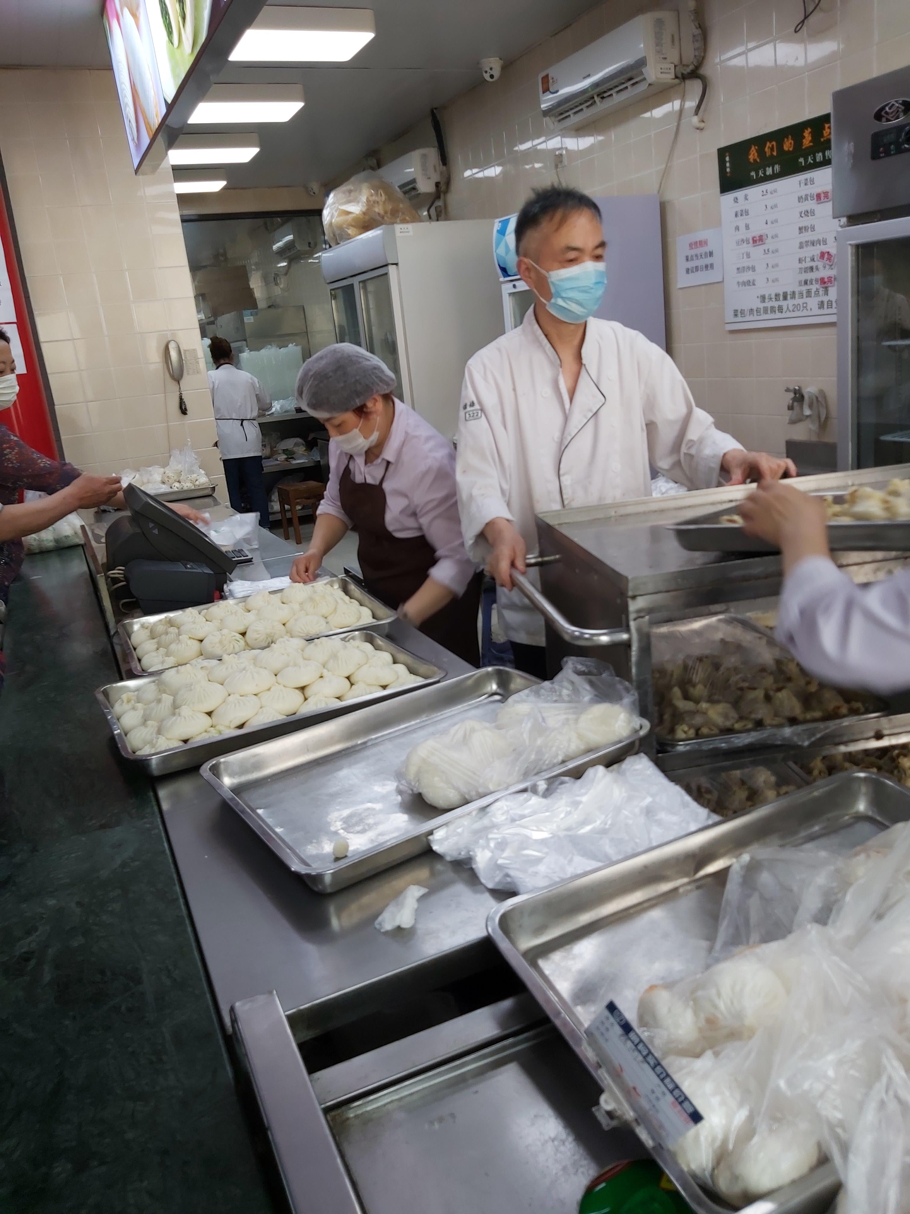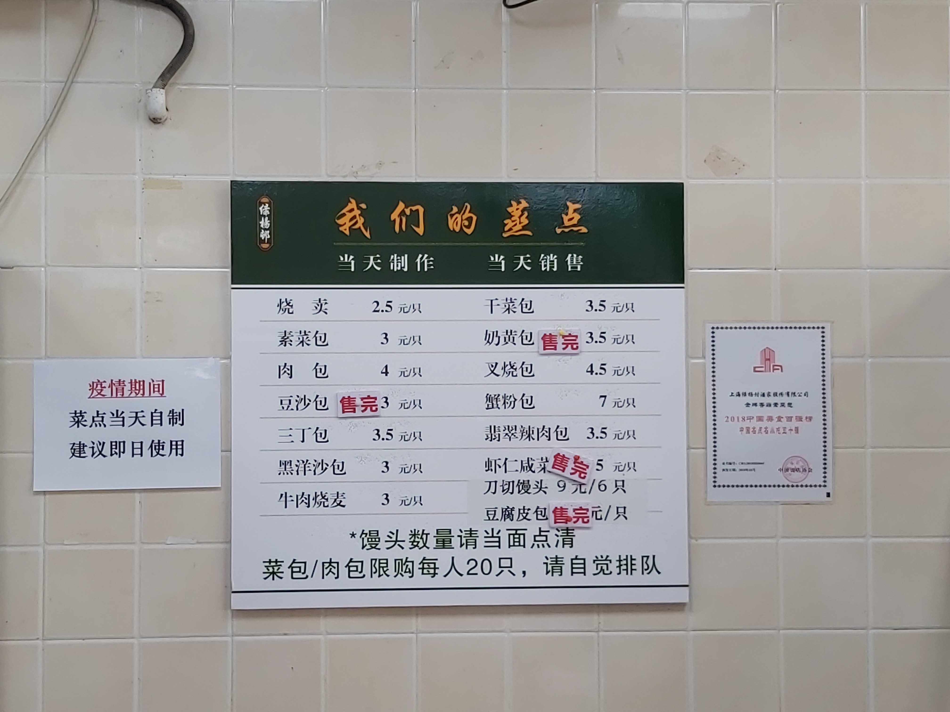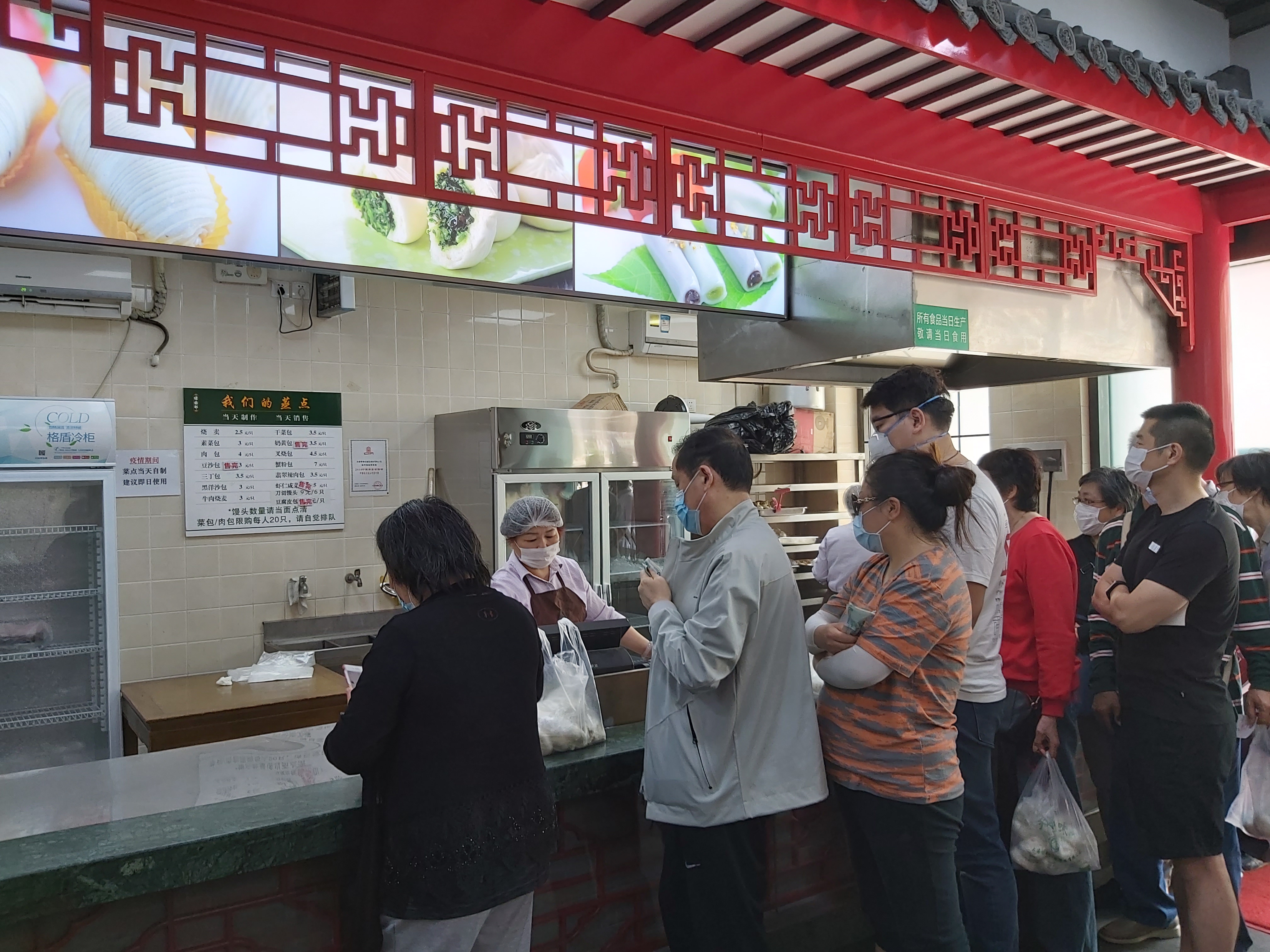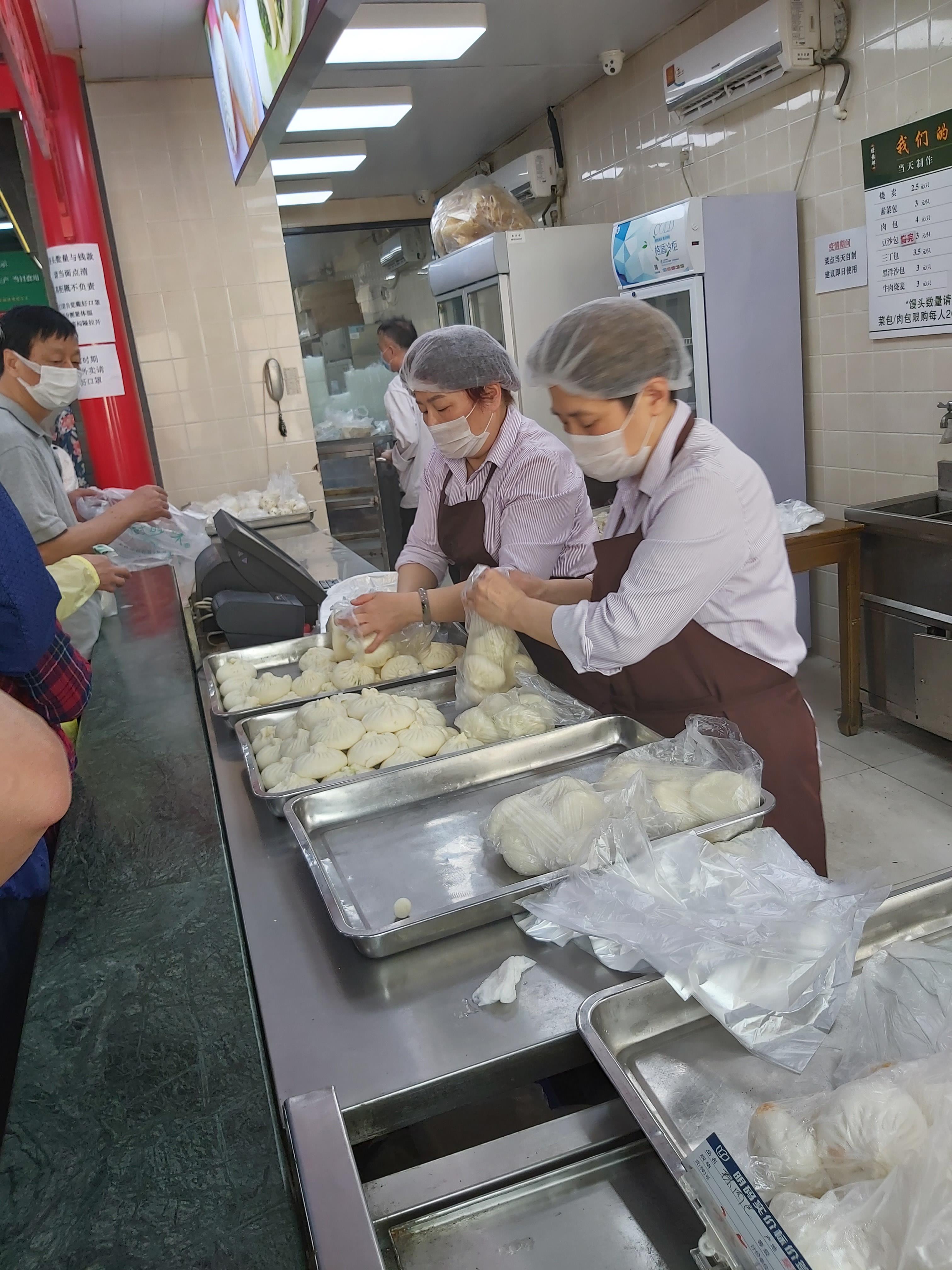 说上海滩最火的素菜包是绿杨村,可以找到如下的理由: 1、无论春夏秋冬,走过路过,没有不排队的; 2、无论你是谁?你从哪儿来?你要去哪儿?无论你排队几小时,每人只能限购20个(买包子有限购公示的,别处很难见到); 3、上海蔬菜包,只要是老上海人,只要稍微讲究一点餐食品质的,没有人不知道这个品牌的蔬菜包的; 4、上海要说小笼包子,大家都知道是什么品牌的(并非只有一个);要说肉包子,其实,至今为止上海没有一个肉包子是被公认的;但是,说起上海蔬菜包子,说绿杨村不会有人跟你吵嘴的,就算不是唯一的,起码还是公认的。 2020年5月4日中午11点35分,走过路过江宁路77号绿杨村外卖部,一时心血来潮,排队50分钟就只为买这15个蔬菜包(20个太多了,吃不了,10个太亏了,毕竟排队50分钟了); 5、买好以后,一出店门,即刻扒下口罩,狼吞虎咽干掉了1个。不过,Old FU不得不提醒大家一声,这个包子在蒸笼里所用的垫子,似乎有点令人担忧,它不是用稻草做的,而是硅胶(最后一图清晰可见),是食用硅胶?还是其它硅胶?不得而知。 6、绿杨村包子外卖的地址应该是江宁路77号,而不是奉贤路282号(所附照片塑料食品袋上已注明),虽然只是拐个弯,毕竟不是一个门面,建议小编改一下。