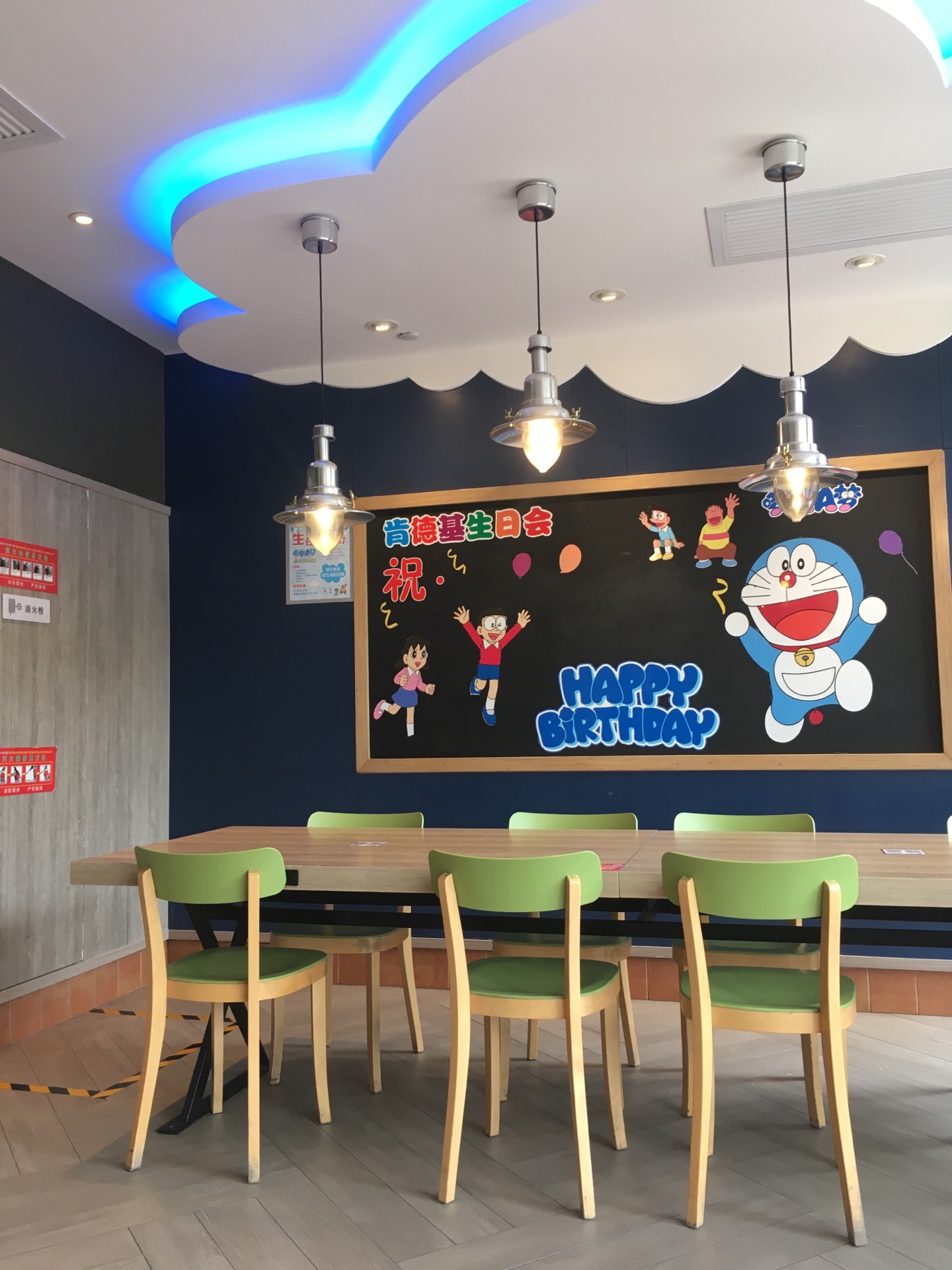 庆春银泰一楼底商的肯德基,位于太平门直街。这家肯德基离单位最近,所以隔个几天就会去光顾一下。一楼的座位较少,二楼就要宽裕多了,还有一片生日宴会的特定区域,色彩效果上还是挺出彩的。唯一的问题就是,这一带是闹市区,所以就餐环境有些嘈杂,取餐时间也会长一些。