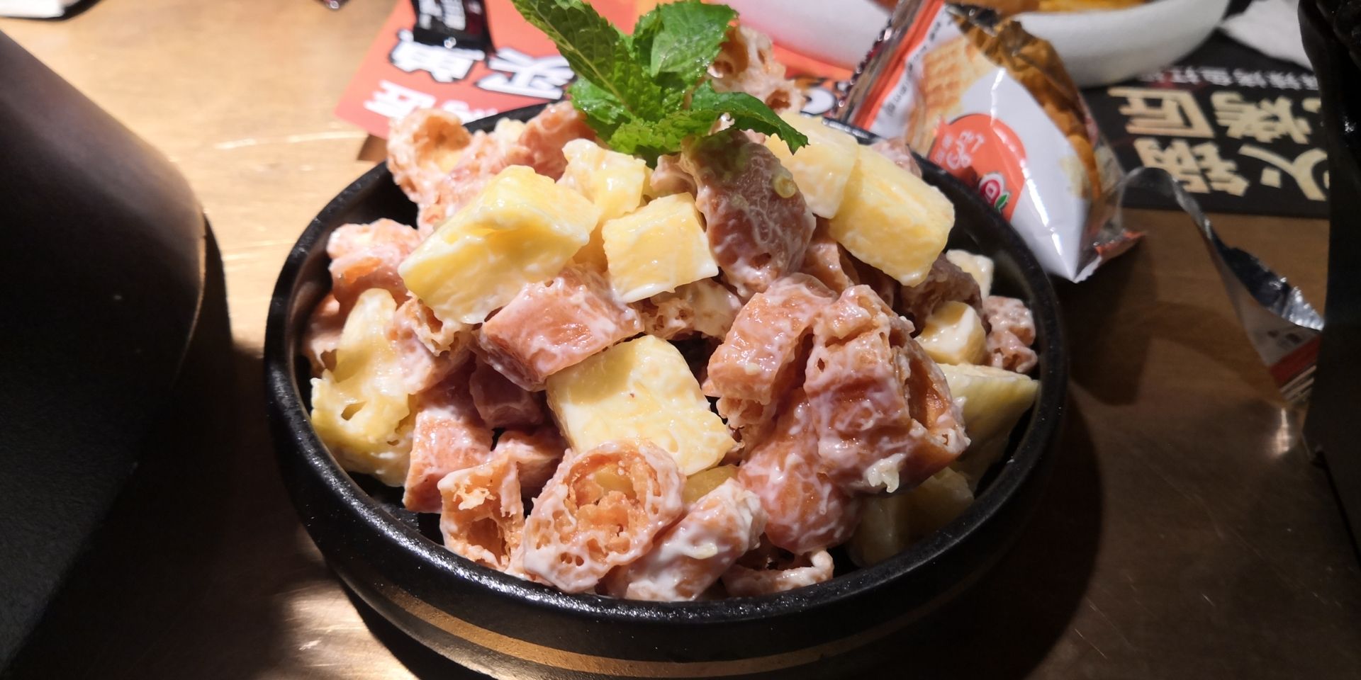 包浆豆腐很赞,还有菠萝小油条好吃,油条是酥的,店家还赠送了冰激凌