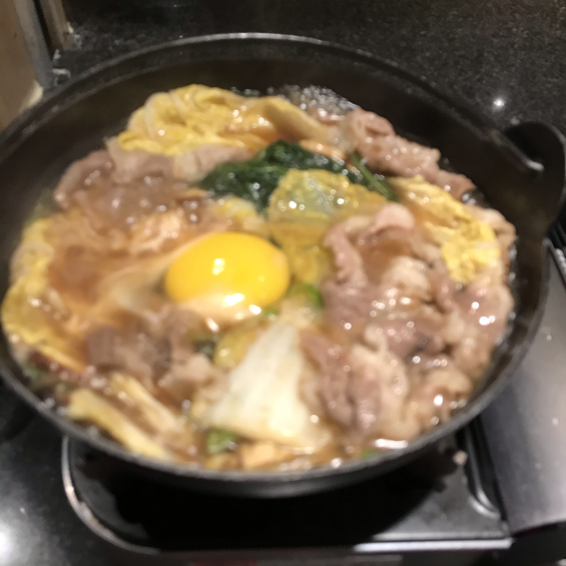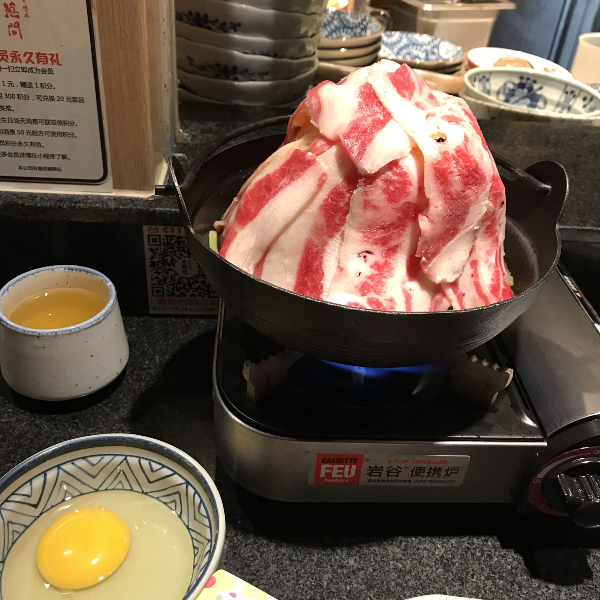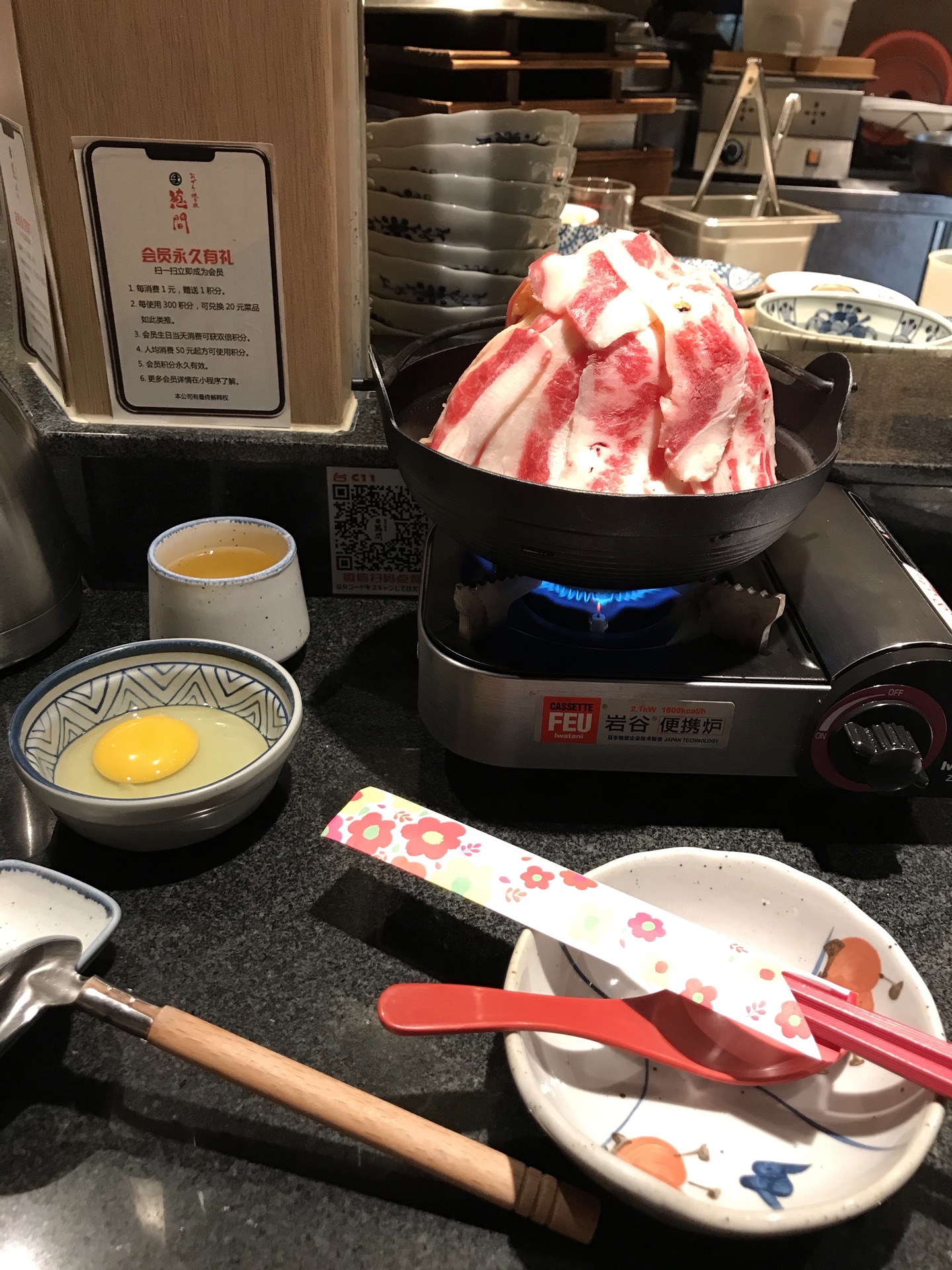 大概十二点多来到,如果坐吧台位置还是比较有保证的,点了迷你牛肉锅,和传统日式火锅差不多,都是很甜。喜欢这种锅一来现在特殊时期都吃热食位置好,二来营养搭配丰富,鸡蛋、牛肉、豆腐都是优质蛋白,另外菠菜、娃娃菜和香菇等十分健康,下面还有红薯粉,不吃碳水表示就不碰了。 这样子一锅份量也是足够多,不够可以➕白米饭,本来鸡蛋是用来蘸牛肉的,但是现在我都不敢吃生食,直接煮熟吃,另外要了现磨的芥末酱➕酱油作为蘸料。