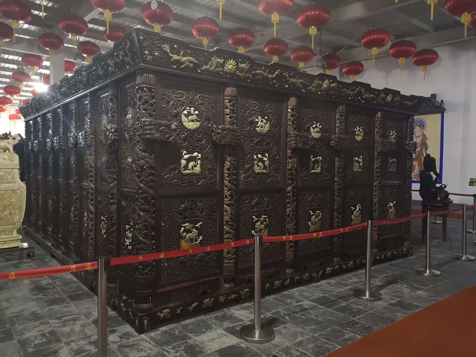 之前很是好奇,周园是中国最大的私家博物馆,但怎么会有北有故宫,南有周园的美誉,今天来了算是开眼明白了。第一张是龙凤床,从公子床到小姐床结束,两张床上雕有的西厢记中各爱情片段,栩栩如生,感动。第四张是床王,三十平方的背面,图四是正面,地上铺的是一两黄金一块砖的苏州金砖(说明了这床是谁能睡的)。第七张是五吨重的龙凤砚