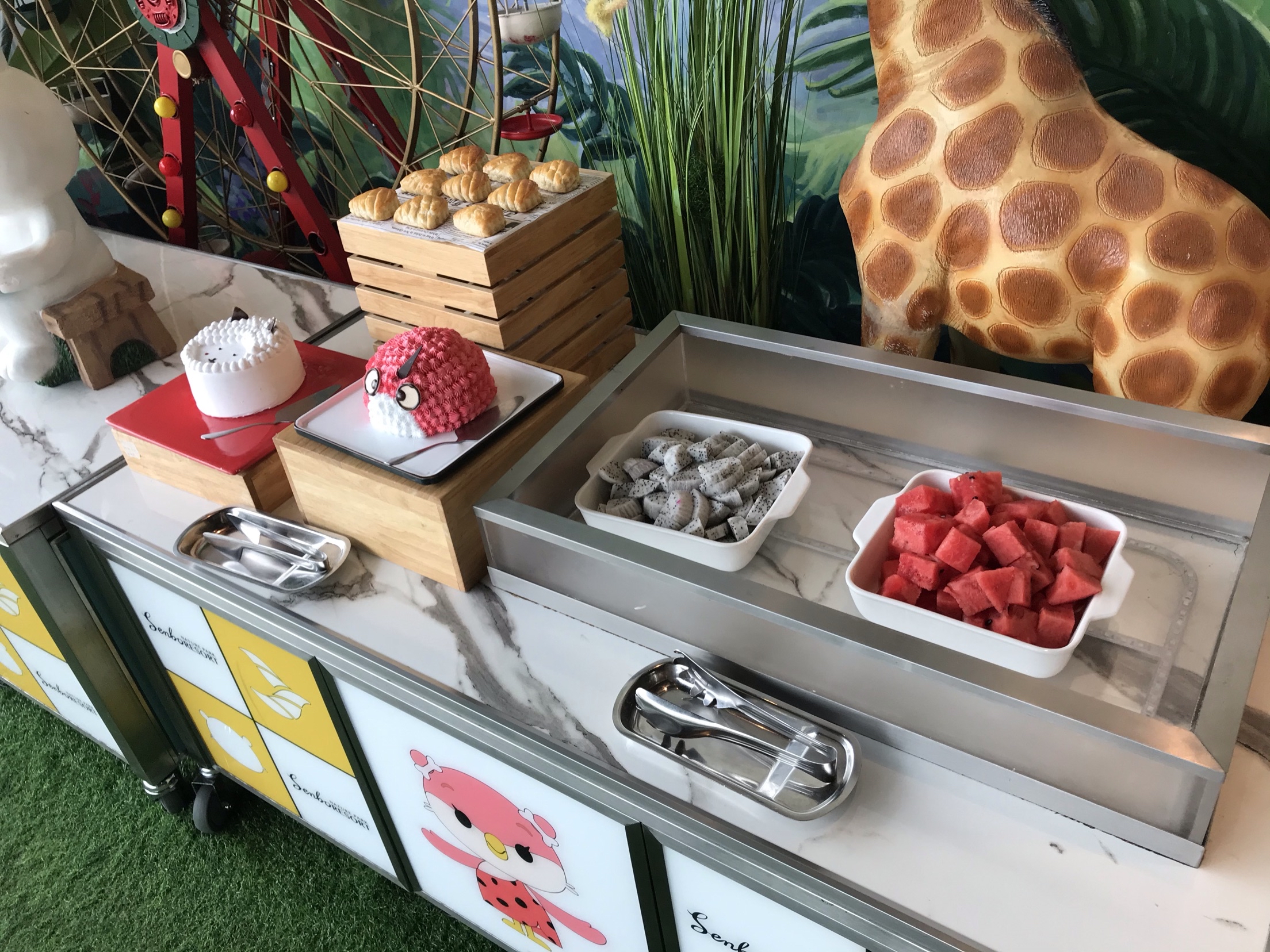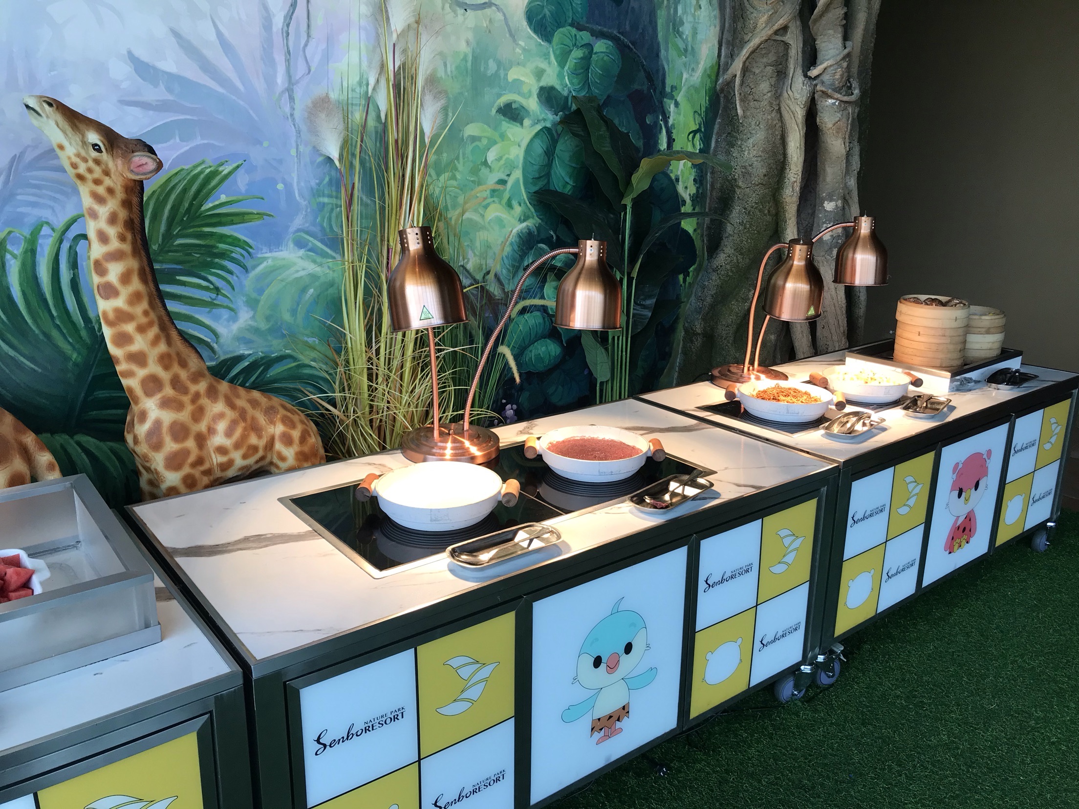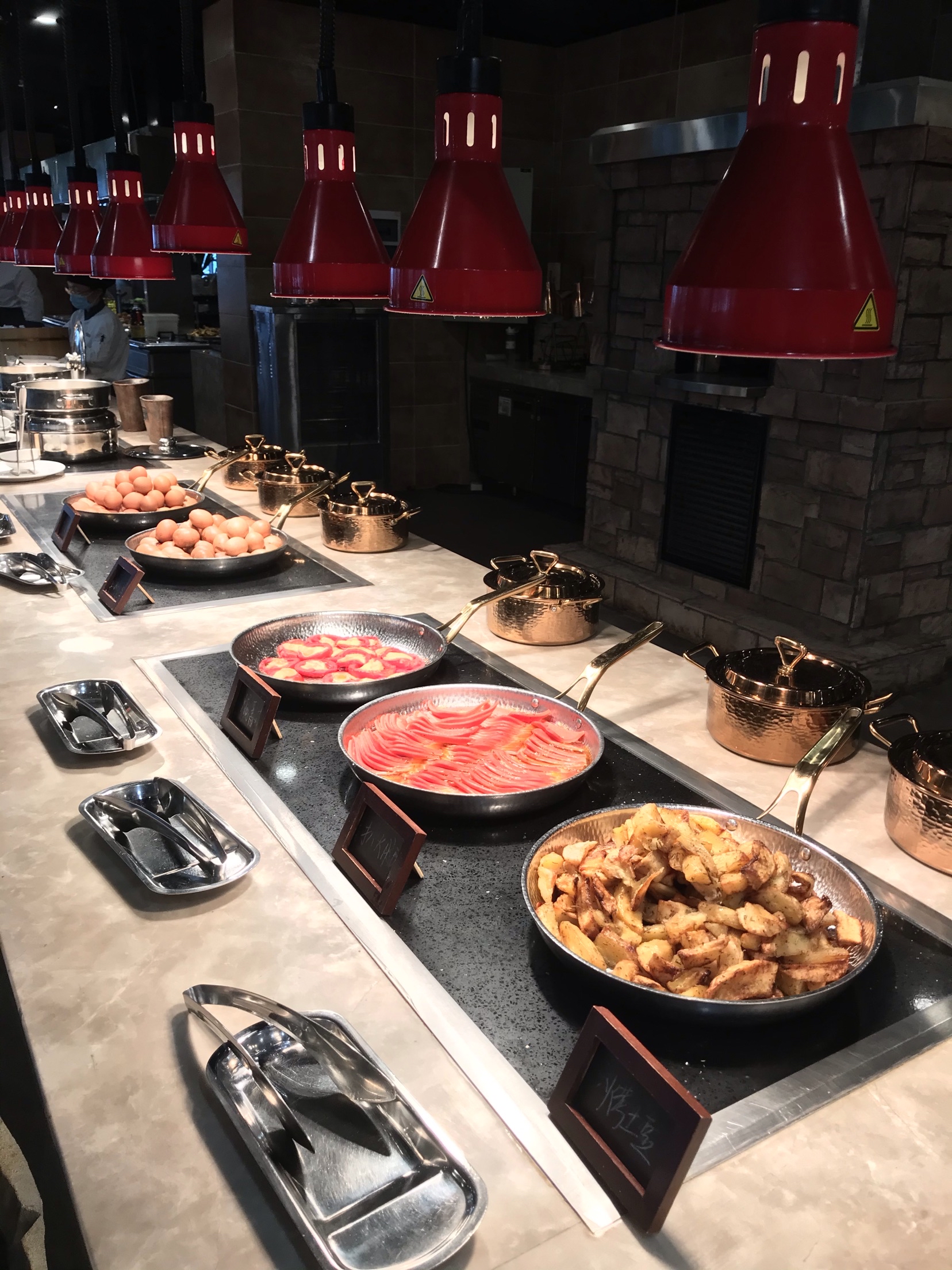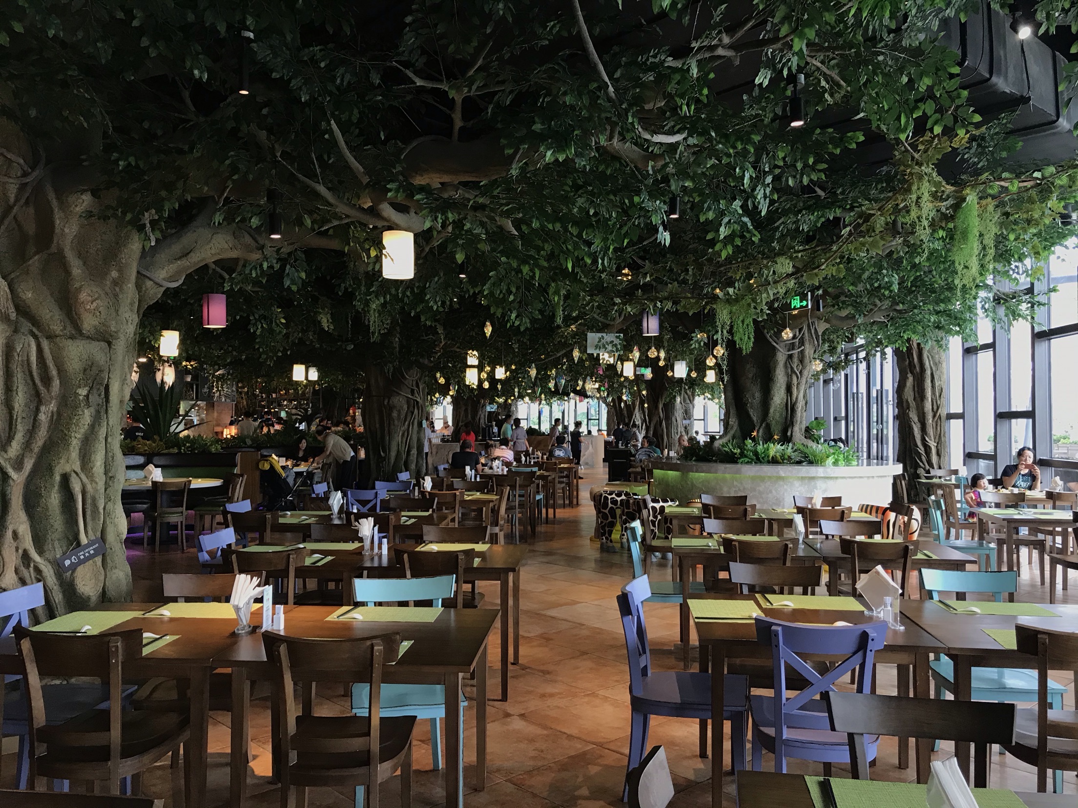 开元森泊的雨林餐厅晚上是自助餐,白天是住店客人享用早餐的地方。 酒店很贴心的标明了不同时间段的客流量,为了错峰,我们差不多7点40到餐厅吃饭。 人不多,早点出来吃饭还是比较值得的,所有东西都很齐全,觉得最棒的是煎蛋🍳。所有的荷包蛋都罗列在那里,想要太阳蛋随时都能拿到。 冷肉区,蔬菜色拉区也是一应俱全,饮料有果汁,有牛奶,只是芝士的种类少了一些。 除了西式的早餐,有面条,米粉,小馄饨等等。各种粥,豆腐花,蒸点,蛋饼,糯米饭团等中餐的特色都有。 餐厅比较特色的是儿童餐厅,给小朋友专门准备的餐食,本来以为过家家,没想到是真的,非常亲子的餐厅。 8点半到9点的时候到达了餐厅的高峰,之前空荡荡的位置全部坐满,服务员可能来不及收东西,可能体验会差一些。