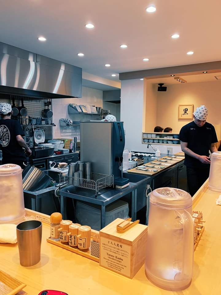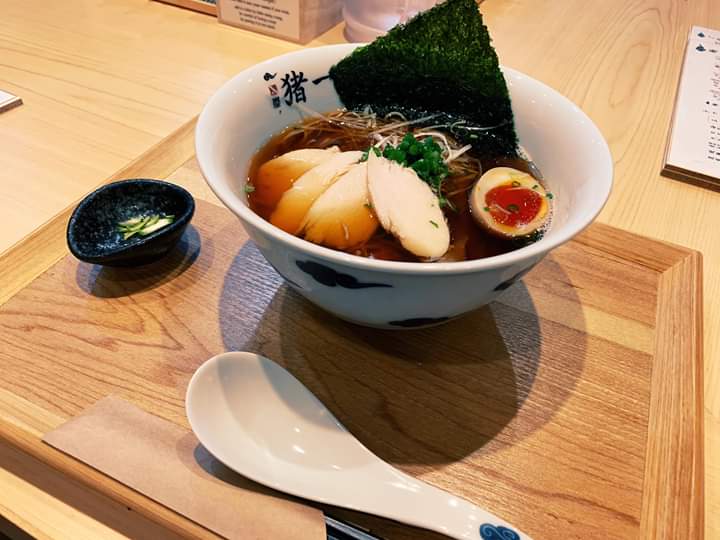 口味走清爽路线的猪ㄧ拉面,每天店外都大排长龙,京都前三名的拉面店。晚上九点去吃的,店里还是很多客人。坐下座位之后,陆陆续续还是有新客人进来。推荐鸡そば 黒950円,面条细软,汤头清淡。不喜欢口味重咸的朋友可以来吃吃看猪ㄧ!