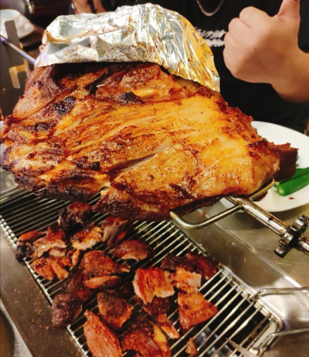 烤羊排,烤羊腿,两大主菜,小姐姐会帮你切好,手抓烤羊肉,一口一口撕下来和啤酒绝配烤羊排,烤羊腿,两大主菜,小姐姐会帮你切好,手抓烤羊肉,一口一口撕下来和啤酒绝配。葱油饼闻起来葱油味十足,跟酥脆很香。羊肉串肥瘦相间,一口下去满满的油脂。