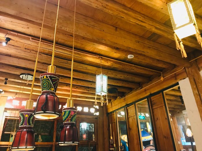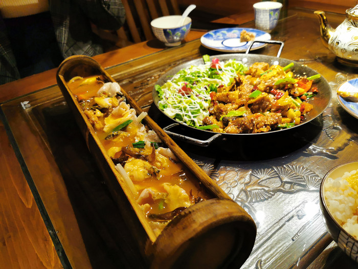 真的是很有特色的一家云南创意菜,环境和服务都很好,装修风格是民族特色的,一直循环播放着云南的名歌,很有意境啊,一个大眼睛的服务员妹妹太热情了,好像是大理人,一直在给我们添茶倒水介绍菜品,口味给了五星,干锅腊排骨腌制过油炸爆炒,外酥里嫩的口感,还有一半沙拉很解腻,竹筒鱼现场浇汁,鱼肉嫩滑,酸辣下饭,下面还有特色的菌菇和米线很好吃,据介绍用的是雪山乌鱼,鱼肉口感很棒啊,如果菜冷了还会还要帮忙反复去加热,体验感实在是太棒啦