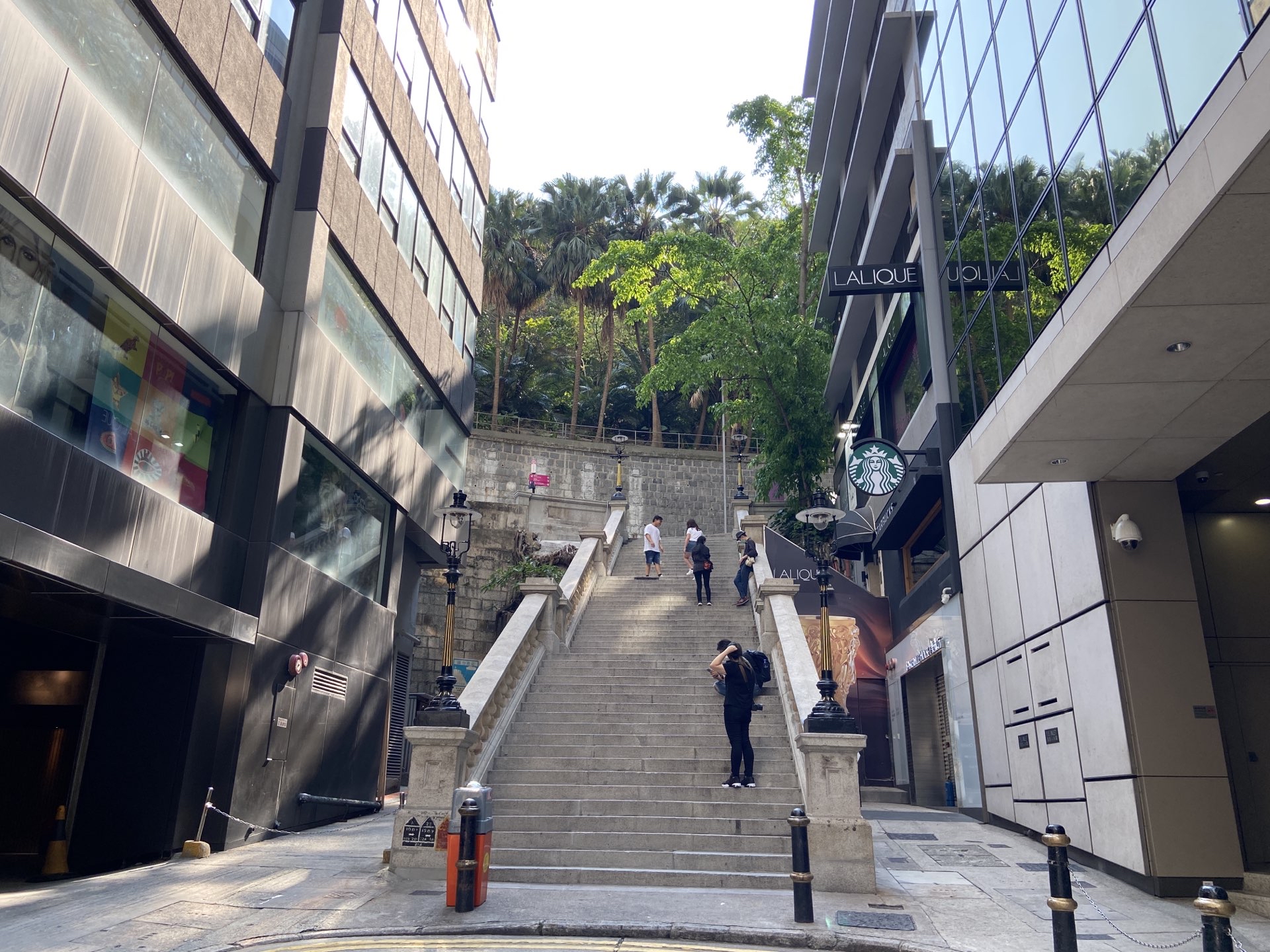 中环怀旧的老街,除了砵甸乍街之外,还有就是都爹利街上的这个有着煤气路灯的台阶。在台阶的四个角分别有4盏煤气灯,所以这条街又称之为煤气灯街,100多年的历史了,在香港很多的TVB剧集曾经出现它的场景。但是在2018年9月16号的时候,遭遇到超强台风山竹的袭击,石阶一侧的扶手和三盏煤气灯被大树压毁,在经过一年多的修复之后,在2019年12月23日圣诞节前,煤气灯再次点亮。不过之后又遇到了疫情,目前为止还有很多的游客都没办法目睹修复后的石阶。
