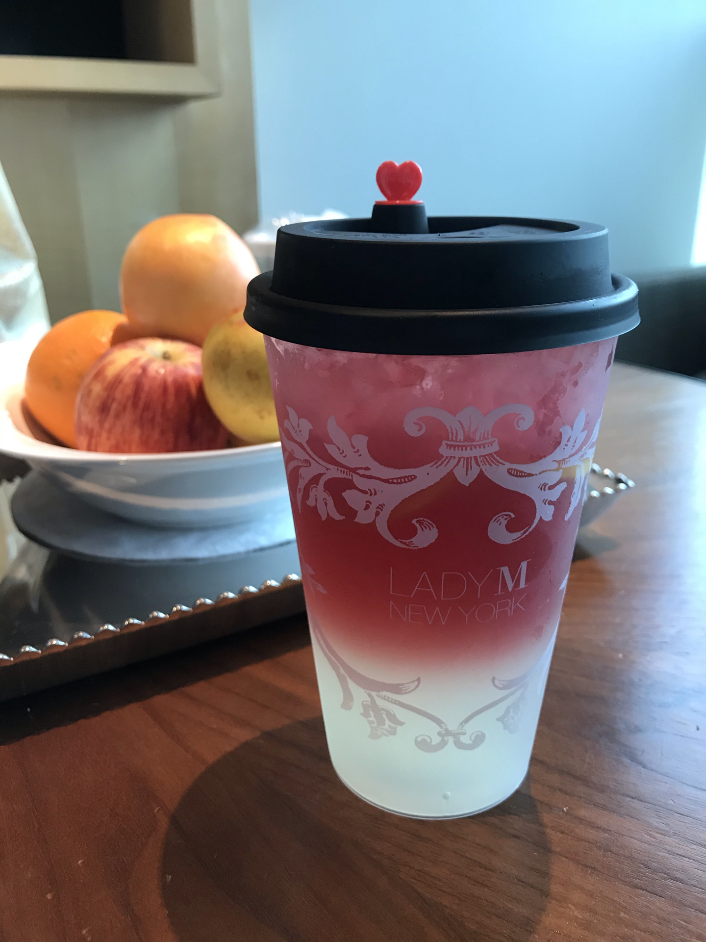 夏天吃这家千层感觉不错,冰冰凉,而且不会太甜了。这家招牌是玫瑰千层和抹茶千层,两者我比较喜欢玫瑰,抹茶粉有点苦。这边千层一个价,百香果芝士那个便宜几块钱,还有同系列的饮品,可以凑一套,很多网红小姐姐喜欢来店里拍照,一定想要在店里面吃估计得耐得住性子等等。
