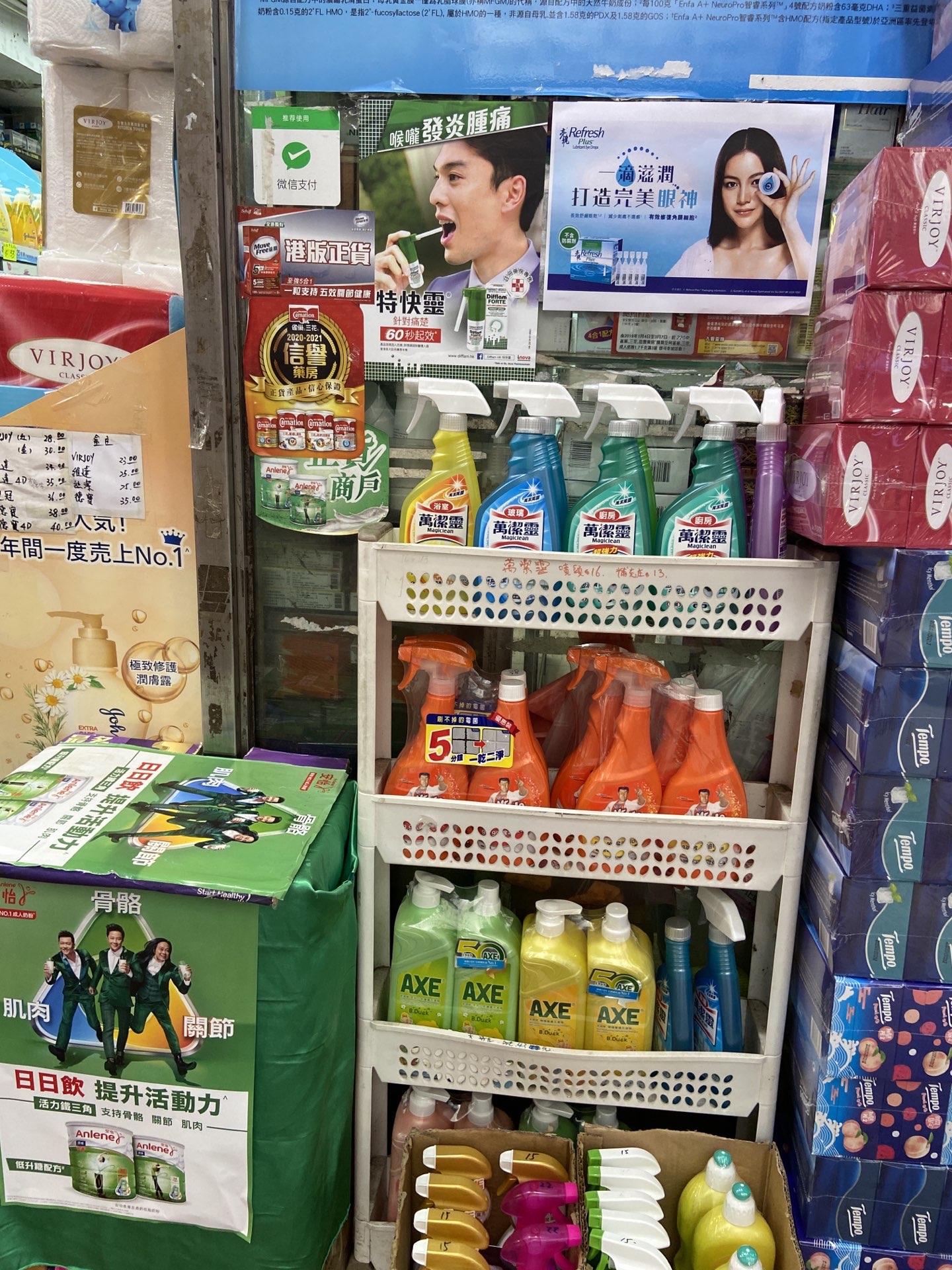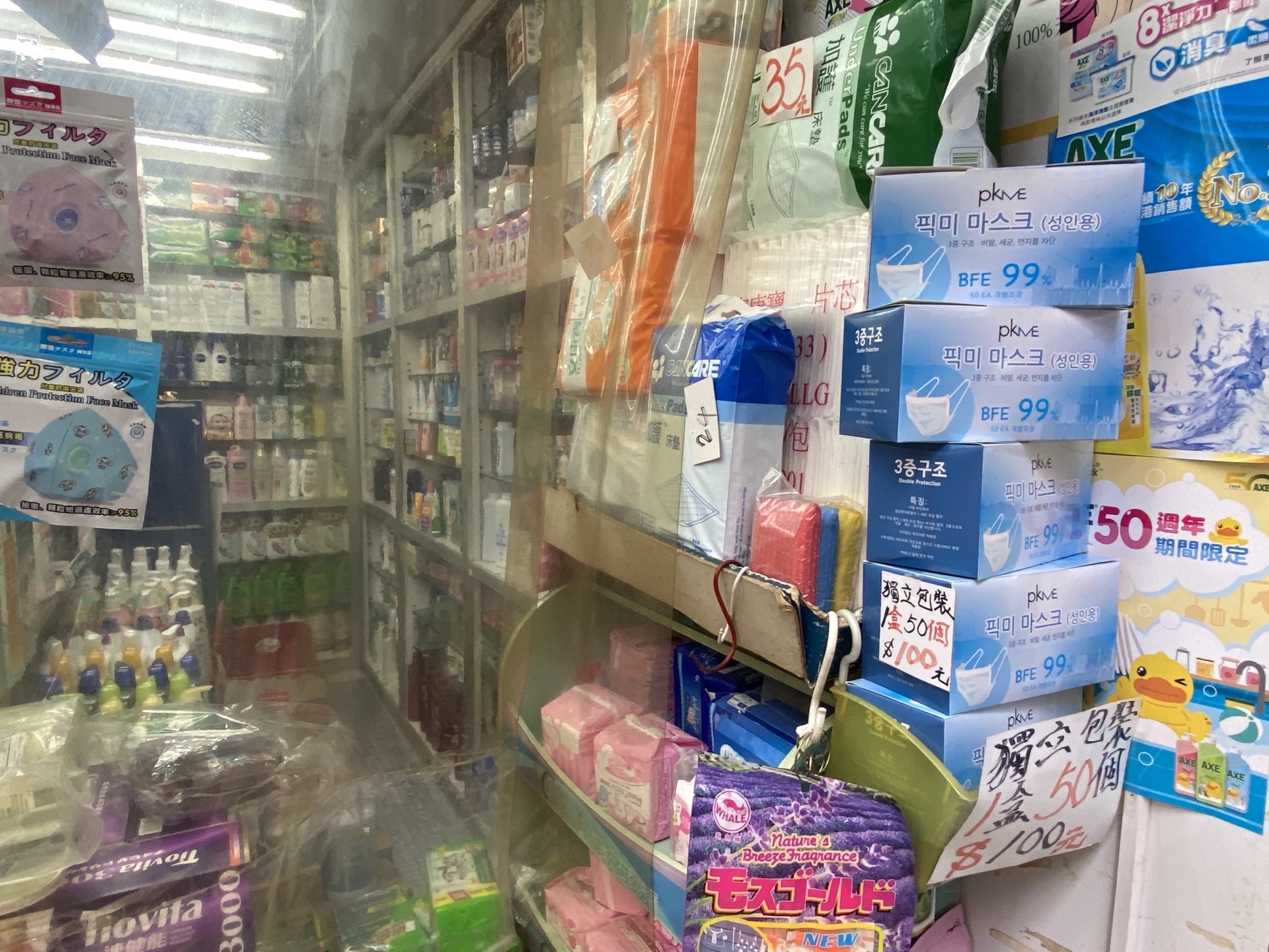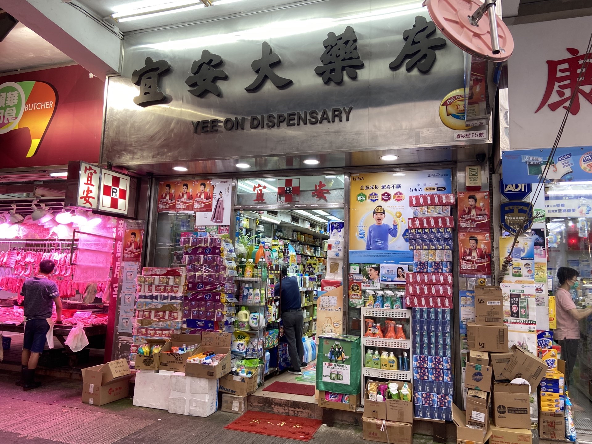 春秧街是北角人气最旺的一条街道,也是北角的婆婆妈妈们日常最会去逛的地方,因为这一条街都是菜市场。宜安大药房就位于春秧街的中段,这条街人气旺,自然药房的生意也很好。同香港大部分的药房一样的布局,便宜一些的洗浴用品就堆在店外,昂贵的奶粉则在店里收银台的前面,店员随时都观望得到。