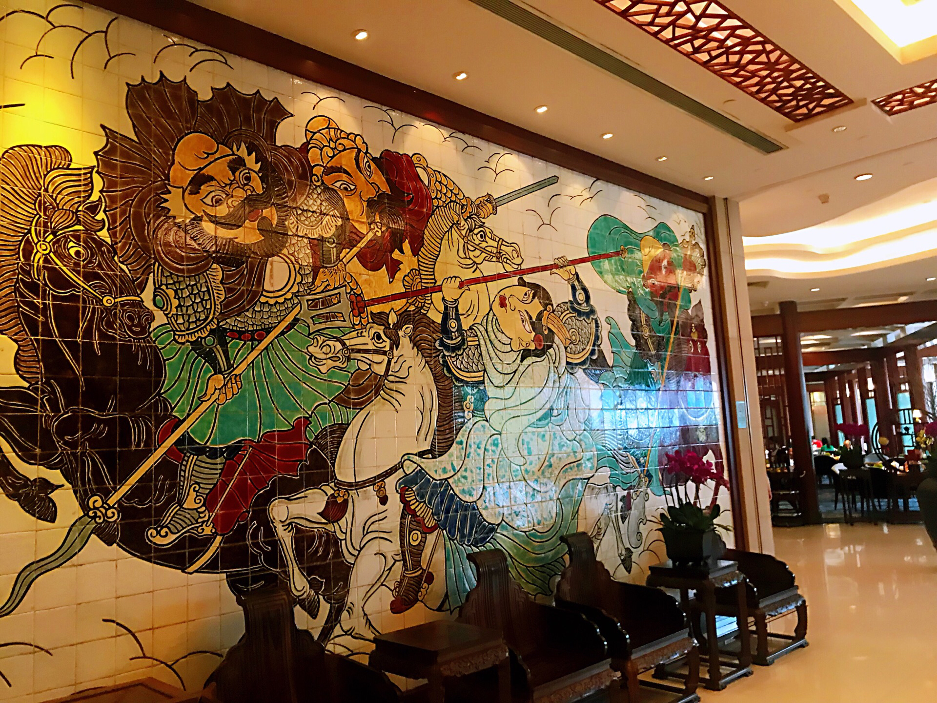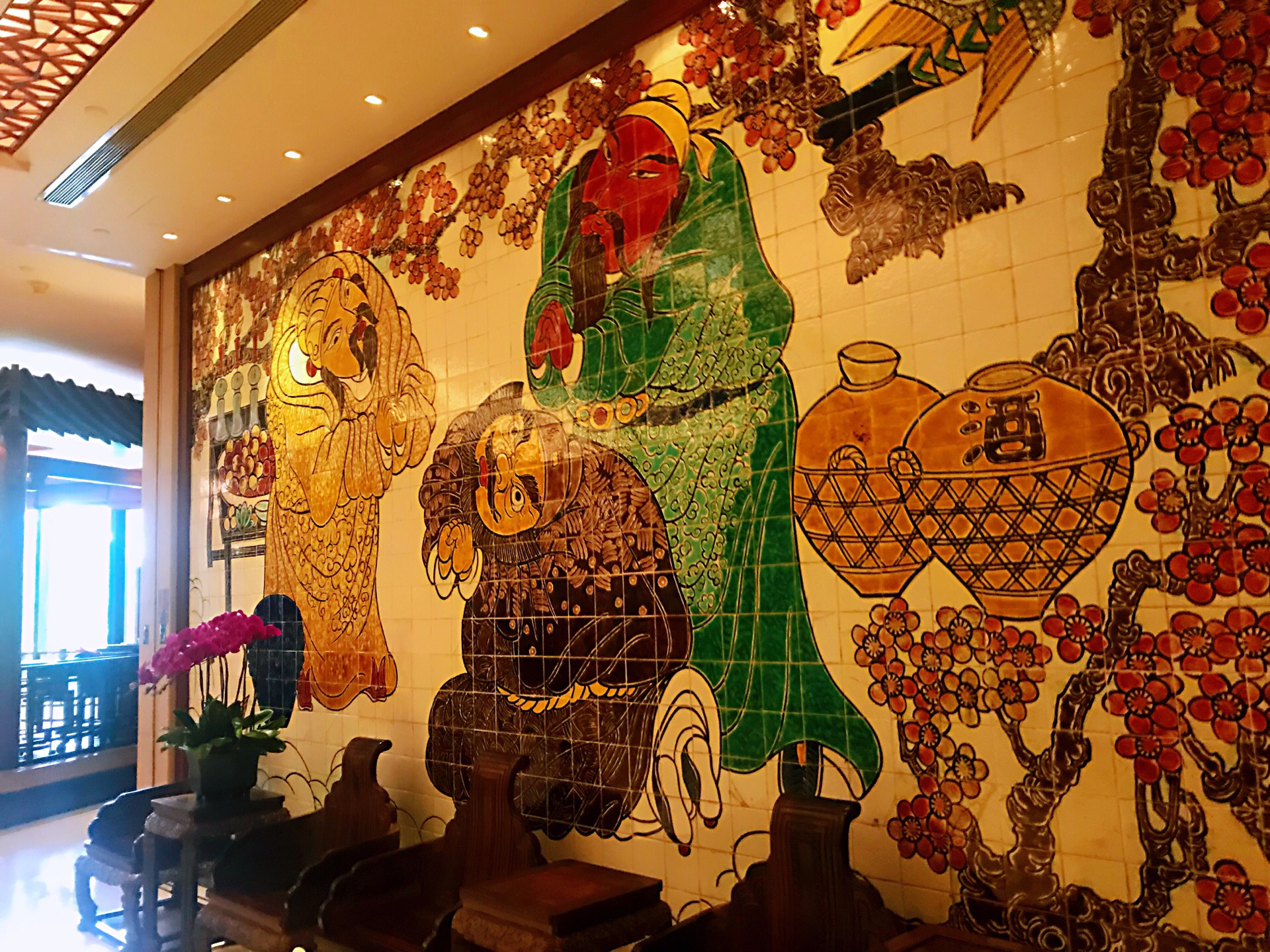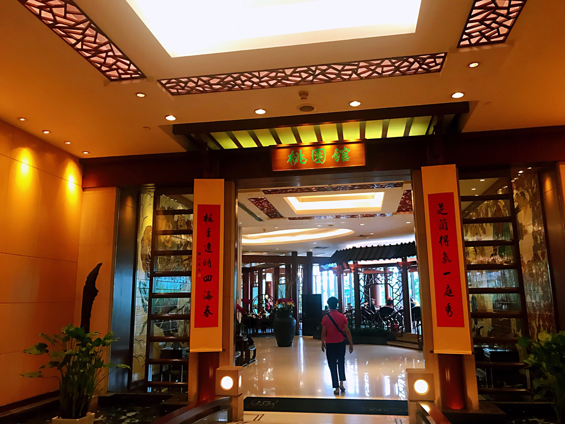 老同事约我过去花园酒店.桃园馆喝早茶。我已经几年没有去那里了,这是花园重新装修后第一次过去。 幸好是九点前到达,不用排队等位。桃园馆的环境依旧,门前是小桥流水,进门后见到两边墙上的桃园结义的壁画依旧,不过环境装修的更加高雅。 服务员很多,服务非常主动到位。 【牛肚丝白果粥】分量少,也就是两小碗的分量,粥底绵滑。 【虾饺】论位上,皮薄馅大,味道不过不失。 【蛋挞】也是论位上,外酥内滑,不会很甜。 【萝卜糕】切成小块,粉多萝卜和腊味较少,煎的不够香。 【鲍汁凤爪】比较软,较入味。 加上茶位费和服务费,买单400元,人均消费200元,小贵。