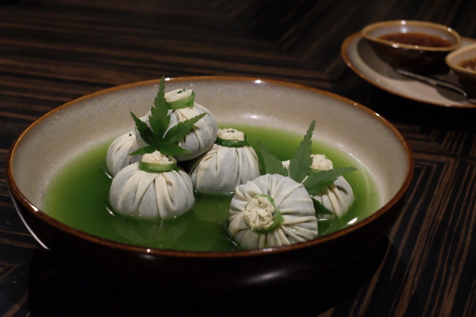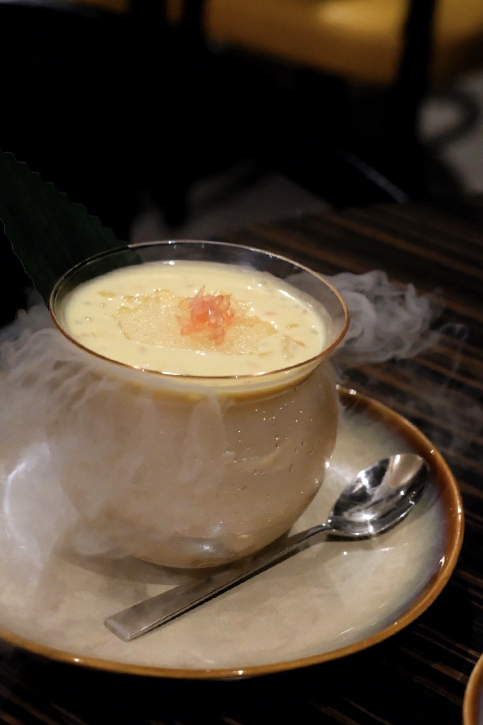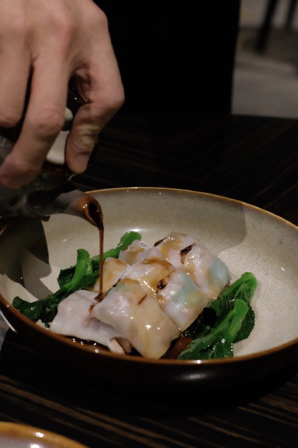 我对明阁的执念和喜爱,大概就是距离产生美。太远了,真是太远了,所以去一次我吃得很珍惜。如果近一点,可能已经吃过好几次反而不留念想了。 ▹野菜石榴果 一吃定情!真真是我见过最大的百叶包了。 极薄极韧的豆皮把切碎的马兰头、木耳、马蹄和香菇裹成一个个圆鼓鼓胖乎乎的石榴果,就这么敦实的坐在黄瓜汁里。一口咬下去爽脆多汁,迸发出清凉鲜香,如身处竹林清风拂面。野菜的鲜香无需多余的调味就够迷人了。 ▹梅菜黑豚叉烧肠粉 肠粉皮偏厚,倒是能吃出黑豚叉烧的香甜,但梅菜香味存在感实在太低,中规中矩。 ▹野菌和牛千层酥 酥松的外壳入口即化,冒着热气的烫口内馅鲜香四溢,这种香酥可口的小点心从来不会让我失望。 ▹传统鸡蛋挞 薄脆的港式酥皮层层相叠成挞底,小心翼翼地托住滑嫩极了的蛋挞馅,纯纯蛋奶香在挞皮的黄油香气中更加浓醇。小小的蛋挞做得这么细致优秀,都把我吃感动了嘞。 ▹脆皮炸子鸡 大老远来,招牌的脆皮鸡还是要吃一吃的。薄如纸片的脆皮,柔嫩多汁的鸡肉,中间一层恰到好处的油脂,层次分明,浓郁咸香不掩鸡的本味,棒棒棒! ▹吊烧江鳗鱼 薄薄的鳗鱼肉带不来口感的鳗鱼,肉质也略偏老偏干。老太婆抹上粉就能变少女吗?能吗?! 有点柠檬别人来吃到的肥厚江鳗,大概我这条在减肥吧。 ▹xo酱鲜虾野米炒饭 用料满满的这盆饭一上桌我就觉得稳了,卖相很ok,兴冲冲来一口emmmm,讲道理,对于炒饭而言,只要饭粒口感到位,配菜真材实料炒进去,怎么也不会难吃,但也确实没我预期的好。味道很淡,更别提xo酱的鲜香了,真的好可惜。 ▹雪燕杨枝甘露 这种类型餐厅的杨枝甘露都大同小异,很少有难吃的。明阁的这碗加了雪燕,又仙气缥缈,自然会让人多几分期待。味道是还可以的,果香馥郁甘甜可口,可惜质地偏稀了,我更喜欢略稠的。不是谁的错,但我们不合适