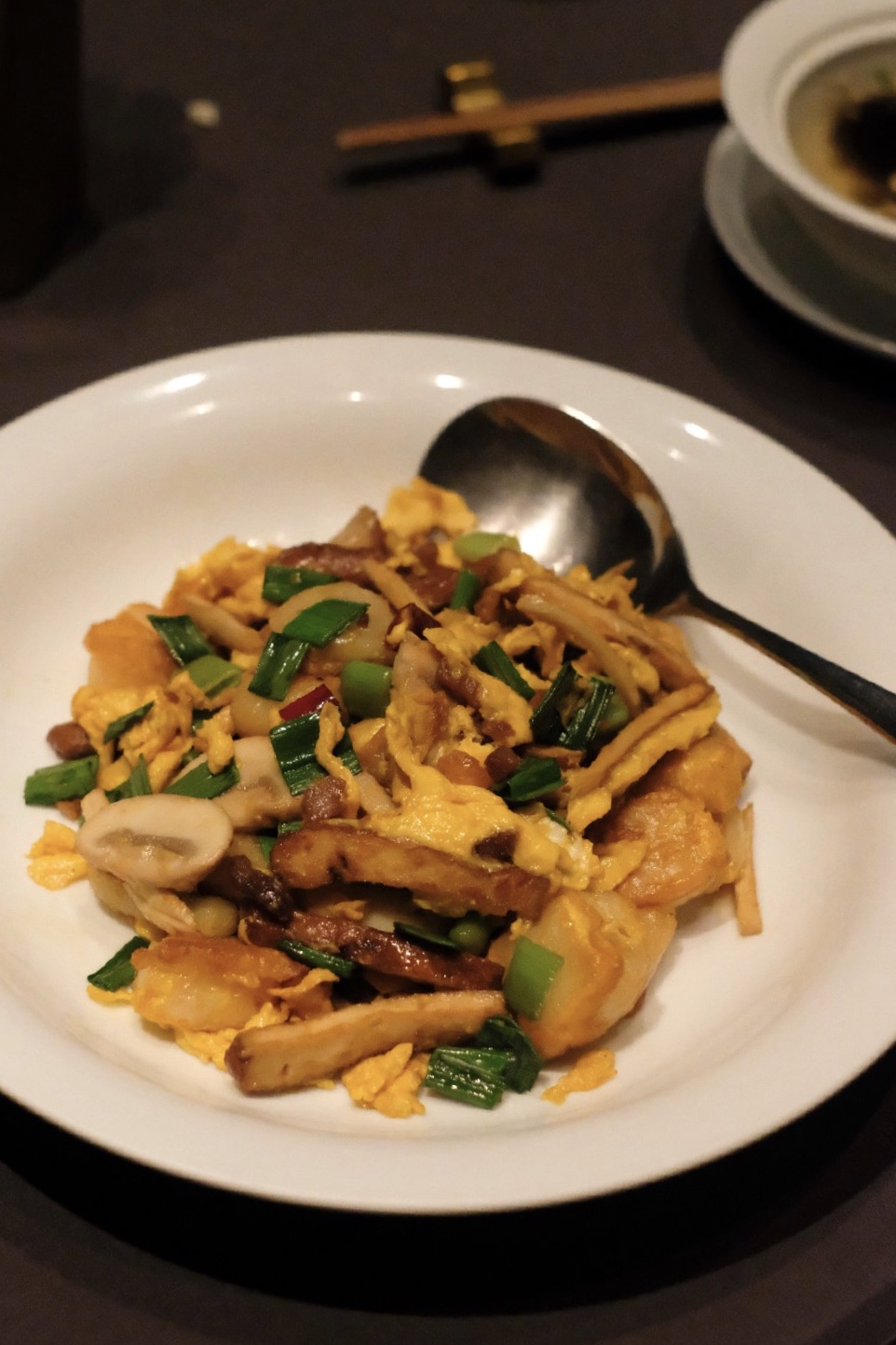 在新荣记点菜就是这么有安全感,可以期待它会不会惊艳,但无需担心会不会难吃。 ▹葱油蚕豆 ▹刀鱼馄饨 ▹黑松露鹅肝包 ▹香椿炒蛋 ▹原味仔排 好吃好吃,是美滋滋的好吃~仔排肥瘦相间,瘦而不柴,肥而不腻,用勺子就能轻易拆开,入口油润酥烂,梅干菜把肉的味道激发出更上一层楼的香甜,啊啊啊猪肉和梅干菜怎么这么绝配啊! ▹鸡蛋炒麻糍 朋友说这道菜在台州是随处可见的路边小吃,新荣记做的比台州的小吃摊还好吃。没去过台州的我无法考量面前的这盘是否正宗,但好吃!是!真的!小块的麻糍表面一层薄薄的酥脆,裹在蛋香里,软糯不失嚼劲,鸡蛋、香干、蘑菇和蒜苗都是缺一不可的最佳配角!