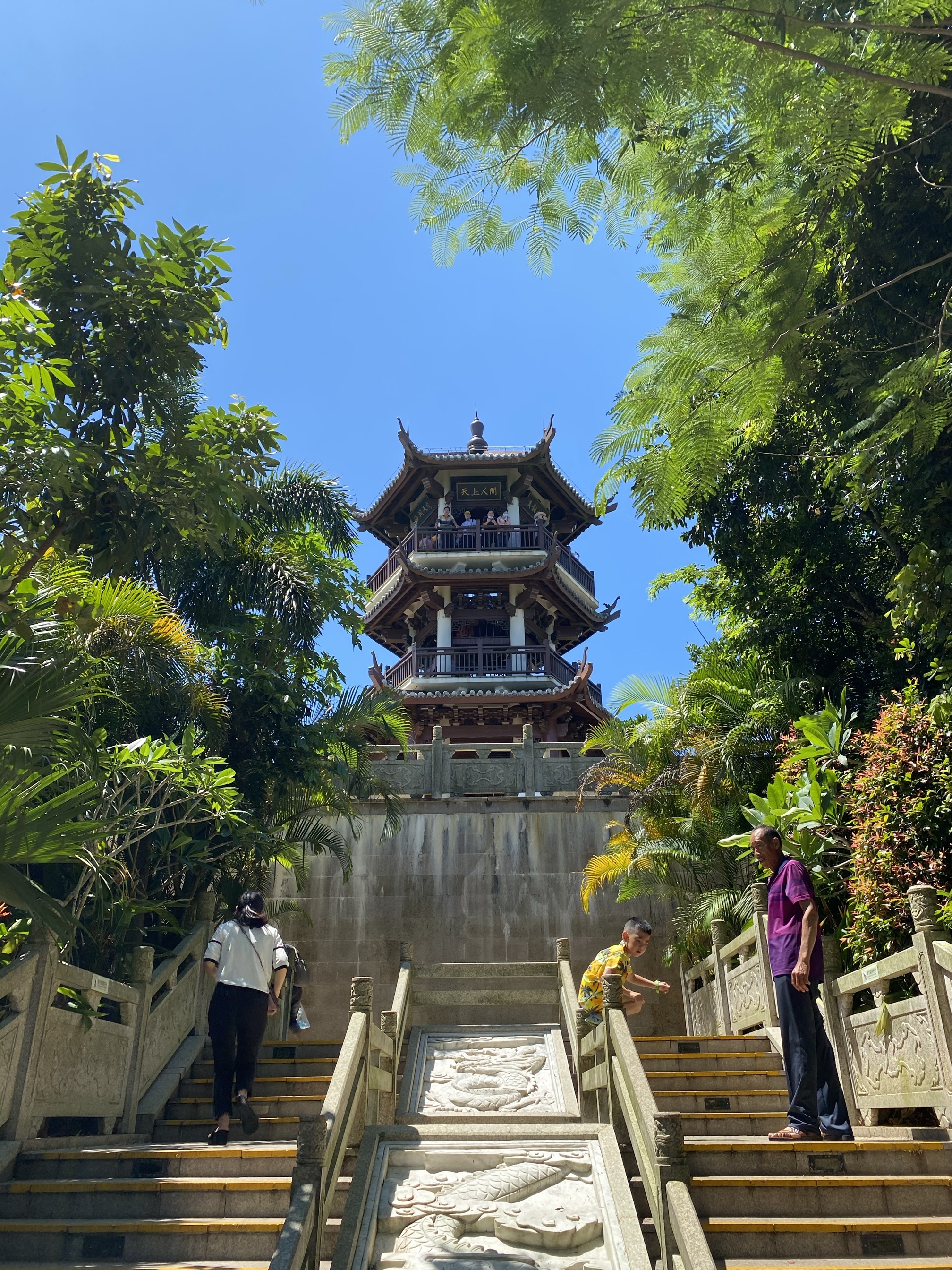去海南旅游,来到了三亚,到亚龙湾热带森林公园游玩。这一个沧海楼是在玻璃桥的尽头,沿着玻璃桥一直走过来,去到终点之后,就可以见到这一个约4-5层楼高的沧海楼了。很多游客都选择上楼,从高处远观亚龙湾的景色,整个亚龙湾的景色都收归眼底,美景当前,可以的话,建议大家都上去看看。