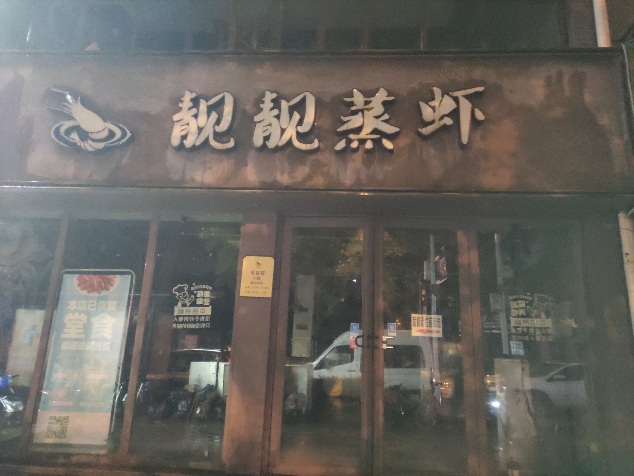 店名:靓靓蒸虾(光谷店) 地址:珞雄路光谷步行街康桥小区东门旁50米 交通:地铁2号线到珞雄路站A口出 营业时间:上午11:30-晚上22:00 靓靓蒸虾光谷店就在肥肥虾庄光谷店旁边,这里的靓靓蒸虾店晚上21:50就停止营业了。推荐菜品有靓靓蒸虾、油焖大虾、全味虾球、招牌凉面、凉拌毛豆等。