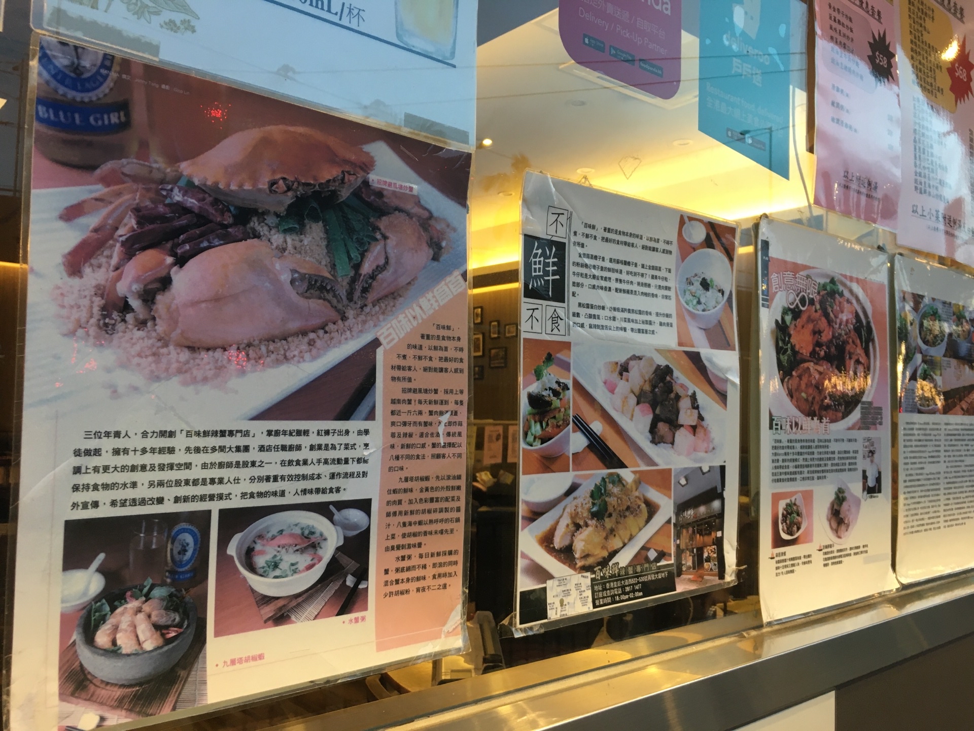 百味鲜在门口,用文字和图片讲述自己的历史:3位年轻人合力创办辣蟹专门店,掌厨由红裤子做起,先后在多家大酒店任厨师,另两位股东都是专业人士,分别着重有效控制成本及对外宣传……如今这里推出外卖晚市优惠套餐,黄金带子炒饭等58元起。