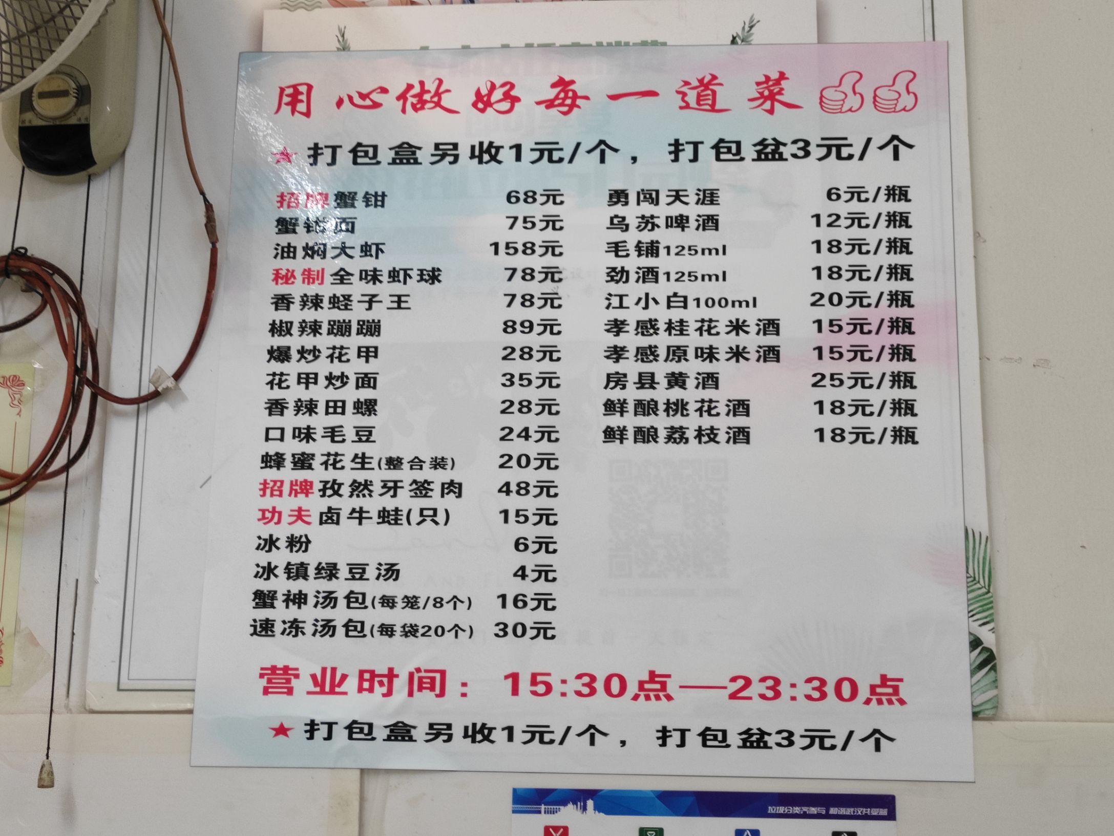 店名:蟹神·咩咩小吃 地址:锦绣二路水务小区30号 交通:地铁4号线到拦江路站B口出步行130米 蟹神下午3点30开始营业,店面装修环境比较简单,家常小菜馆,价格不贵,推荐菜品有招牌蟹钳、招牌牙签肉、功夫卤牛蛙、爆炒花甲等。