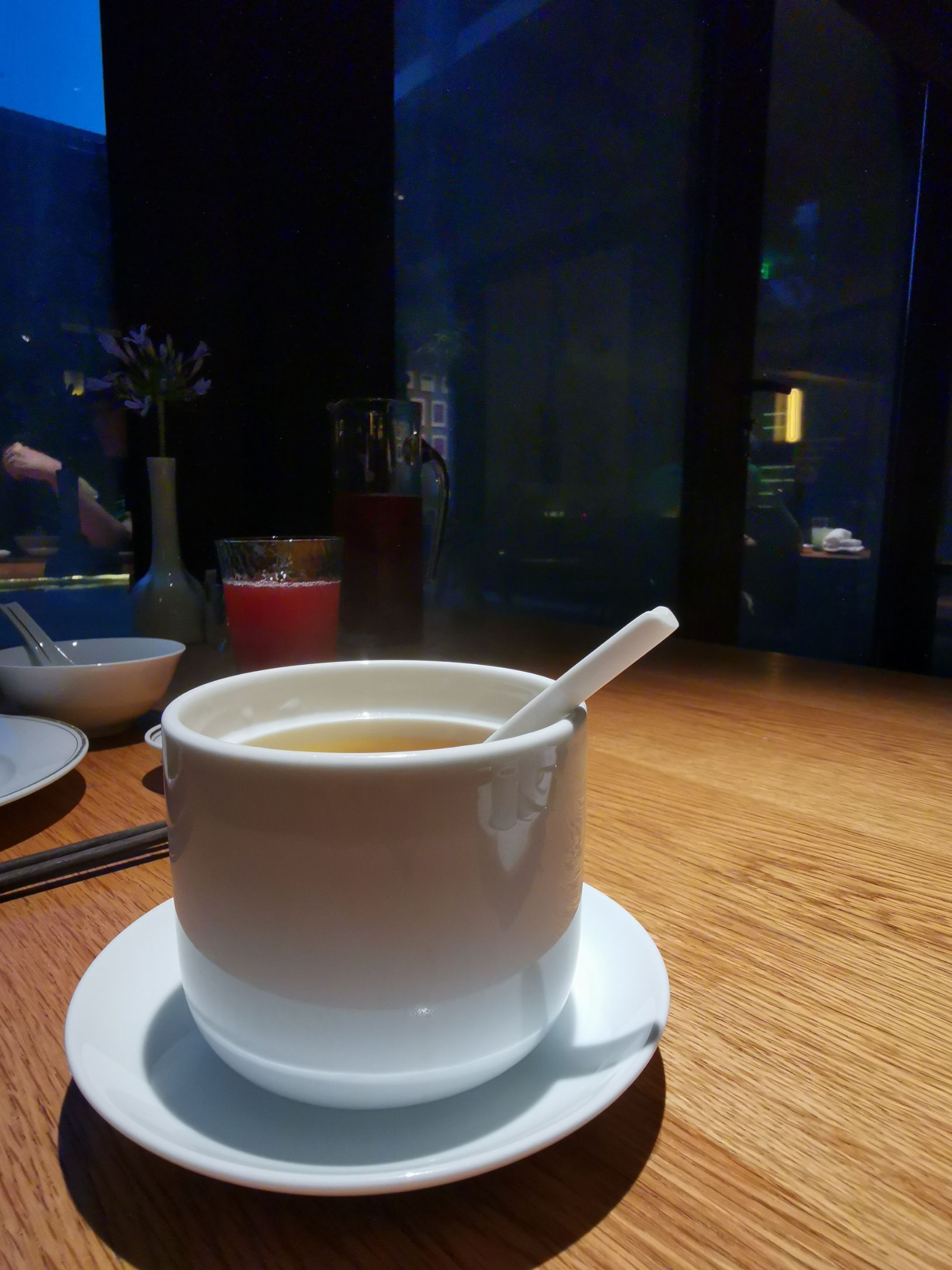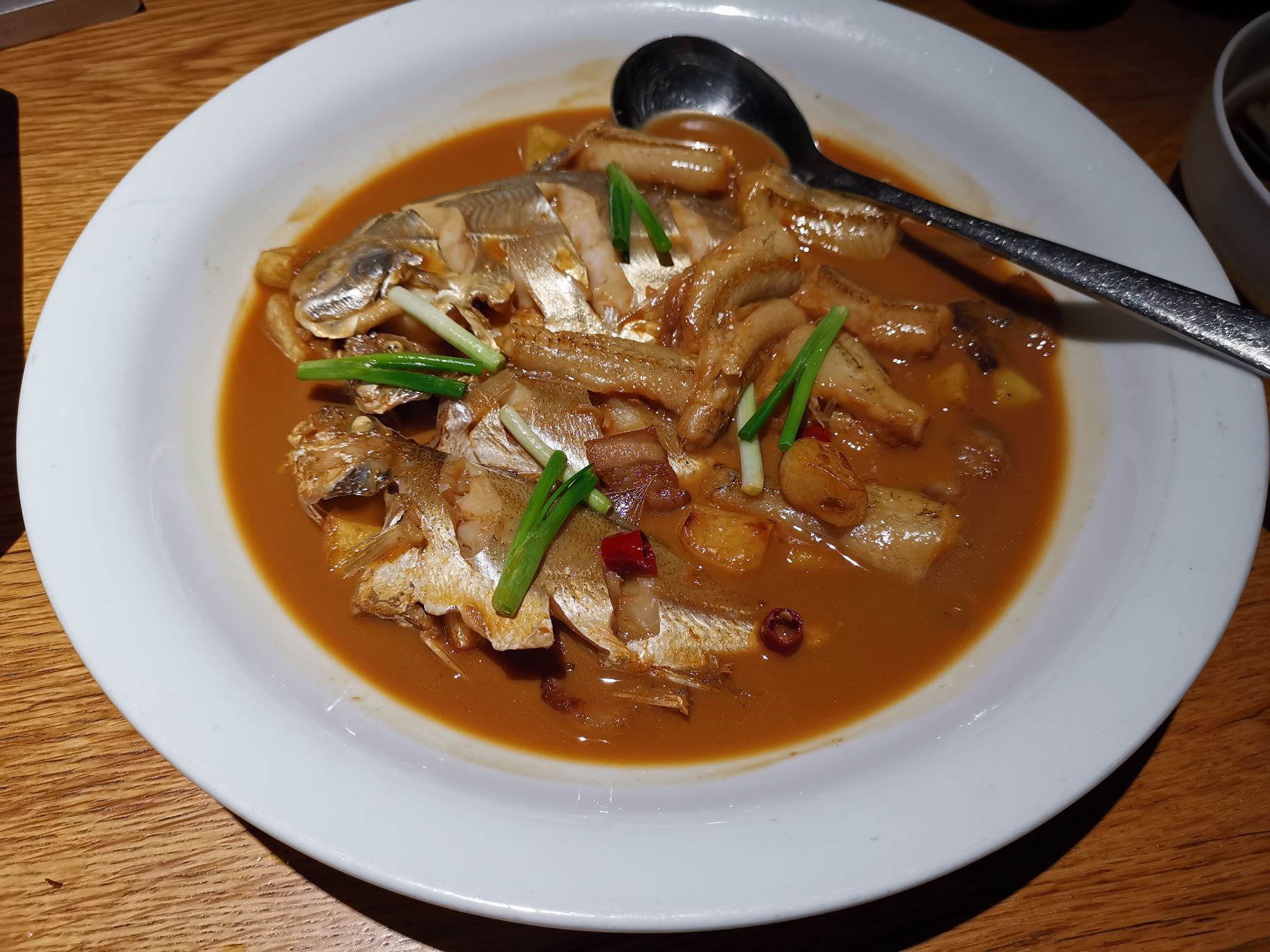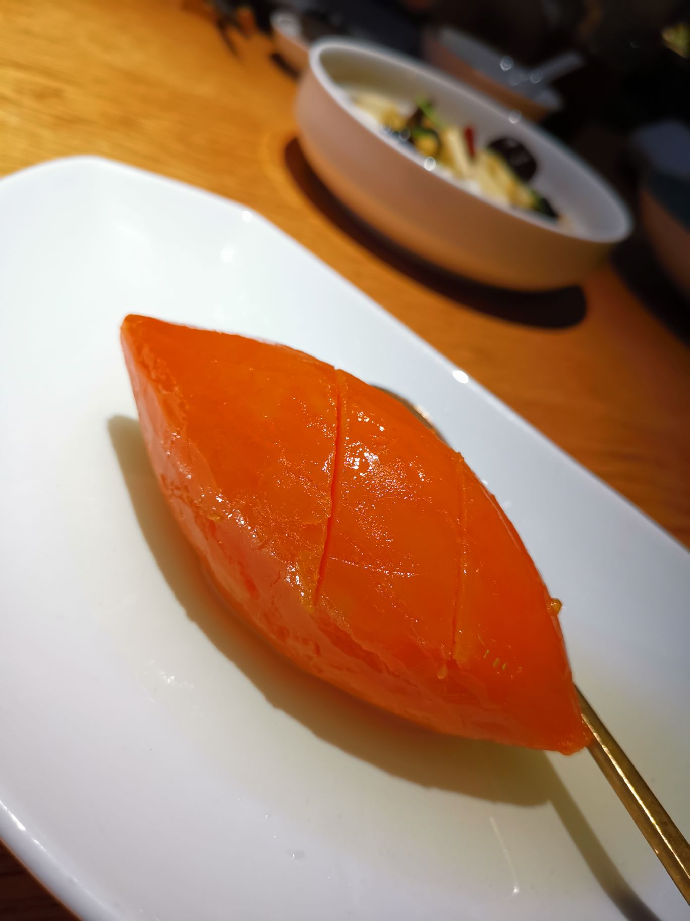 食在这里# 西溪甚好 没来之前些许期待 临了之时又万千留恋 来西溪有两家食肆不可不品 今天的这家新荣记和隔壁的那家木守溪隐 可谓各有千秋 作为魔都的本地宝 对新荣记一点也不陌生 上海有四家之多 估计这家20年前在台州临海起家的海鲜小馆自己都不曾想到 有朝一日 他会成为中国餐饮的代名词站上世界的舞台 西溪的这家新荣记 很隐奢 很日式 穿过一排竹林之后 步入一道竹篱笆门 一个精致日式庭院就呈现在眼前 清潭 流水 氛围就出来了 步入厅堂 整个室内部分的灯光调准的恰到好处 一楼为东西两侧的大堂区 二楼是包厢 回型建筑的中心是个内花园 松柏造型 砂石碎道那些都是必须的 |脆皮乳鸽^招牌之一 其实乳鸽做招牌的食肆很多 就像很多大牌喜欢推烤鸭一样 这里的乳鸽个头不大 估计真是乳的很 做的油光发亮 上菜的一瞬间 香气四溢 一口下去 外脆里嫩 汁水溢出口中 就是这满满的感觉 就是一盘好的乳鸽 |红烧三鲜^新荣记以海鲜起家 做的是地道台州菜 这道红烧三鲜就很考量功力 海鲜易腥要加以佐料调和 但又不能过量 盖住海鲜本身的鲜味 尤其这个家常小炒 食材必须新鲜 保鲜的同时要保证口感 才算是一道好菜 食得一口下 留得一嘴鲜 这家新荣记 OK的 |煎焗海鲜鸡^很有饱腹感的一道菜 需趁热 肌肉嫩滑 之于加了什么海鲜佐料或其他 我没尝出来 大家来品品 反正口感还是不错的 |餐后水果^好像叫黄金果 黄皮果 具体不记得了 有点像葡萄 但略有不同 据说喜欢的人很喜欢 之前没见过 没尝过的建议品尝一下 TIPS 1 餐厅另有茶饮区 修葺区 可供食客休息 2 大堂不收取服务费 包房部分需另外收取服务费 3 大部分时间没有余位 建议提前预约
