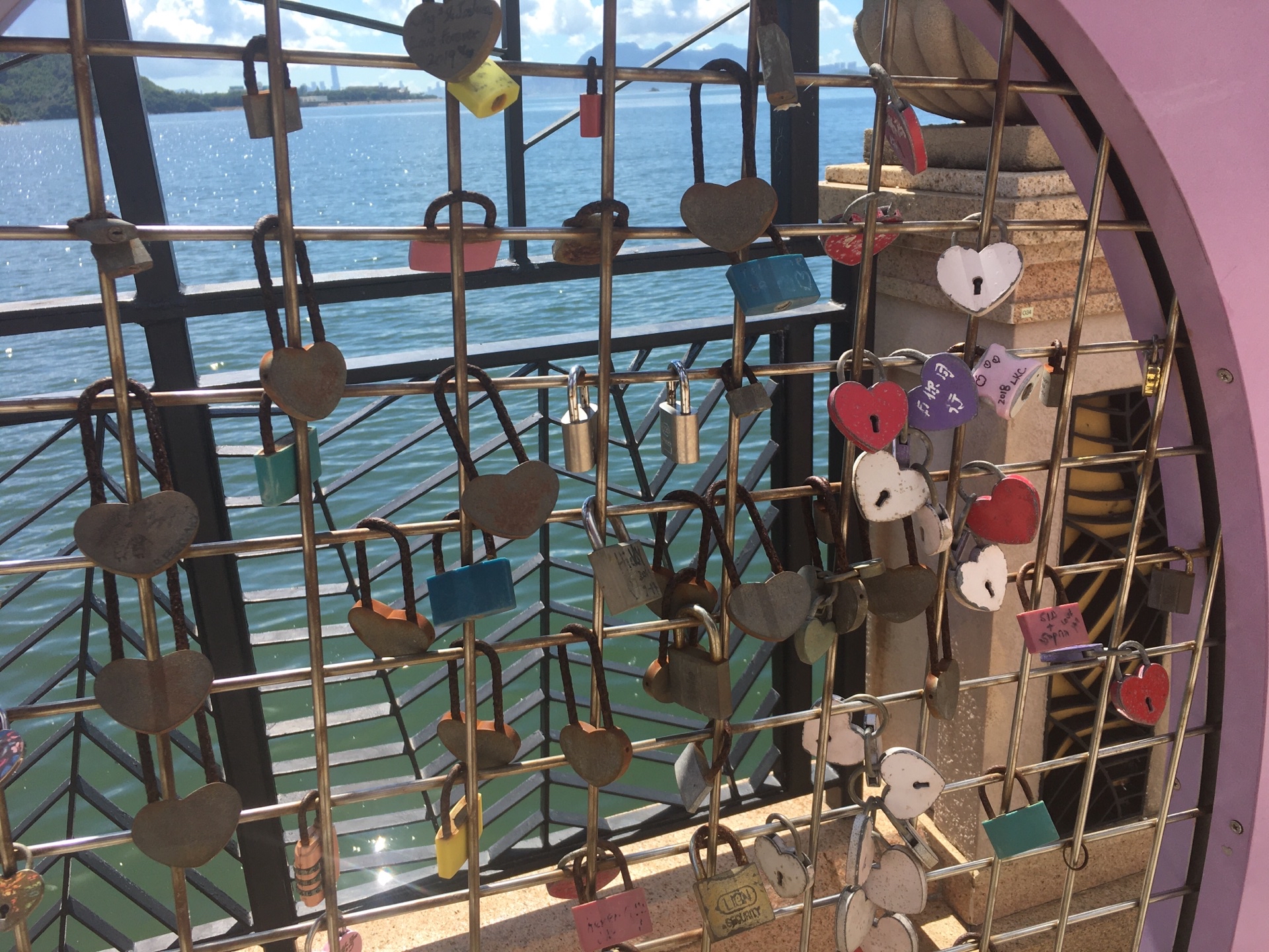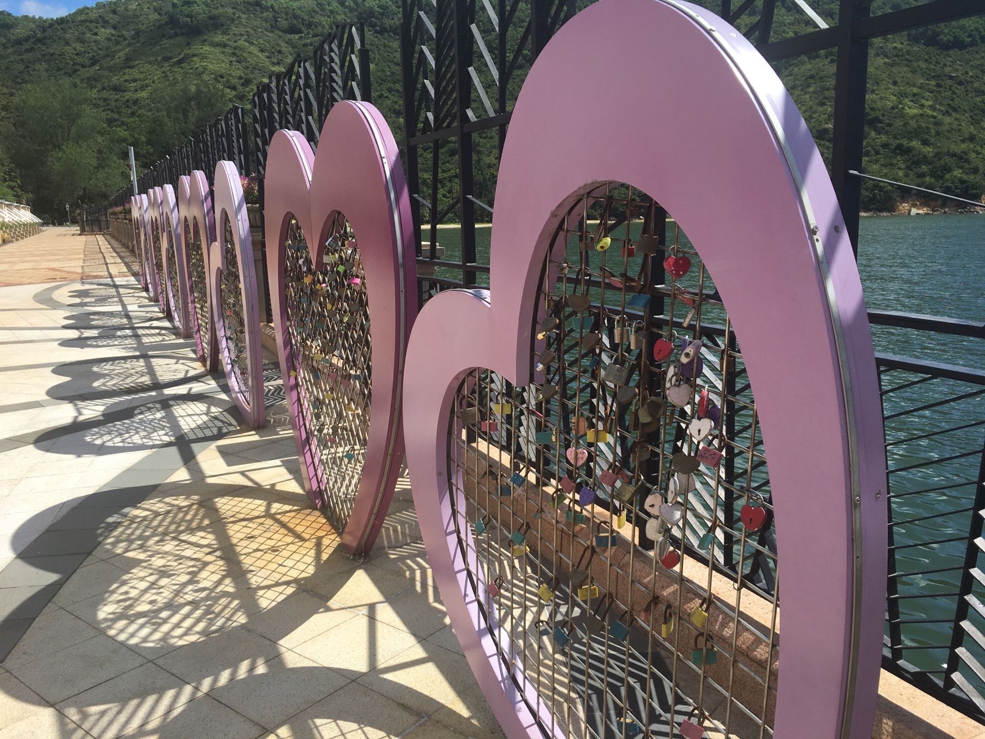 网友2020-07-23愉景湾酒店出门右手边为愉景北广场,其中最靠海的一长条就是愉景湾心锁长廊愉景湾酒店出门右手边为愉景北广场,其中最靠海的一长条就是愉景湾心锁长廊。一个个心型内部,留着有情人的心锁。沿着心锁长廊走到头,就到了大白湾沙滩,浪漫情怀也可以在那里展现,