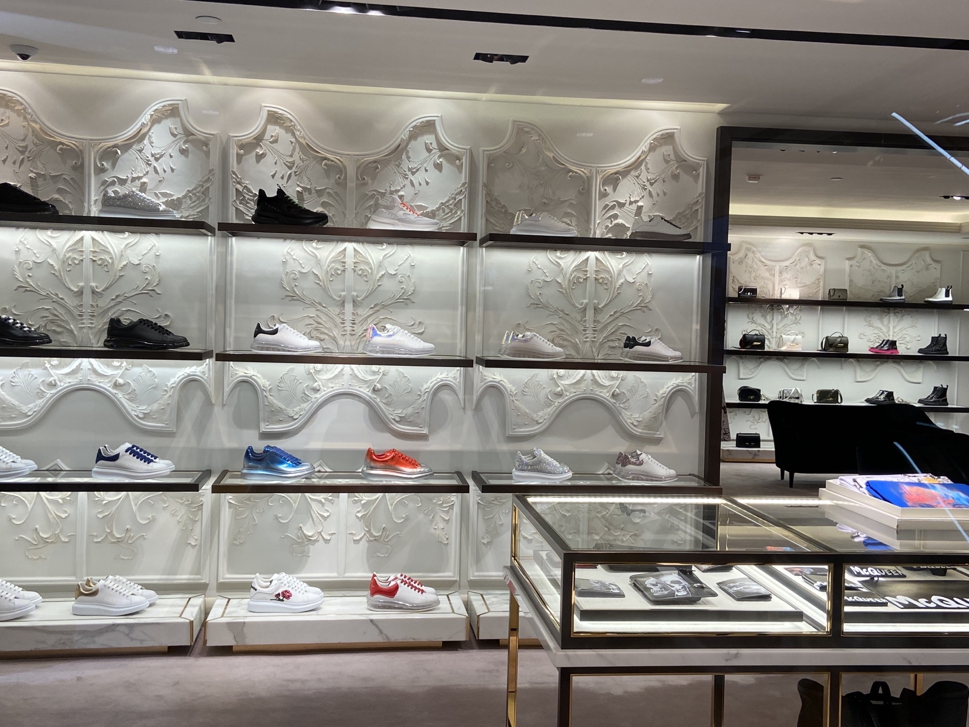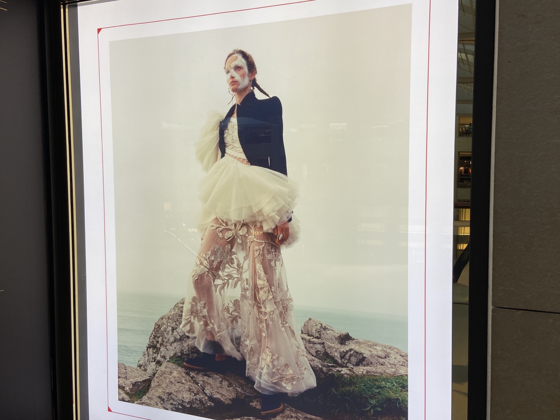 都说亚历山大麦昆是时尚圈不折不扣的鬼才,看他置地广场专卖店的广告宣传画,就能够感受得到他的风格了。广告中的麻豆穿着一条很鲜很飘的纱裙,而脸上却抹着印第安人式的泥土妆容。虽然风格上有一些另类,但是仔细看看他的设计还是必须得承认是非常精致的,轻柔的细纱、复杂的蕾丝、多彩的印花布、绅士的燕尾,都是常见的元素。