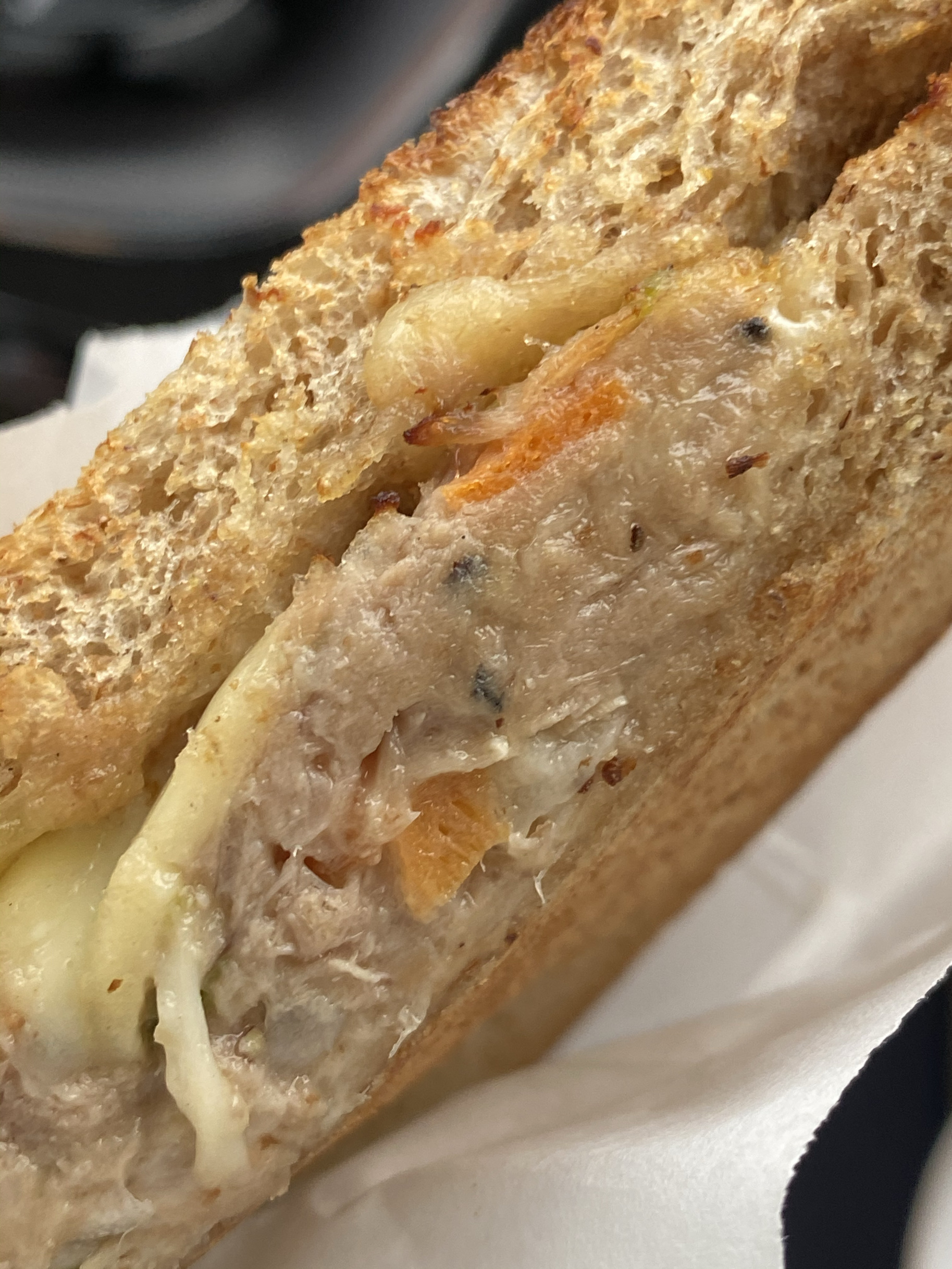 没有热到位,冷冰冰的疫情期间现在只能打包带走。金枪鱼三明治加热到位很好吃披萨。做成这样的味道,无语了