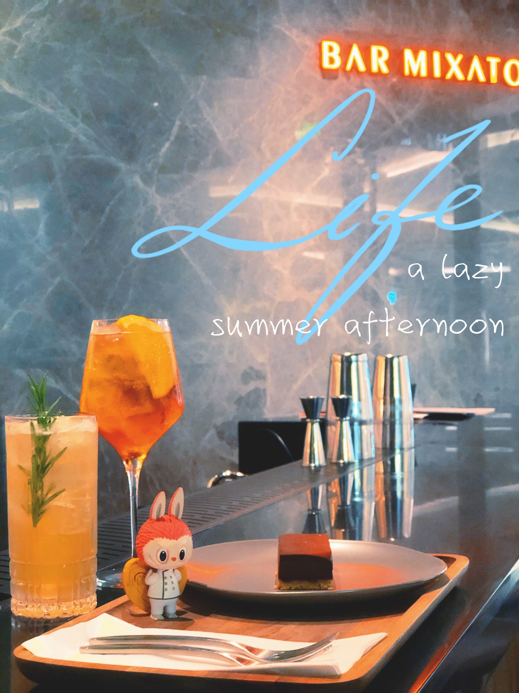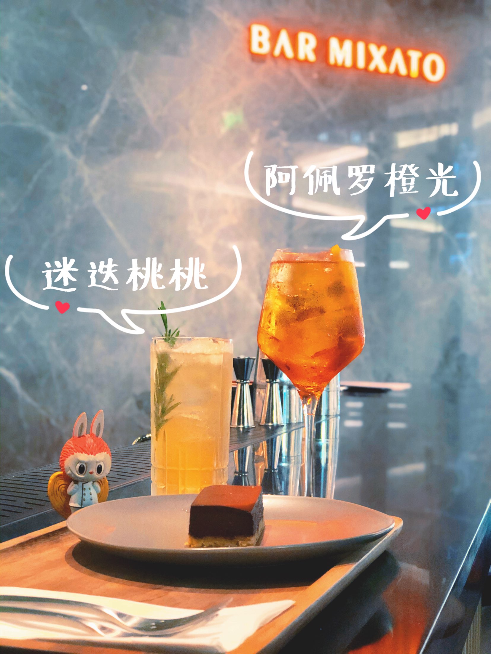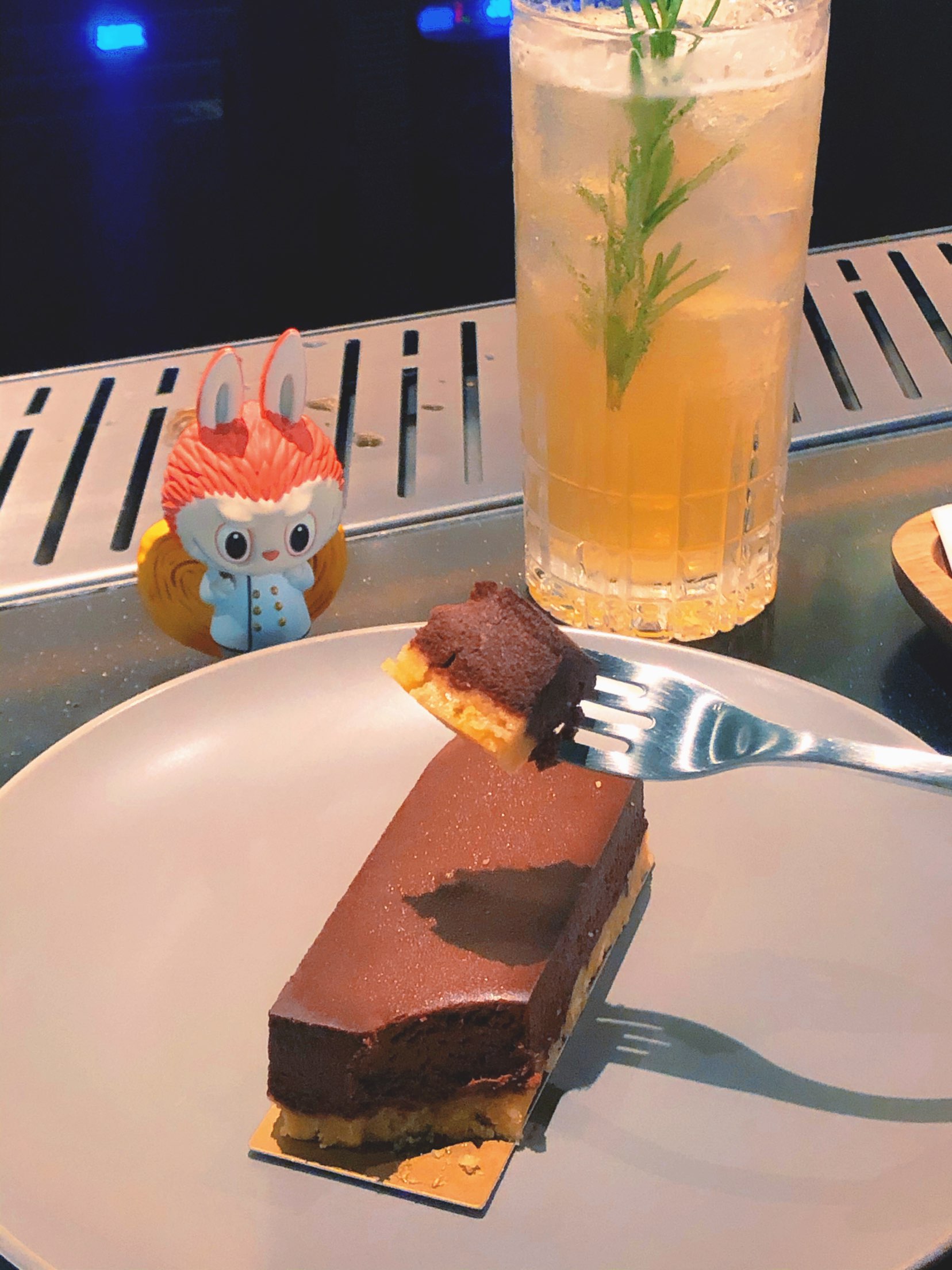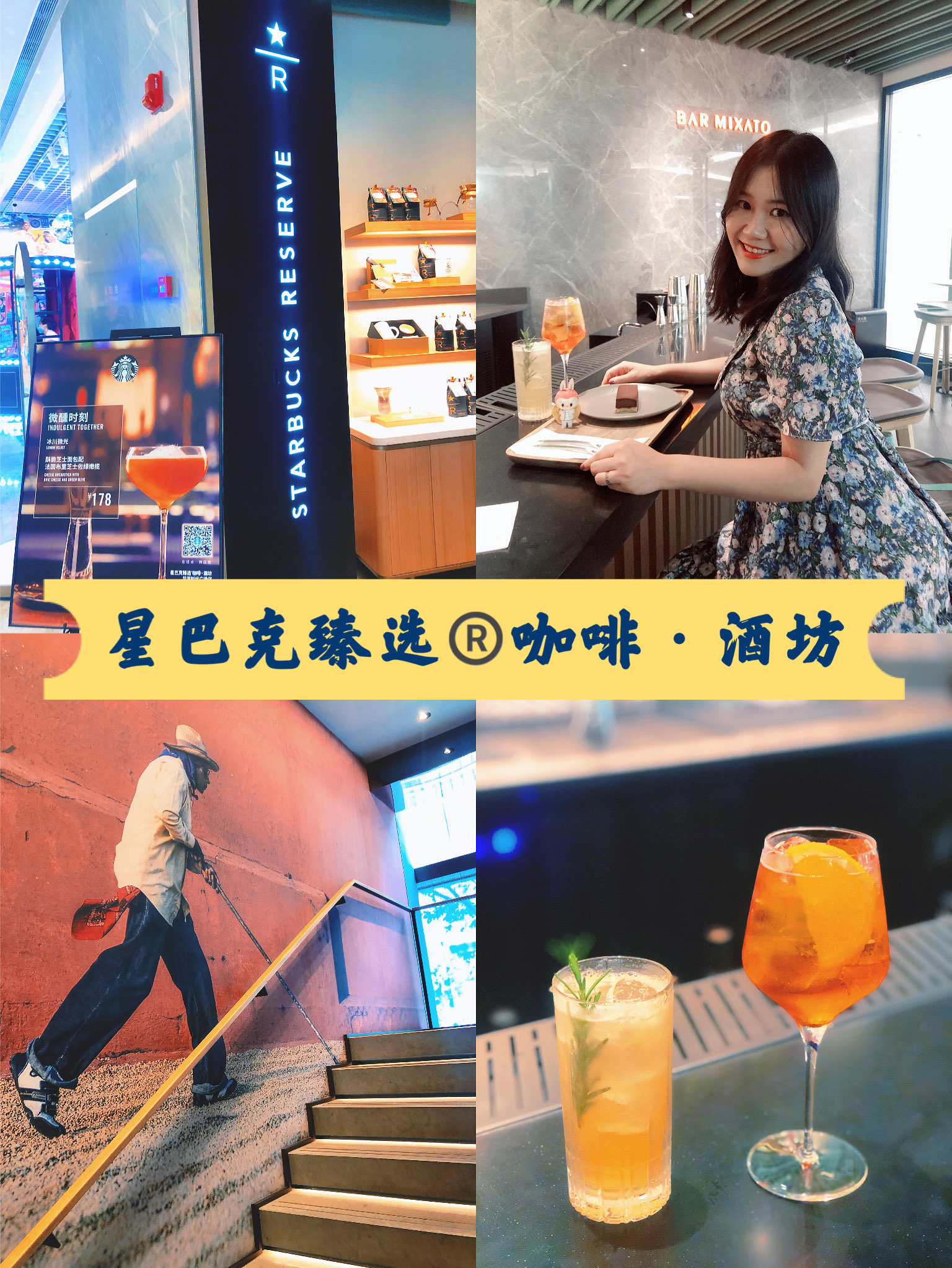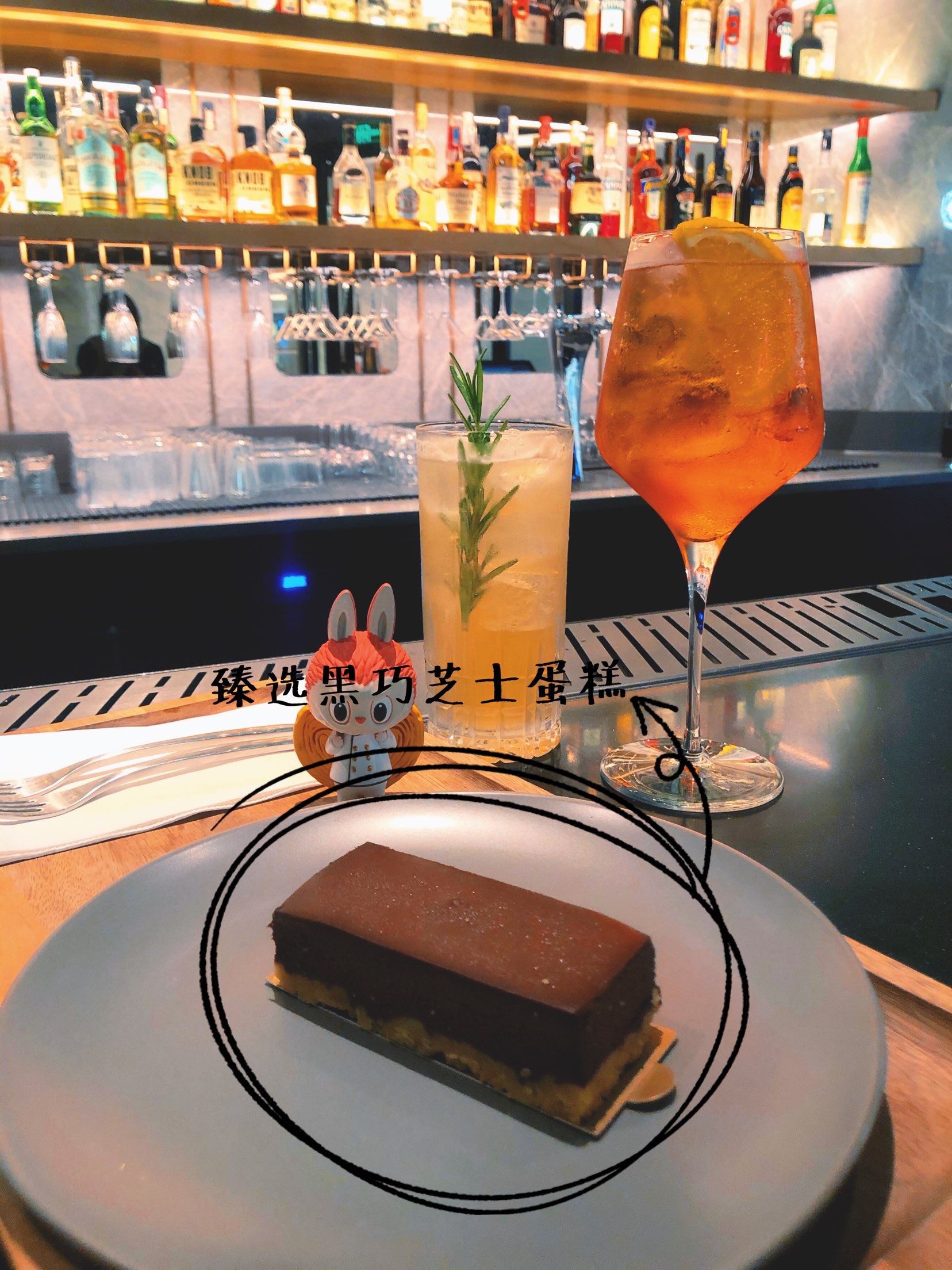 🍰「臻选黑巧芝士蛋糕」这款蛋糕据说是星巴克酒坊特供的,别家星巴克吃不到的美味哦!价格不贵,黑巧和芝士完美结合,味道超级浓郁,很扎实的一块,两个人吃刚刚好。 🍹「迷迭桃桃」店员推荐这款给我,很适合女士喝。波本酒mix白色味美思mix桃桃禅心花草茶mix鲜榨柠檬汁,最后用迷迭香做装饰,品不来酒,喝的是感觉,一杯下肚,微醉。