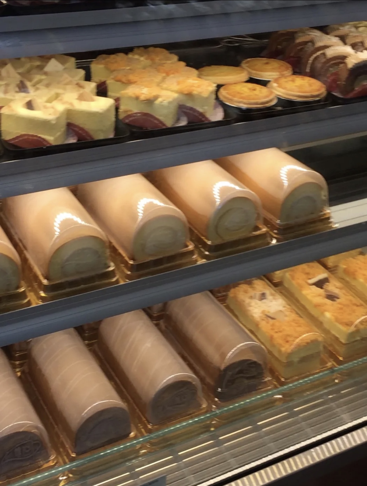 这家美心西饼位于恒宝广场的外围,旁边就是广场的一个入口,这家店的门面挺大的,方方正正的很容易就可以看见了,里面其实就不是很大,一进门口正对着就是冰柜,用来放生日蛋糕的冰柜,那个时候,架子上面都放满了面包,很多,品种也多,供客人选购,感觉美心的东西挺好吃的,尽管价格会稍微贵一点点,但是品质应该是有保证的。