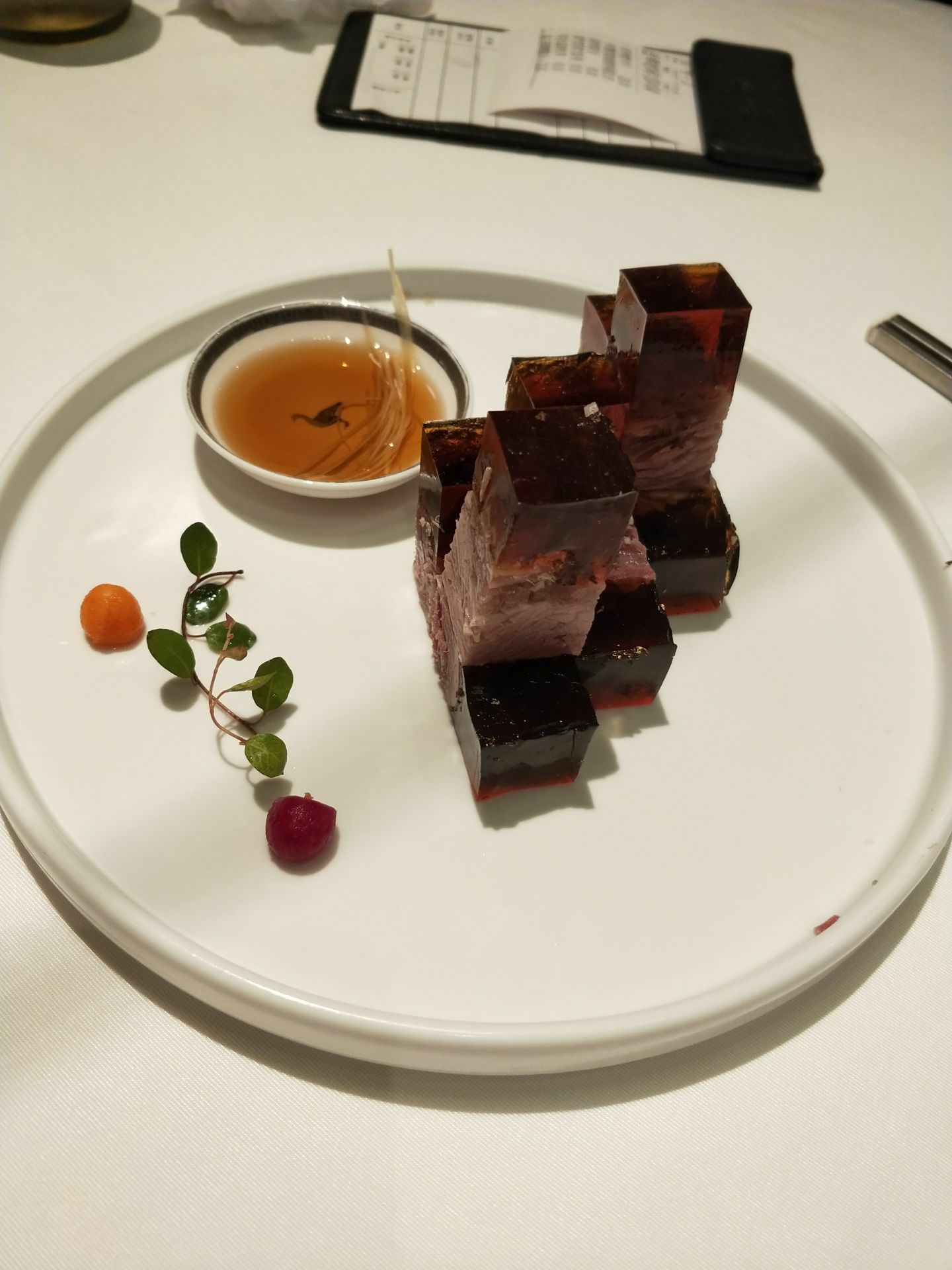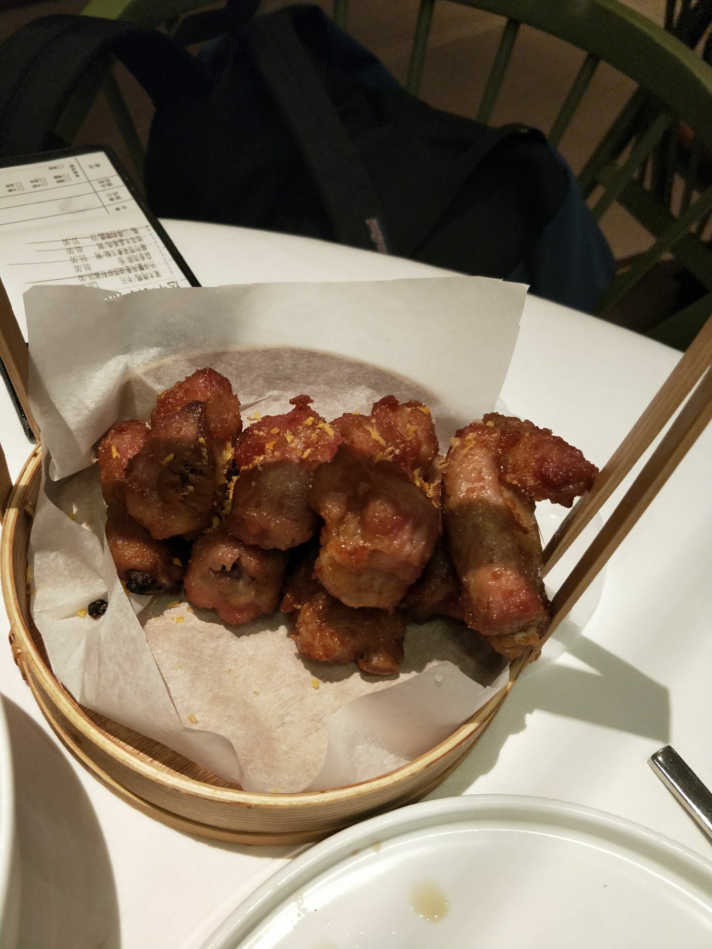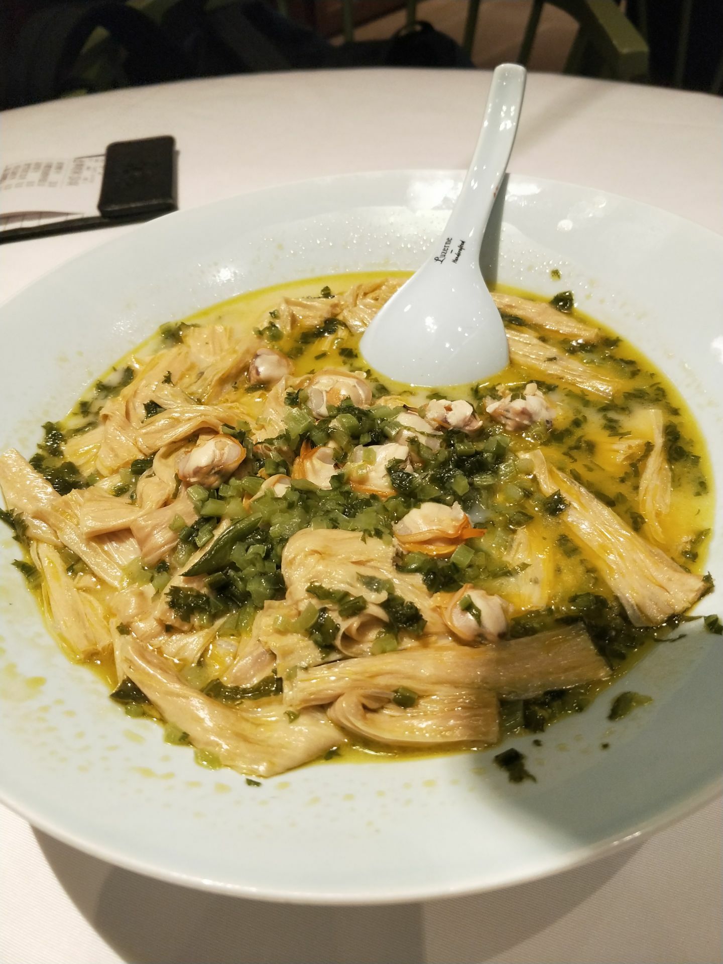有个一年半载没吃过烤鸭了,据说这家店的烤鸭不错。 点了半只烤鸭,除此之外还有蒜香骨、桂花淆肉和腐竹蛤蜊等。 烤鸭皮确实很脆,酱料也调得不错,唯一的缺点就是面皮是冷的而且太黏了。 蒜香骨的蒜香味很浓,味也调得不错,但是用的不是肋排这个部位,筋筋拉拉的比较多。 桂花淆肉口味比较清爽,最好还能咸一点。 腐竹蛤蜊味道很鲜,个人觉得里面的汤汁适合下面吃。