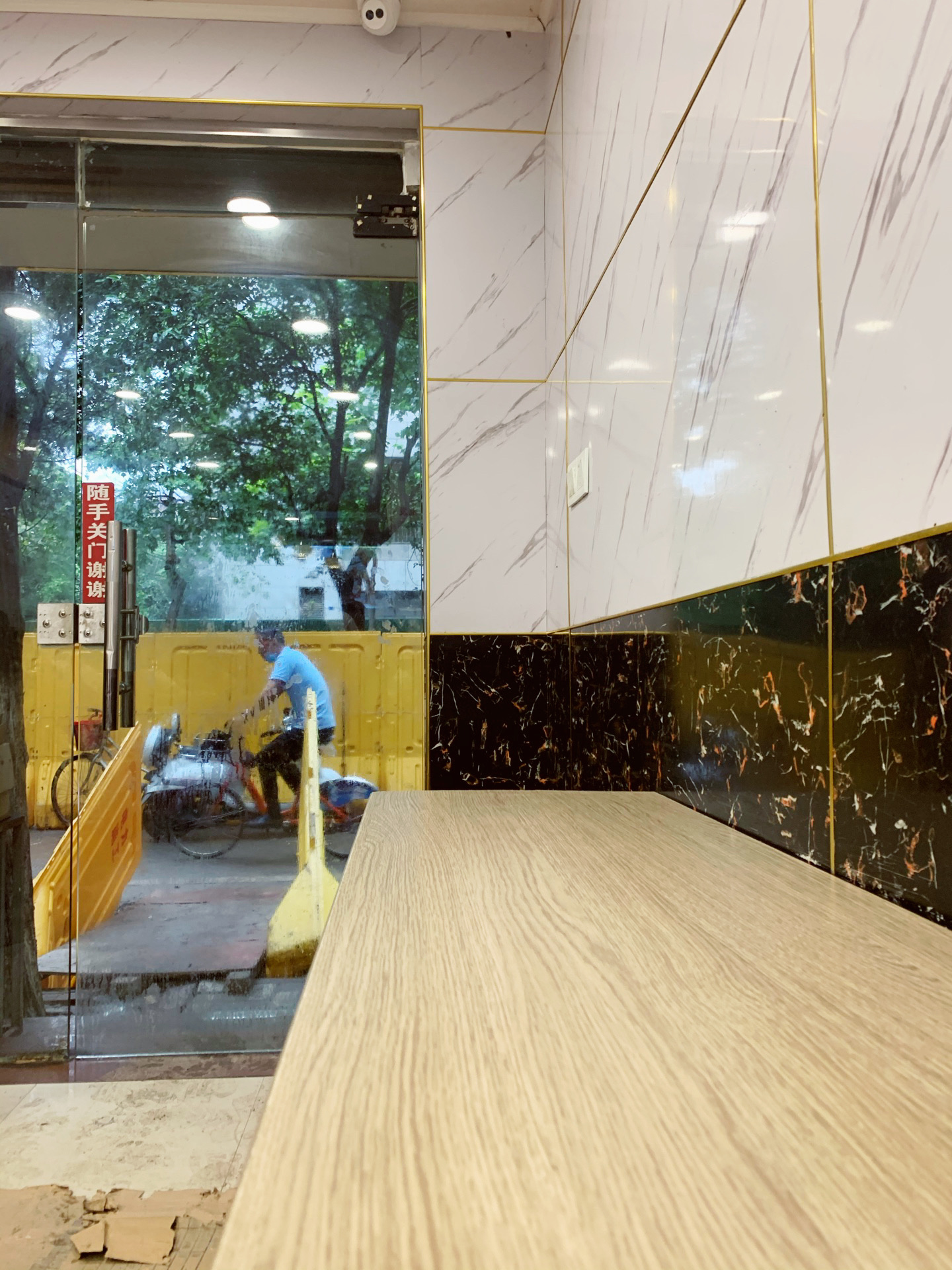 宝鸡张记凉皮可以说是南京玄武区四牌楼的一家“苍蝇小馆”。这家小馆是相当受欢迎的,这次过来时,想着学校(附近有南师附小、东南大学)放假了,门口在修路(进店要从踏板上过去),顾客应该不多,没想到到的小店里,依然是排着蛮长的队,好在店员操作得很快,一碗碗凉皮拌着飞快,很快就到我们了,还是按照惯常的那样,点了特色凉皮+鱼香鸡蛋的组合,口感依然蛮好的。