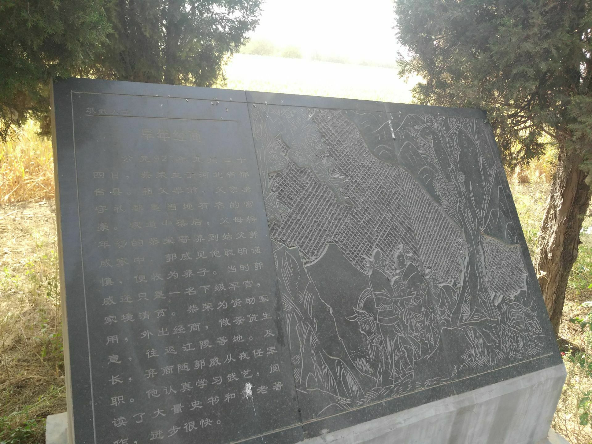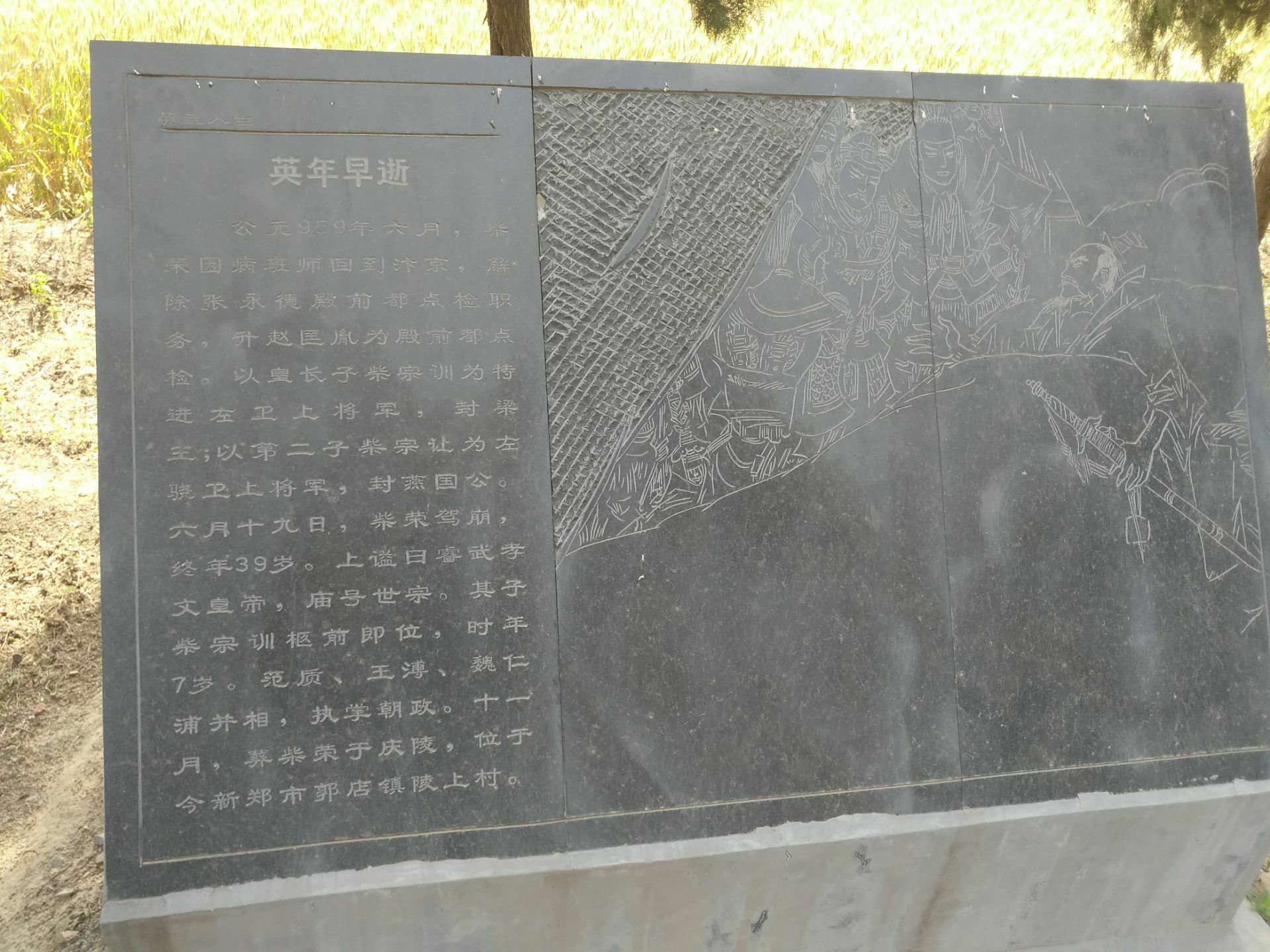 后周皇陵,从名字上感觉会是一处非常雄伟壮观的陵墓,但是当大家真正来到这里的时候,会发现我们穿越了很多田地,走过了很多的泥路,才能够到达这一小片的地方。但是就这一小片的地方,却通过了石刻图文的形式,为我们介绍了这位皇帝的光荣一生