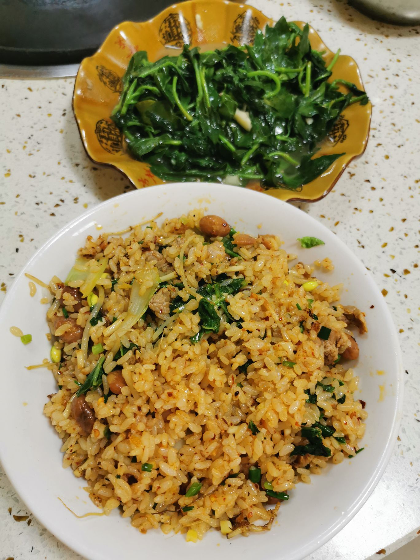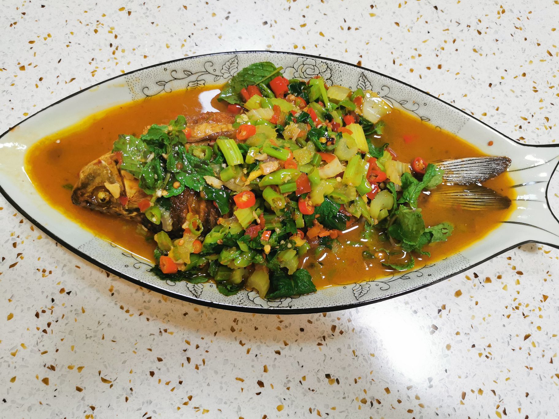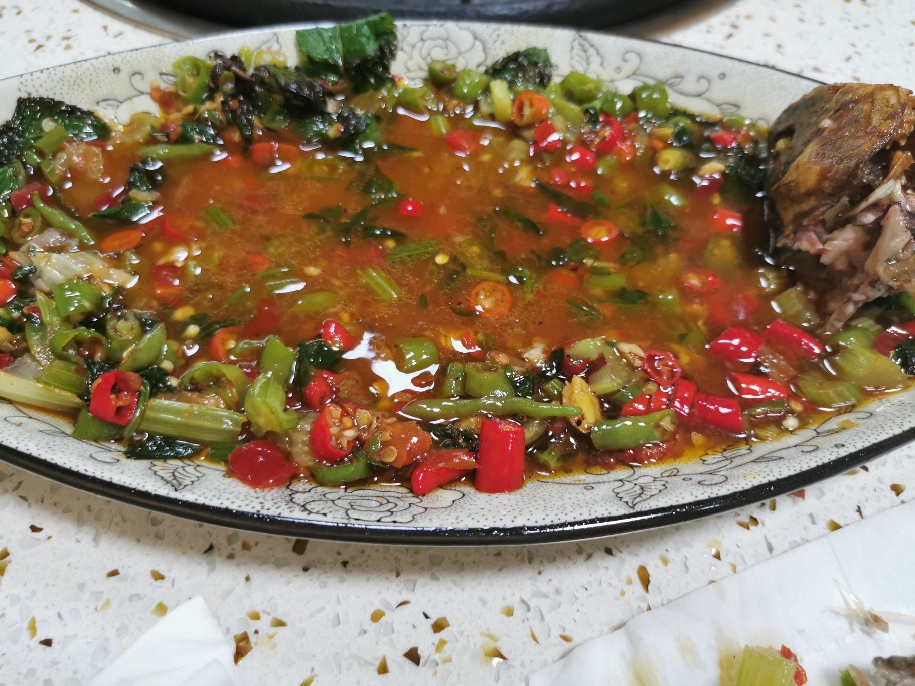 广东顺德美食之都出来觅食的我,黄果树瀑布留下的美食遗憾,居然在这里满足了。昨天误打误撞进店,虽然有几桌客人在,老板并没有因为我一个人而不待见,在不知道吃什么的情况下老板主动说我一个人吃土烙锅不划算,给我介绍一个怪噜饭,心想出来旅行吃炒饭…加了个炒野菜。结果老板端出来试了一下好好吃,马上跟隔壁桌的推荐,里面的豆子特别好吃,好大一碗被我一个女生全部吃完。想想炒饭都炒得这么好吃,其它的肯定不会差,跟老板打听了野生活鱼的做法。这不,今天来试红烧野生活鱼。虽然是红烧的,却保留了鱼本身的鲜嫩。好不好吃,不多说,直接看图。还有一点要说的是,出门在外吃东西最担心材料的新鲜和用的油,隔壁桌想点馒头,老板很老实的说今天的不太新鲜了就不给你们了。至于油,一看金灿灿的底汤,淡淡的菜籽味道,就知道肯定是云贵川常用的菜籽油啦。
