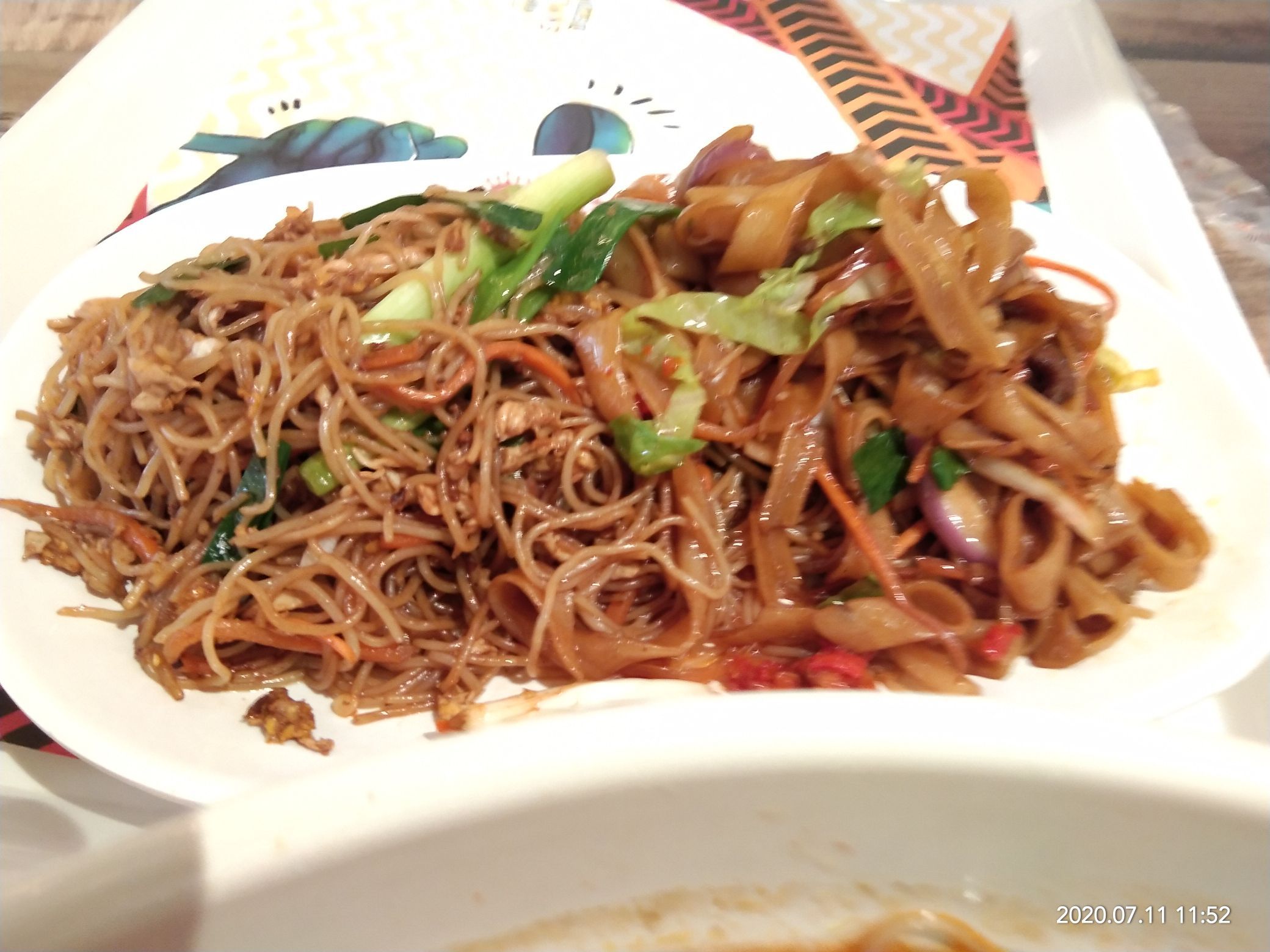 万象城楼上的美食城 第二次来 这次发现了好吃的呢 休息日中午 就餐的人儿很多 先点餐再找位置 直接二维码可以付款 真方便 不像以前还要充值退卡的怪麻烦 有家广式口味的店铺毕竟吸引我 干炒牛河 拌米粉 都很想吃 可以双拼 都吃吃 拌点辣酱 更有味道