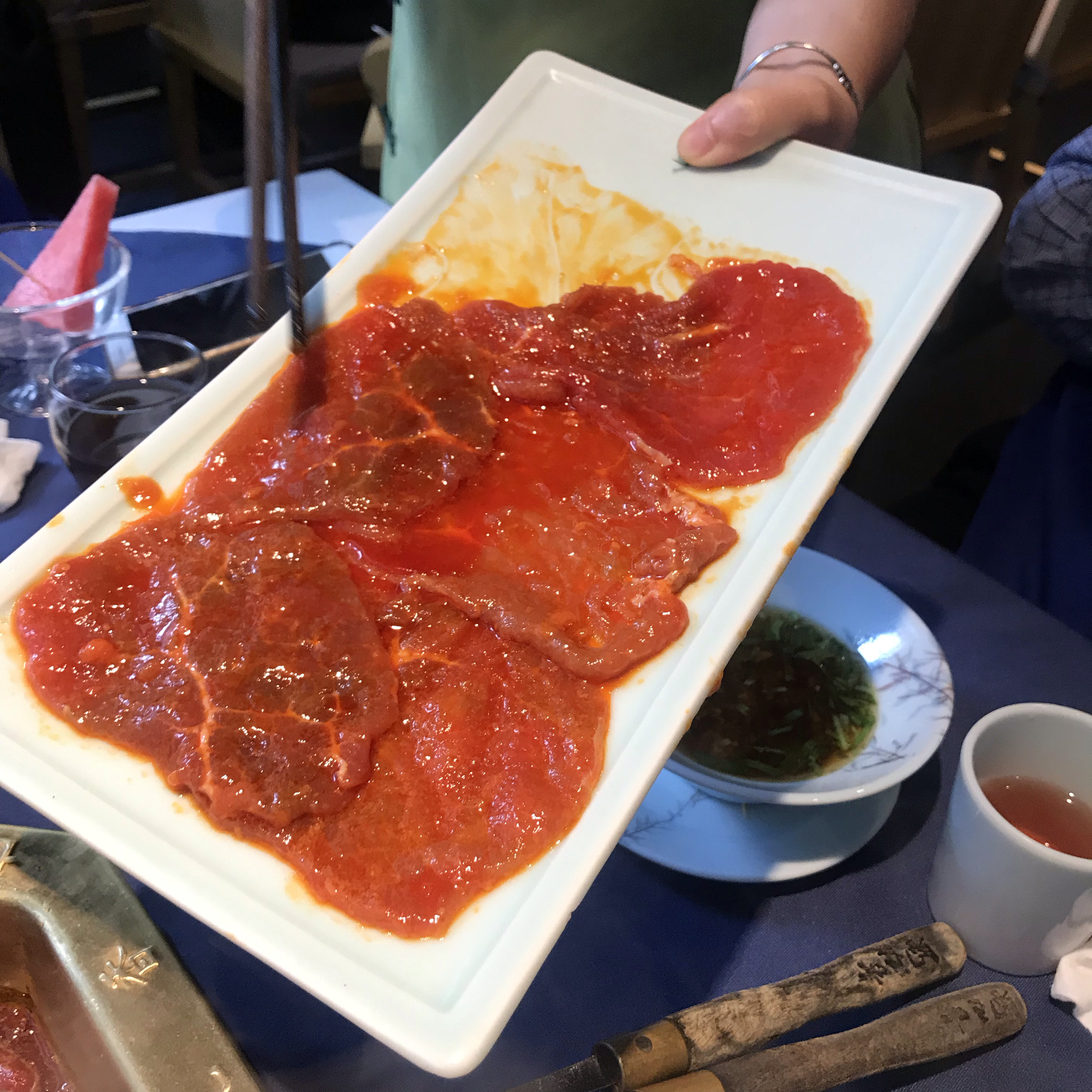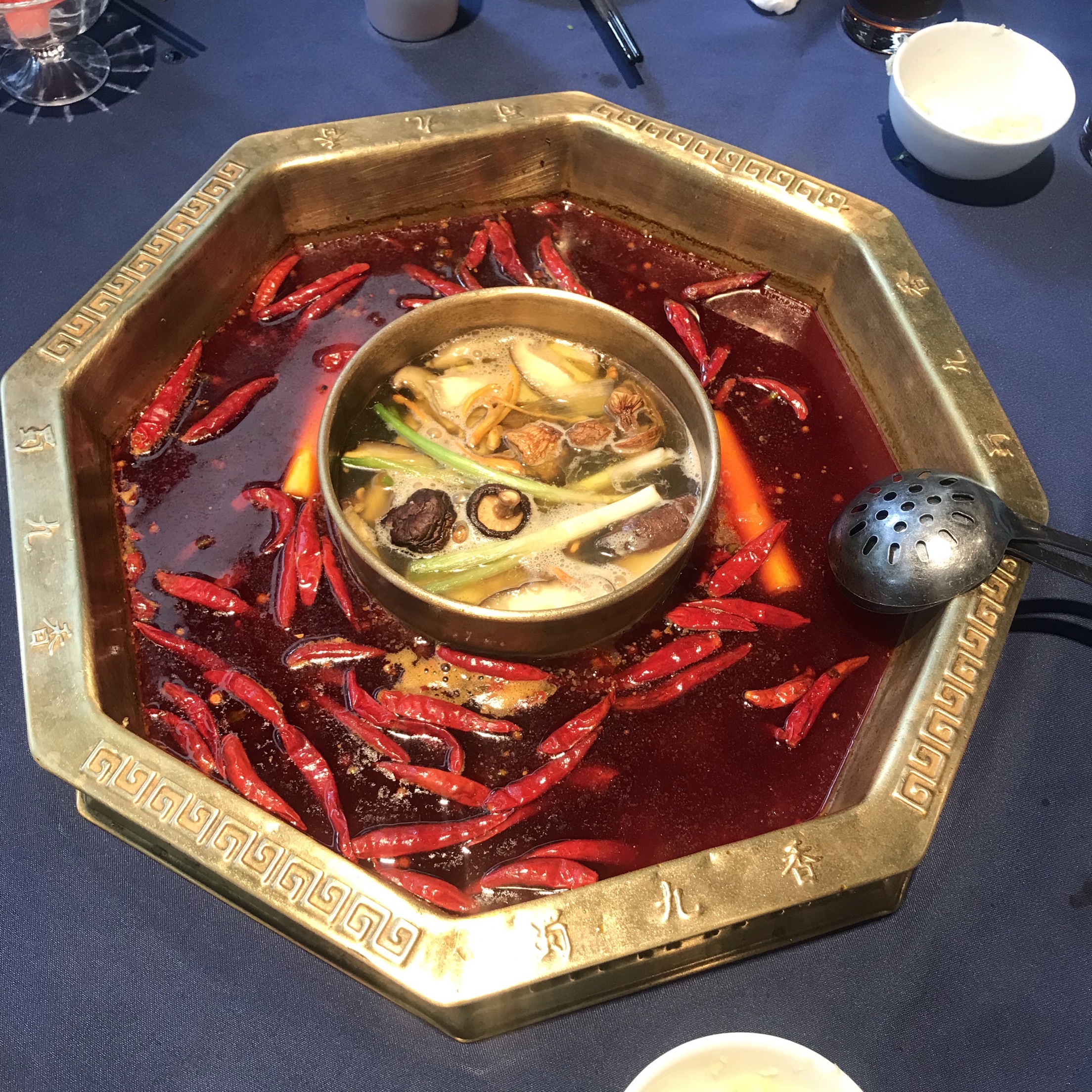 去年出差的时候来的,住在隔壁的假日酒店,搜了搜附近就定的这里。蜀九香算是成都老牌火锅店,只开在成都,不像其他几家网红基本都开到了上海。 我们人比较多,基本上菜单轮了一圈,印象比较深的一个是「拉哥牛排」他们家的老板叫拉哥,牛排的确很嫩,上来的时候已经是熟的了,再在锅里烫一烫。「荷花乌鱼片」鱼片切的很漂亮,每片很薄,烫的时间也可以短一些。 成都火锅必点的「冰爆鹅肠」「大刀毛肚」材料新鲜,入口爽脆。 点的菜基本没有一个遇到雷点,都好吃的很。中午的时候人不多,我们在大厅里吃的也没几桌人。 好想再去成都吃当地火锅🍲。