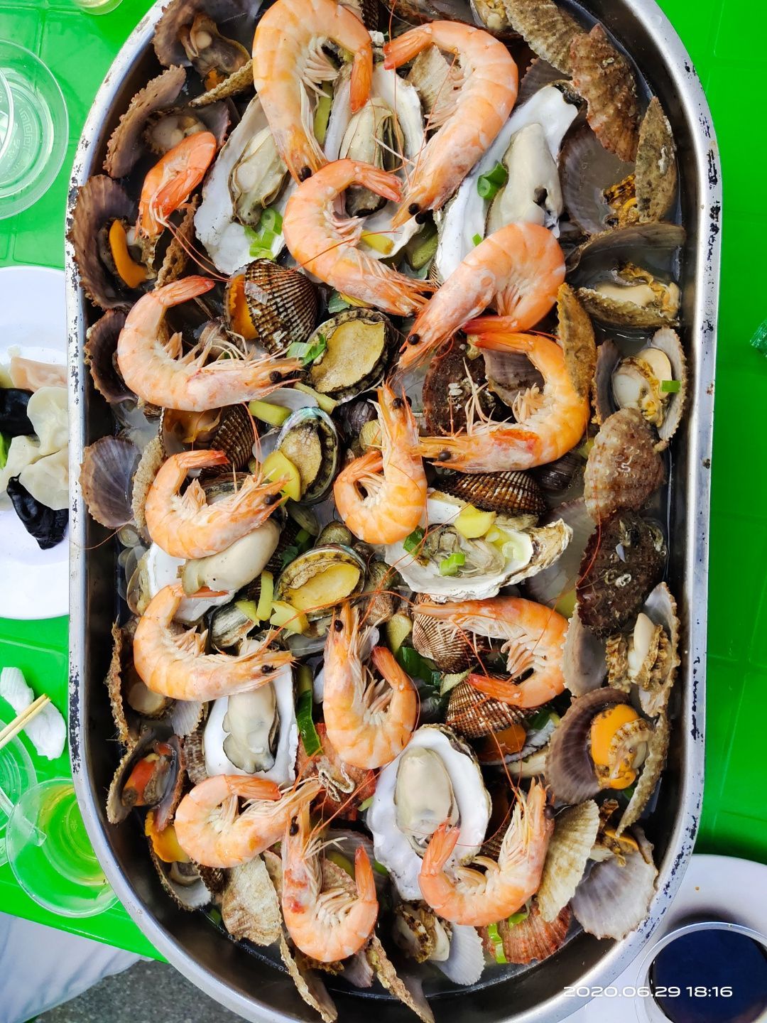 青岛今年也不知道怎么了,动不动就下雨,就下雨,赶上南方天气了 雨后去吃个饭饭,户外一桌,海风一吹,甚是凉爽,而且城市都干净了。 海鲜走一波,真心新鲜,味道鲜美,虾肉质厚,弹。鲅鱼给压在下面,话说不是摆门面的吗?原汁原味的海鲜,我喜欢,最是考验食材新鲜程度。