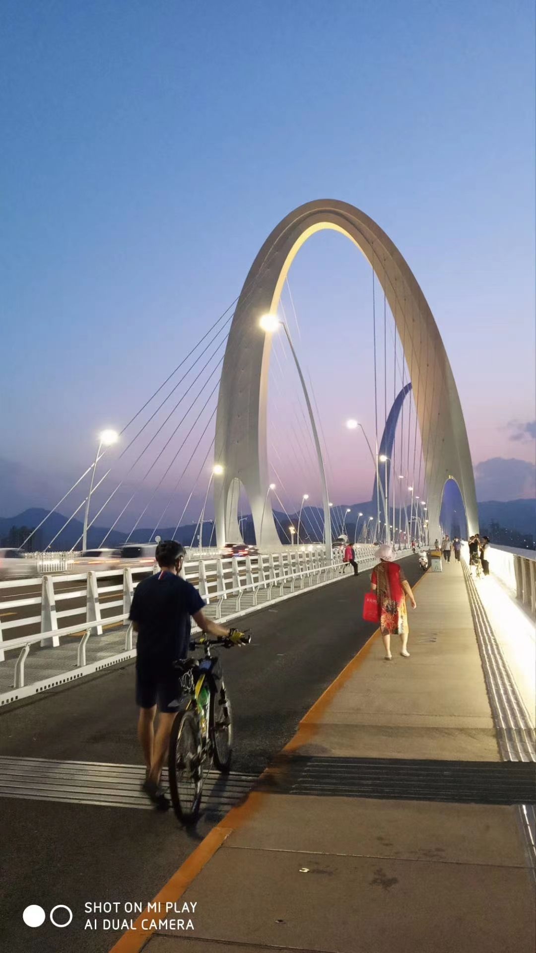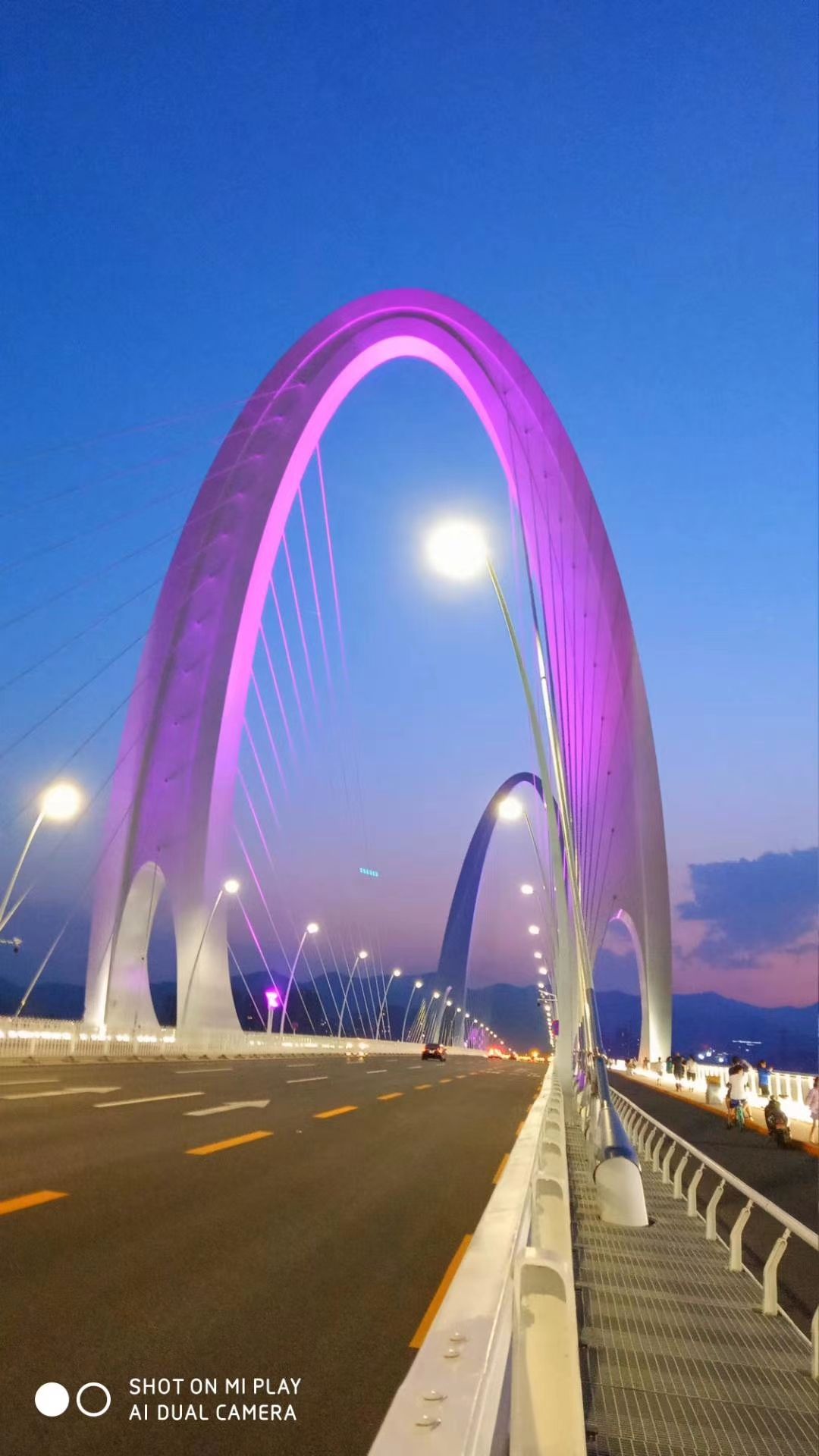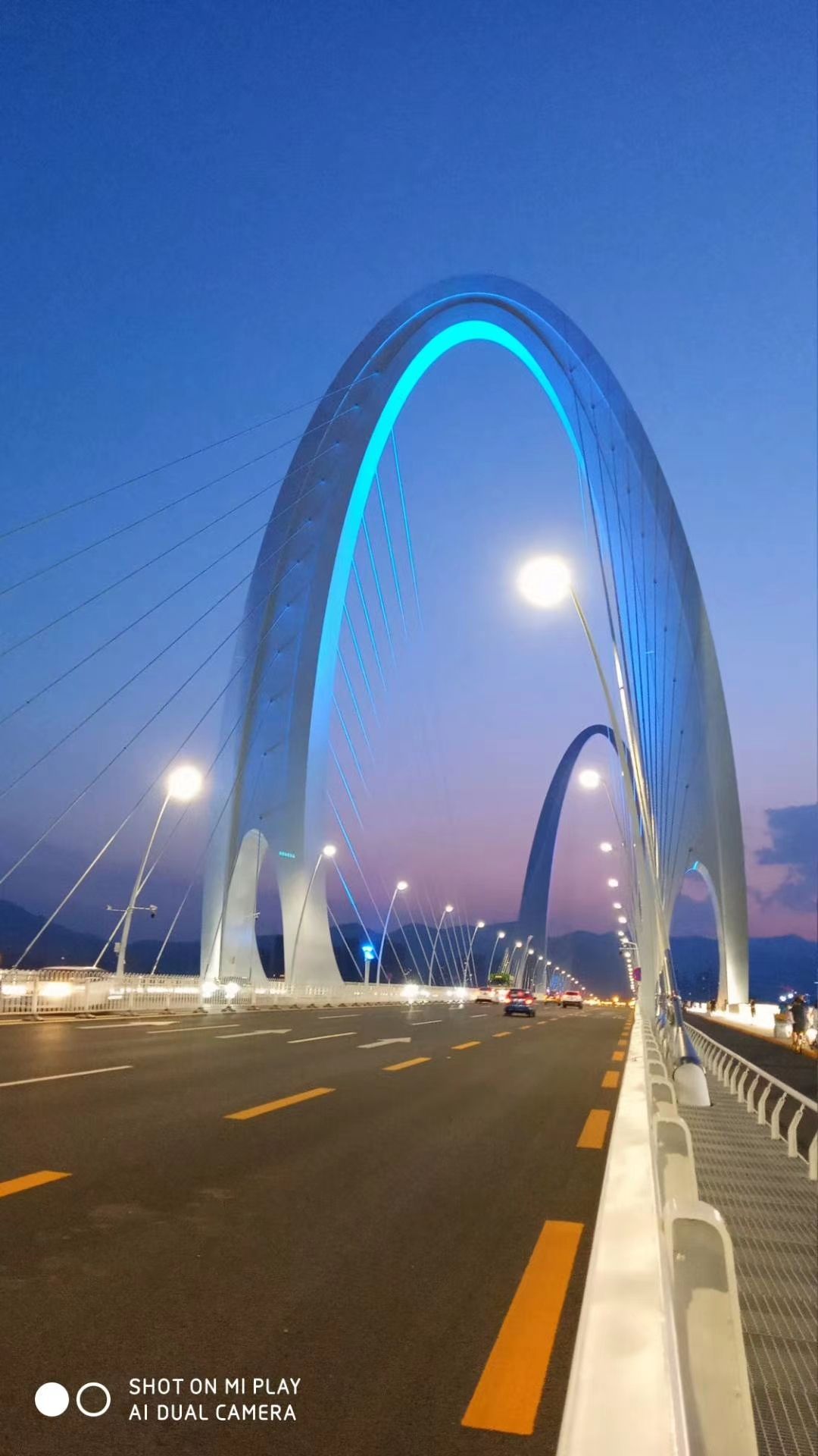 网友2020-08-06夜幕下的新首钢大桥:去年十一听说新首钢大桥建成,并有灯光秀,刚到一会儿大桥的彩灯就亮了,云也不...夜幕下的新首钢大桥:去年十一听说新首钢大桥建成,并有灯光秀,刚到一会儿大桥的彩灯就亮了,云也不错,找好角度拍首钢的大烟筒。